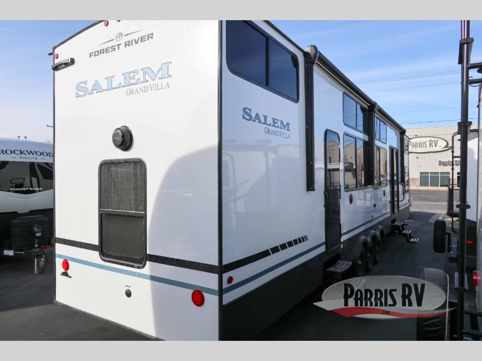 With any Salem Grand Villa destination trailer by Forest River, you can call home wherever you park it! There is a heated and enclosed Accessibelly for added protection, LED "Blade Lighting" under the awning, Lippert On-The-Go ladder prep, plus many more exterior conveniences. Elegant curtain rods and curtains will have you feeling right at home, along with stainless steel kitchen appliances, stylish roller shades, and enhanced floating shelves for added storage. Each model includes heavy duty cabinet hinges for safety and durability, a 60k on-demand tankless water heater for endless hot showers, a JBL 3-Zone media center, plus available options to further customize your trailer.