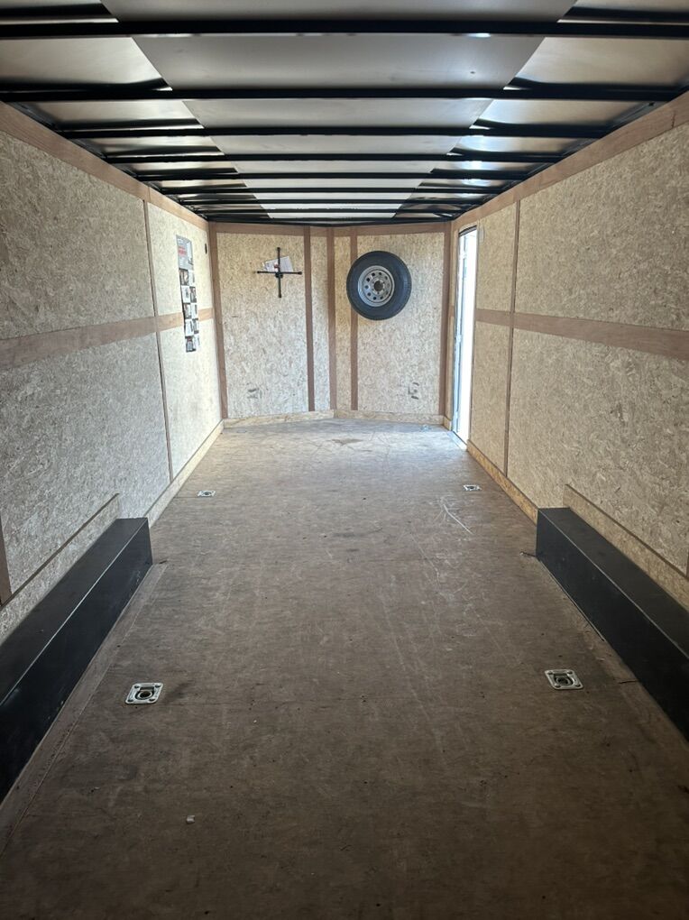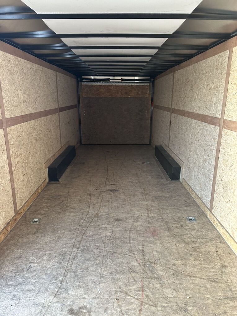 Selling our used rental 8.5x24 enclosed trailer. Good condition, ready for use. -(2) 5,000lb. Axles -(8) Floor Mounted D-Ring Tie Downs -2’ dove tail -Spare Tire And Tool Included -Interior LED Lighting We take trades and buy used trailers. Financing available on approved credit