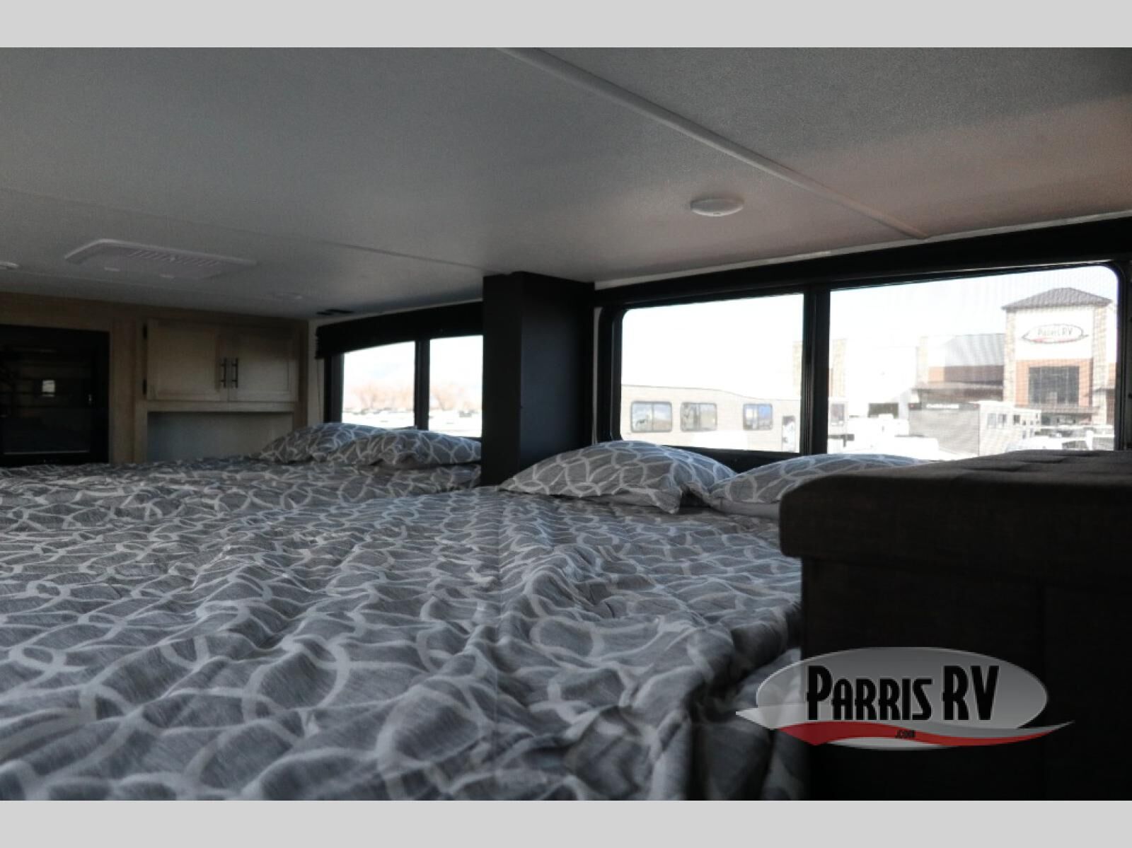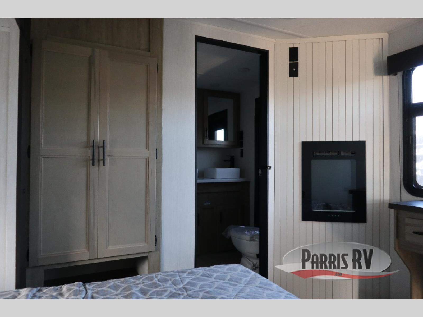 Choosing this destination trailer as your next RV won't be a hard decision! You can enter in through the front bath that includes dual bath sinks, a shower with a seat, and a medicine cabinet for your necessities. The master bedroom is connected to this bath for added convenience, and you're sure to enjoy the bedroom fireplace and king bed slide out. Just outside this room are the stairs that lead to the loft where you'll find two queen-size beds on one side and an open area where the kids can play or to use as storage. A second full bath is found next the stairs on the lower level, and there is a wardrobe with washer/dryer prep if you want to add these appliances. Everyone will love to join together and visit in the combined kitchen and living room. Here, you'll find a free-standing dinette, an L-shaped sofa, a kitchen island with two chairs, plus an entertainment center with a fireplace! The hidden pantry behind the fireplace will let you keep food stocked, and the rear patio doors will let natural light in!