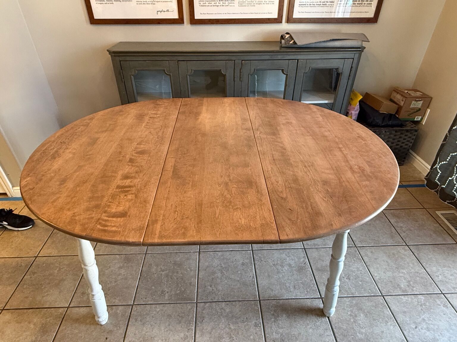 VenmoSolid wood round dining table with center leaf. Originally belonged to my grandparents and has been refinished over the years.