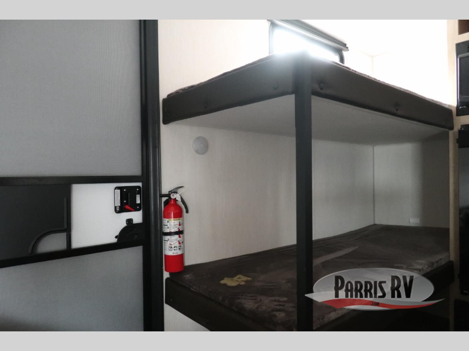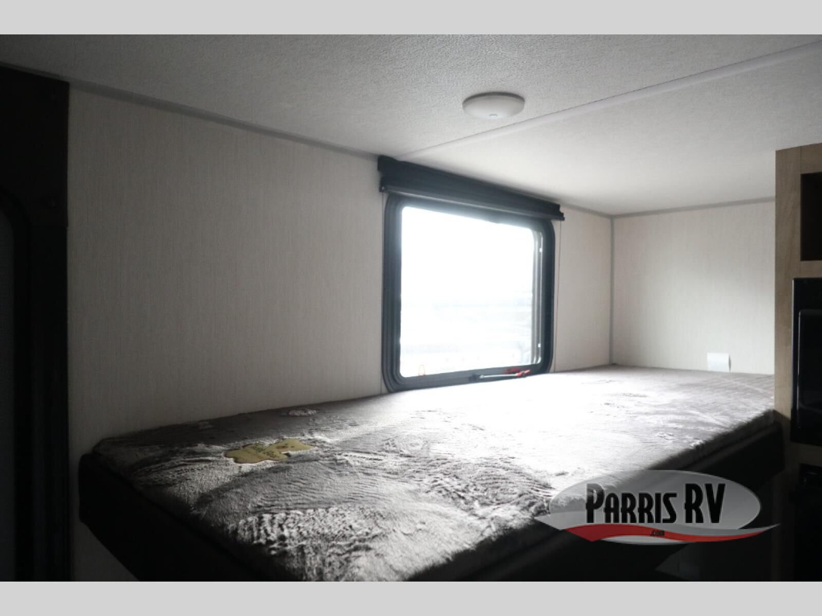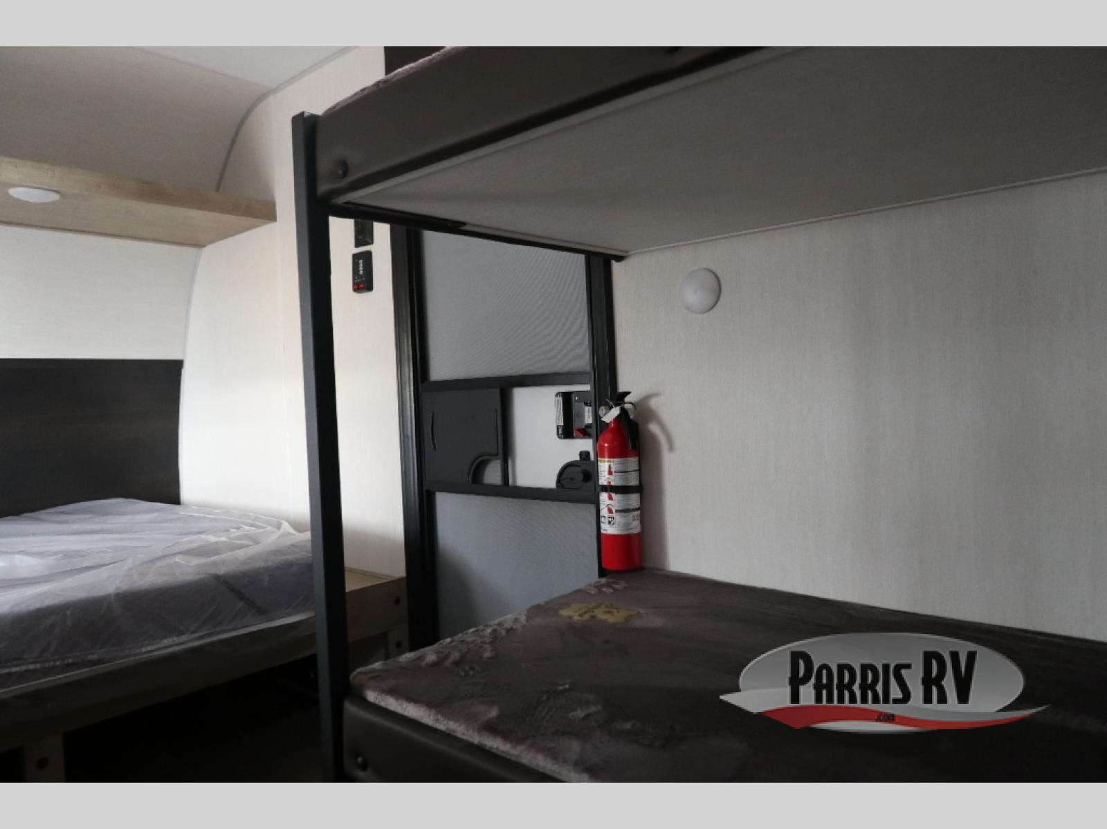 This travel trailer is perfect for epic road trips, memorable camping excursions, or rejuvenating getaways. The private bathroom is equipped with everything you need for a comfortable stay, providing a convenient spot to freshen up after a long day of exploring. The kitchen is equipped with a refrigerator for keeping drinks and ingredients fresh, and a microwave for quick reheating. The bunk beds are a great spot to take a nap or a kid's sleeping space. Overhead cabinets provide additional storage for cookware, dishes, and other essentials. In addition, the queen-sized bed provides a comfortable sleeping space, perfect for relaxing after a long day.