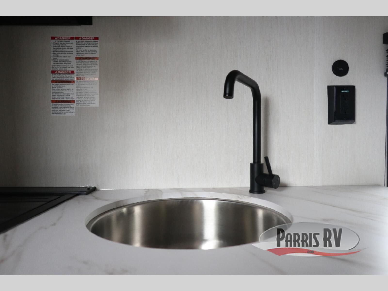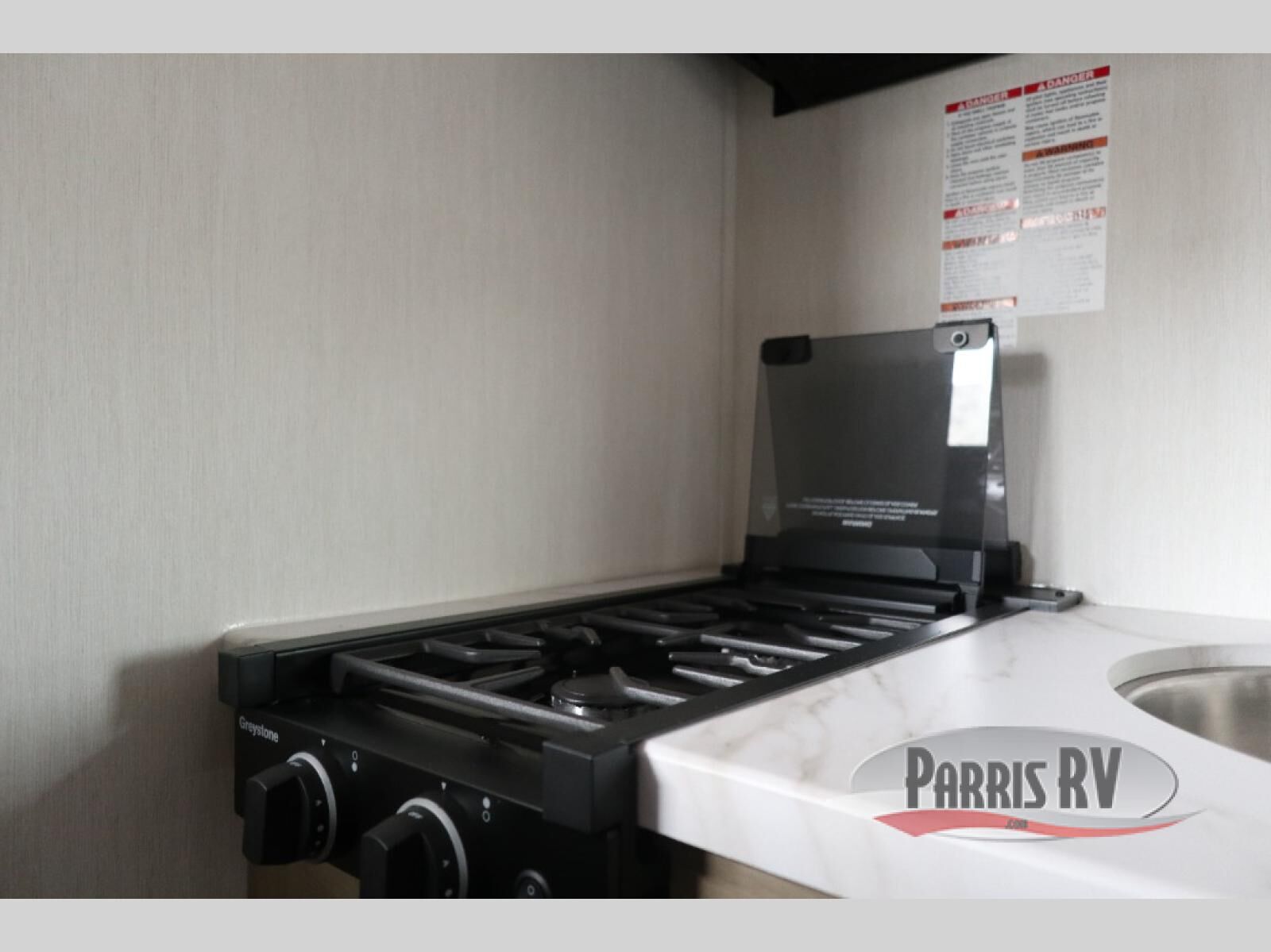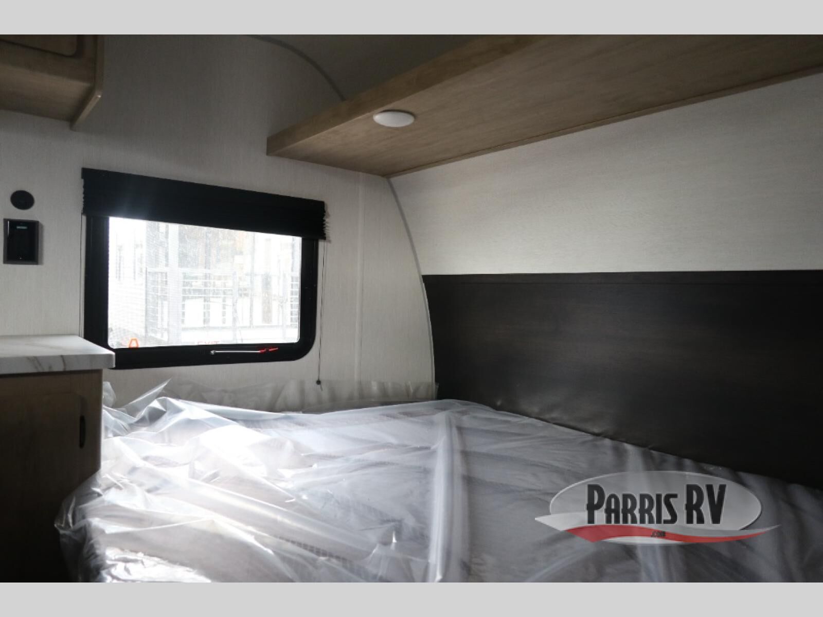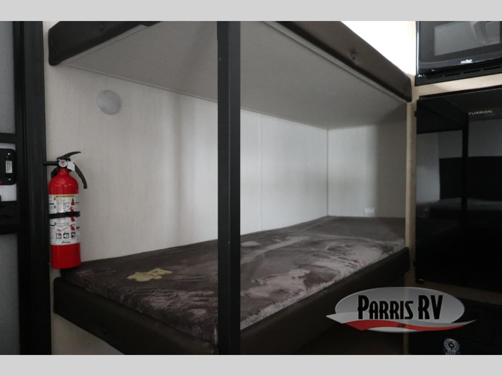 This travel trailer is perfect for epic road trips, memorable camping excursions, or rejuvenating getaways. The private bathroom is equipped with everything you need for a comfortable stay, providing a convenient spot to freshen up after a long day of exploring. The kitchen is equipped with a refrigerator for keeping drinks and ingredients fresh, and a microwave for quick reheating. The bunk beds are a great spot to take a nap or a kid's sleeping space. Overhead cabinets provide additional storage for cookware, dishes, and other essentials. In addition, the queen-sized bed provides a comfortable sleeping space, perfect for relaxing after a long day.