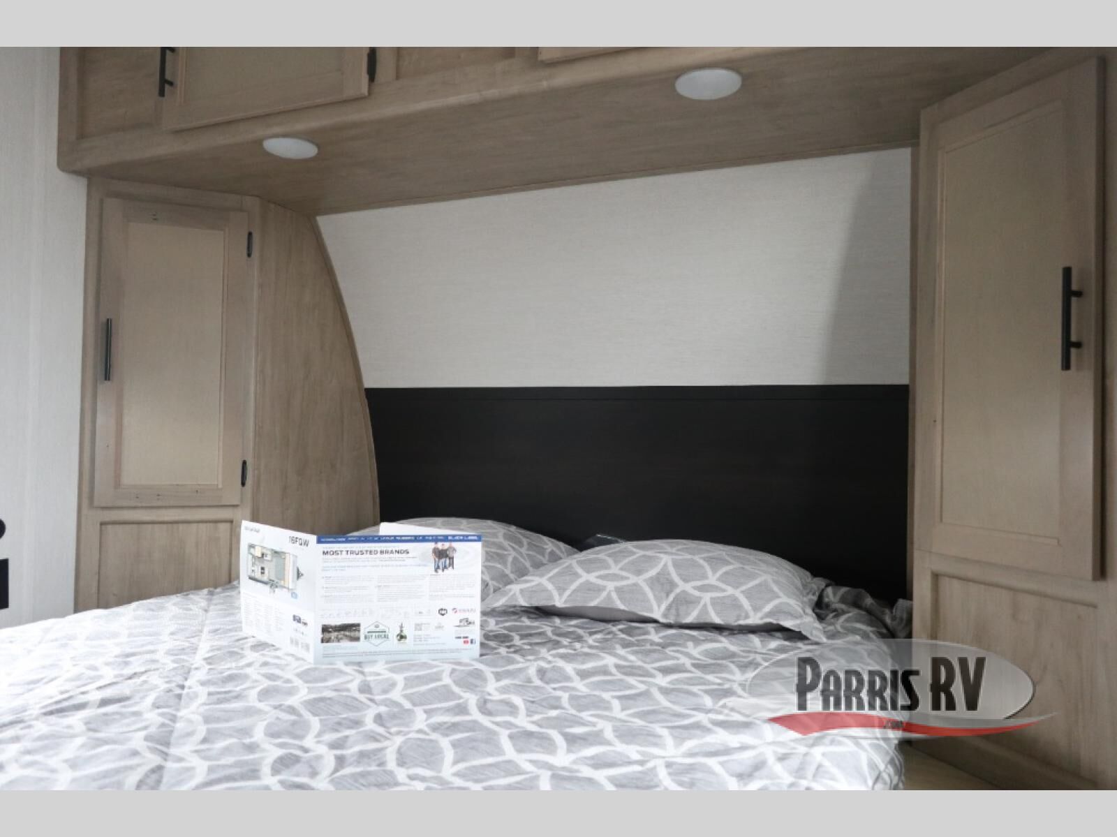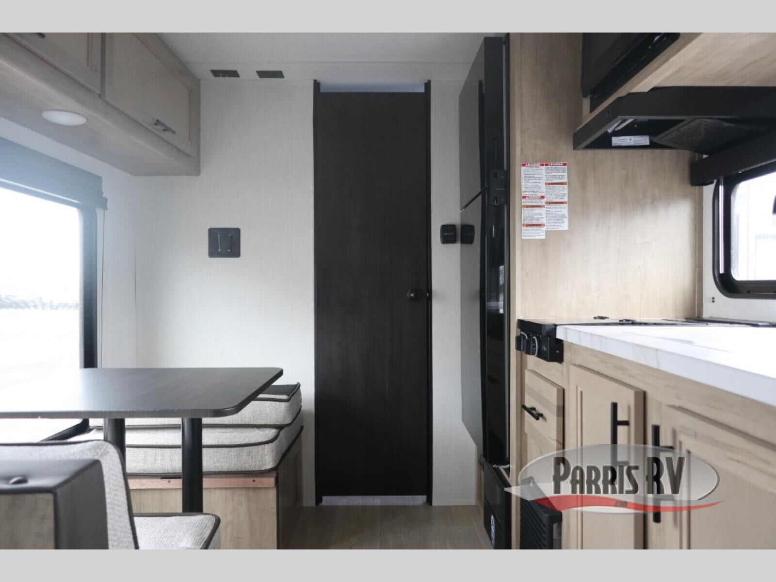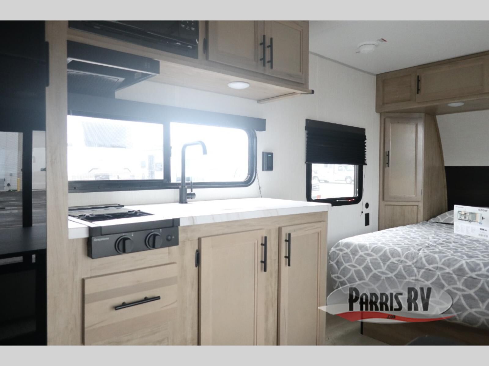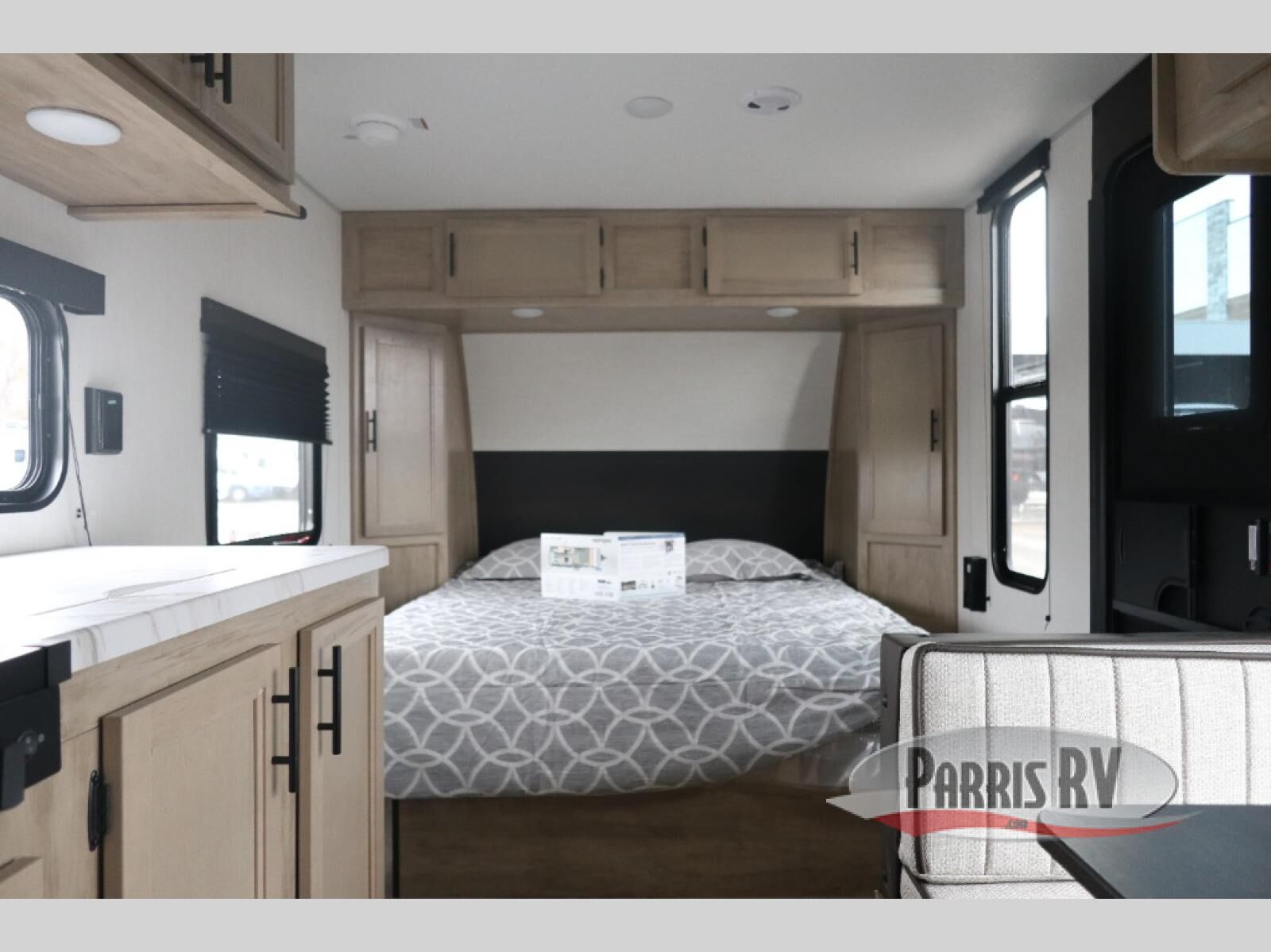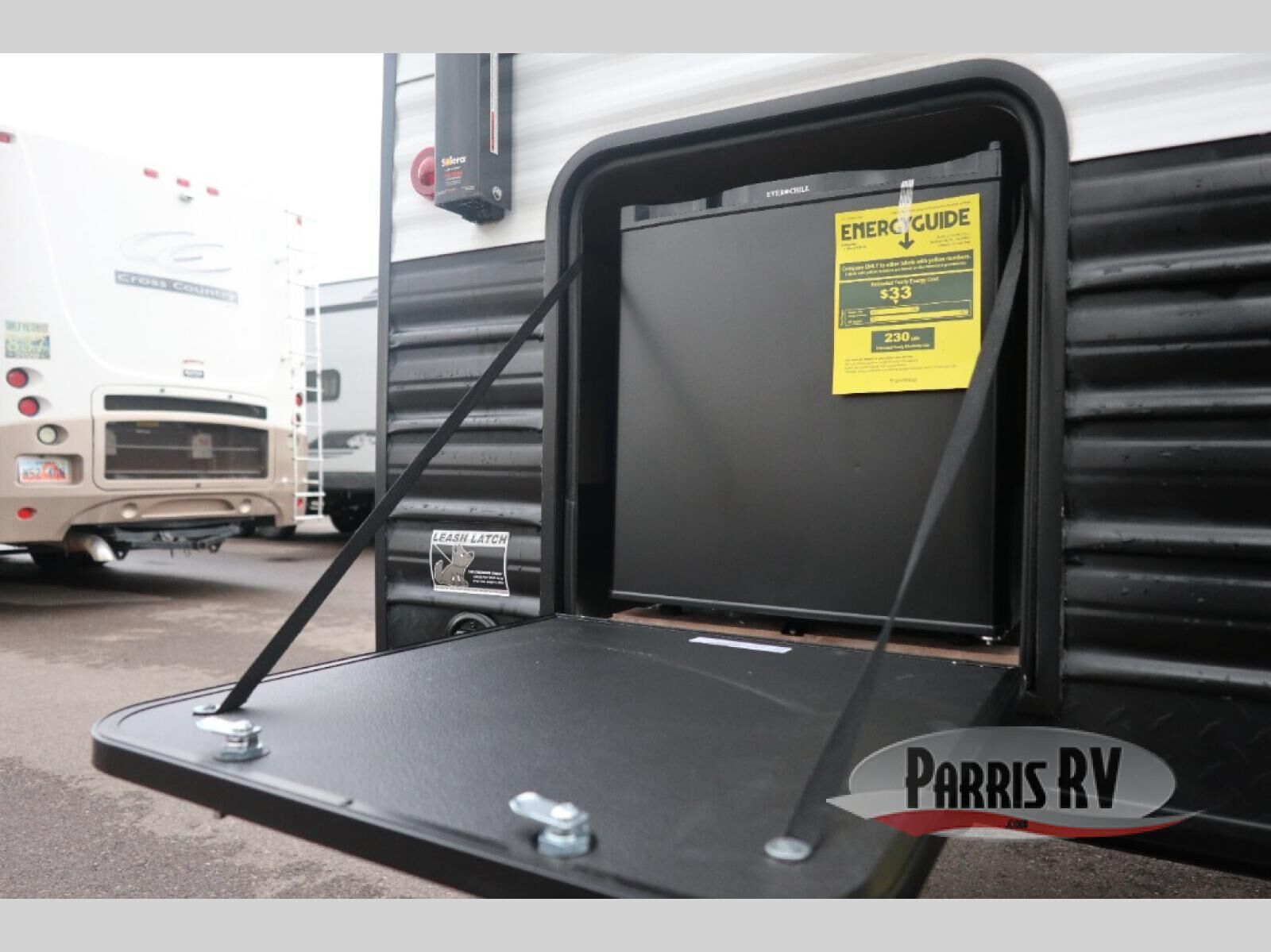 You will love camping in this travel trailer with a front queen bed. Freshen up each morning in the full rear bathroom with the tub/shower, a toilet, and sink. Fill your bellies with the perishables stored in the refrigerator and cook them on the cooktop then enjoy them at the booth dinette. You could even prepare a meal while breathing in some fresh air at the outside mini kitchen while staying protected by the 12' power awning. Easily store all of your outdoor gear in the outside storage area too!
