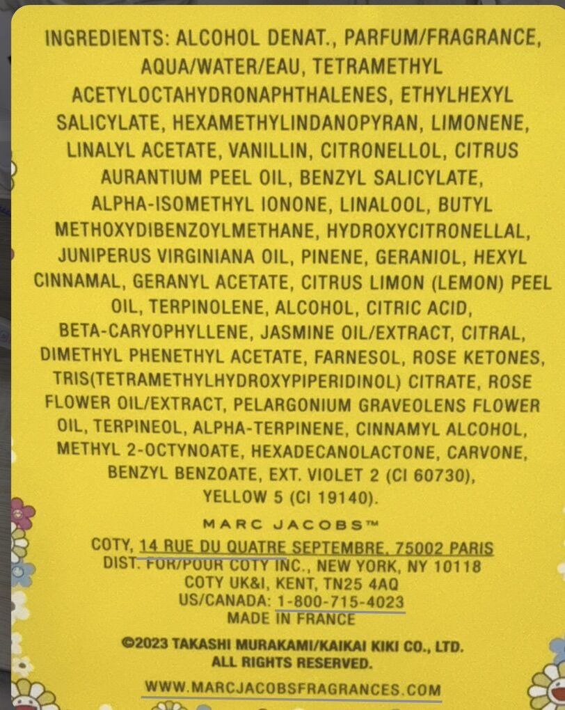 Description Step into a surreal garden where bright citrus and juicy sweetness are balanced with an earthy touch in the Limited Edition Daisy Murakami Yellow. A sparkling, juicy fragrance with Mandarin, Strawberry, and Cedarwood notes. Designed for moments of optimism and wonder, this fragrance is your invitation to see the world through a more colorful lens. is a work of art. A playful meeting of two iconic worlds: Marc Jacobs’ whimsical Daisy and Takashi Murakami’s vibrant flowers.