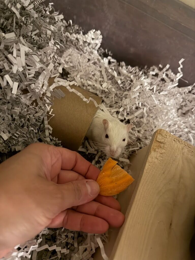 Meet Merle Haggard and Willie Nelson! They are the cutest male gerbil duo, and we believe they are littermates. We took them in from a local shelter. They are warming up to people and have been very gentle. Gerbils living requirements also include a 50 gallon minimum tank or bin. If you do not have an appropriate enclosure, we can provide one at cost. Please read this care guide before applying as we do hold our adopters to these standards: https://littlecrittercrew.org/gerbil-care-guide/