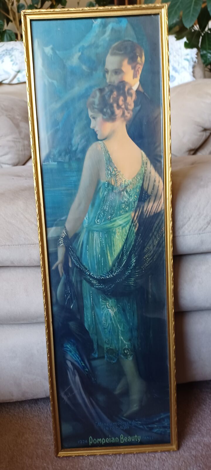 1924 "Pompeian Beauty" panel, "Honeymooning" in the Alps (woman in blue dress with gentleman).