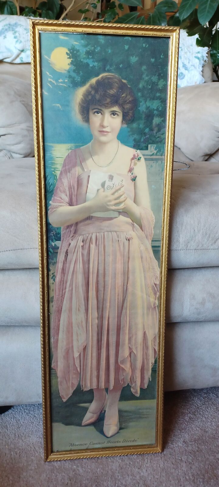 "Absence Cannot Hearts Divide" (girl in pink dress holding letter).