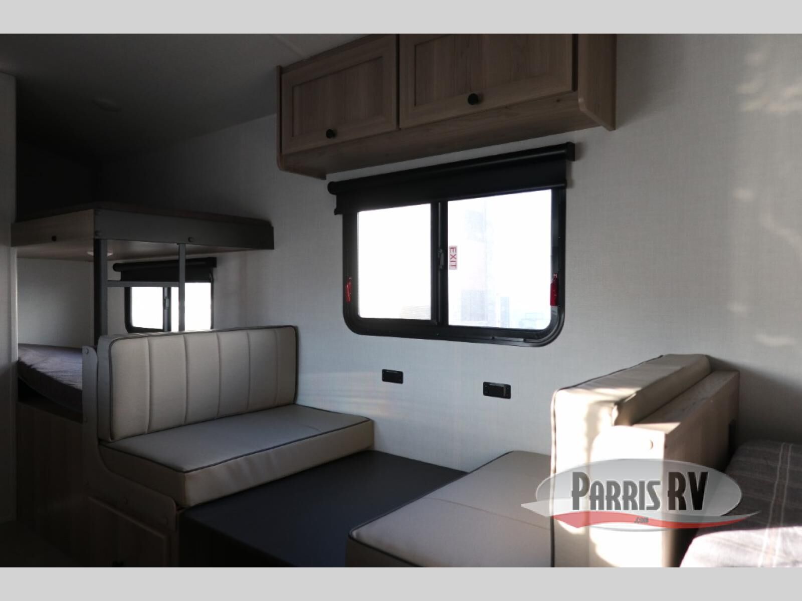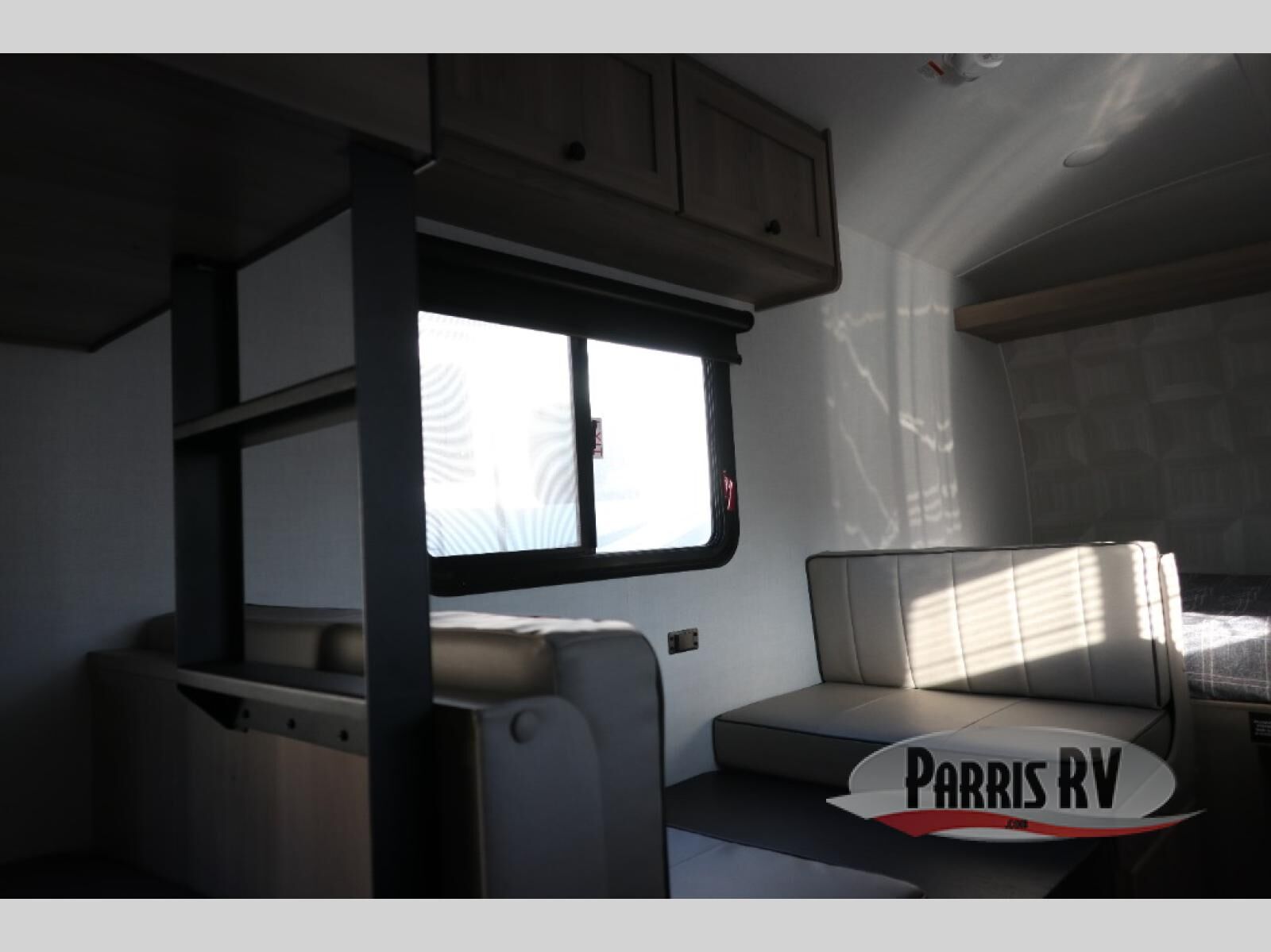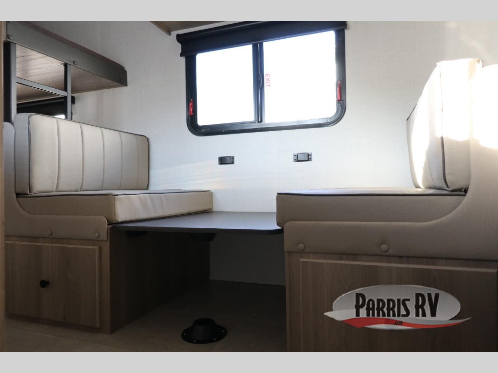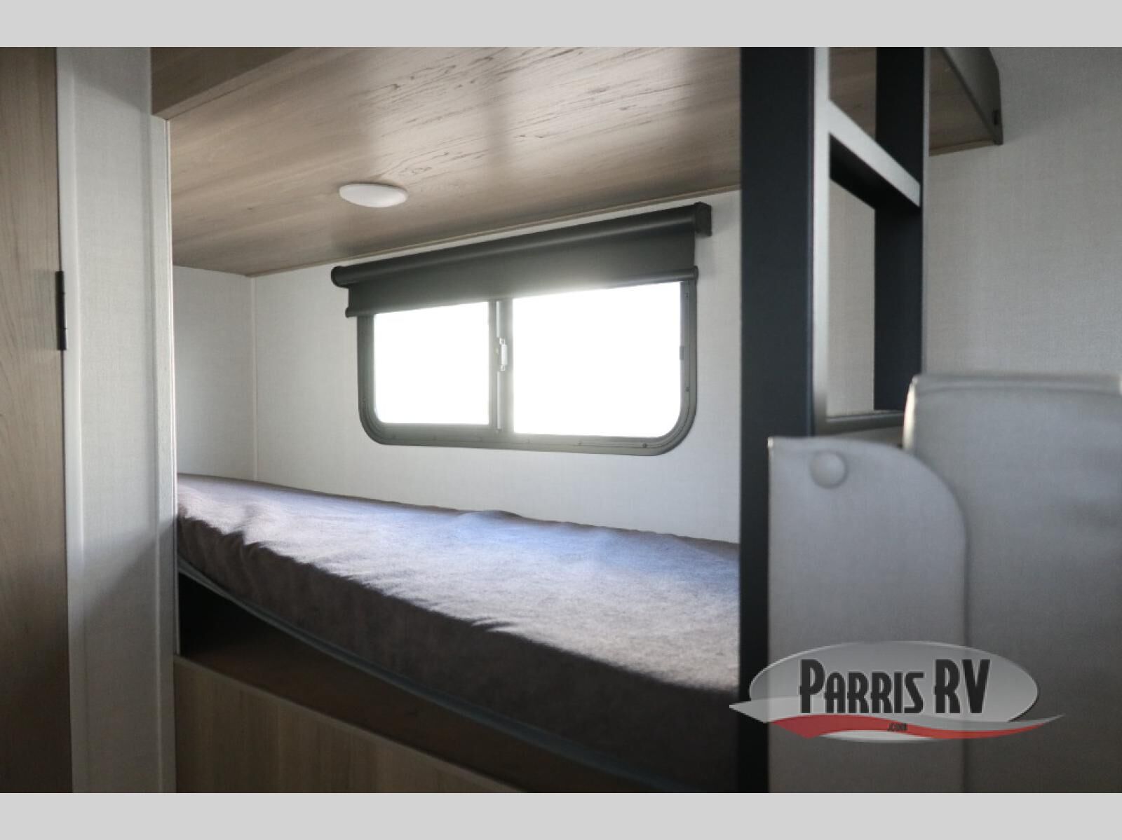 When you enter this compact but mighty trailer, you're greeted by a comfortable 54" x 80" full bed at the front, complete with a shelf and wardrobe to keep your clothing and essentials neatly organized. To one side sits a cozy 32" dinette, perfect for enjoying a meal or playing a board game after a day of exploring. Across from it, the well-equipped kitchen includes a sink, microwave, and refrigerator everything you need to quickly whip up a meal. One rear corner houses a convenient bathroom with a shower and toilet, giving you the comfort of home without relying on campsite facilities. In the opposite corner, 30" x 74" double bunks provide extra sleeping space so more guests can join the adventure.