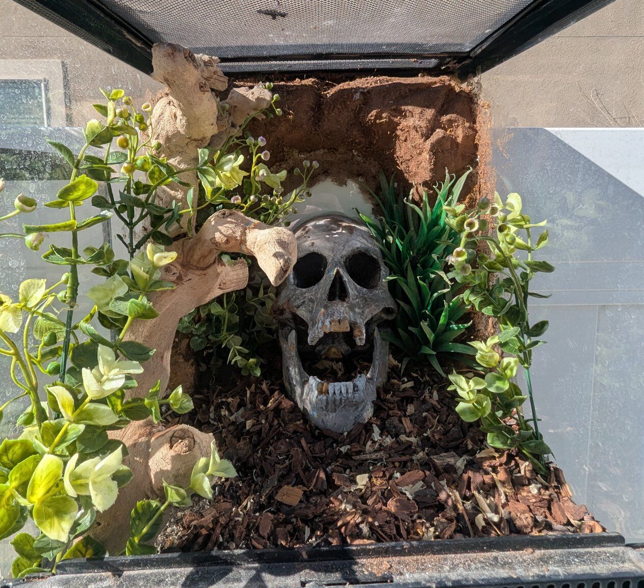 Pirate skull in cave custom background. awesome! for spiders, frogs, geckos or other Little critters. I have lots of other reptile supplies that can be added