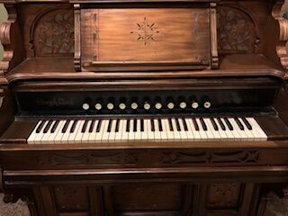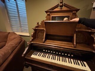 Antique Story & Clark Pump organ, works great, refinished, looks brand new, original owner, twist up antique stool, original claw feet on stool.