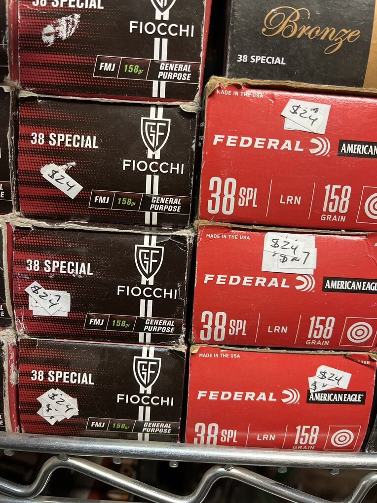 Boxed 38 sp ammo for $12-10%=$11 for wadcutter ammo. 38 sp fmj or LRN for $24-10%=$22. 357 mag jsp for $31-10%=$28. Lots available. Brass, dies, bullets, powder and primers too. Please see my other ads. Thanks, Joe.