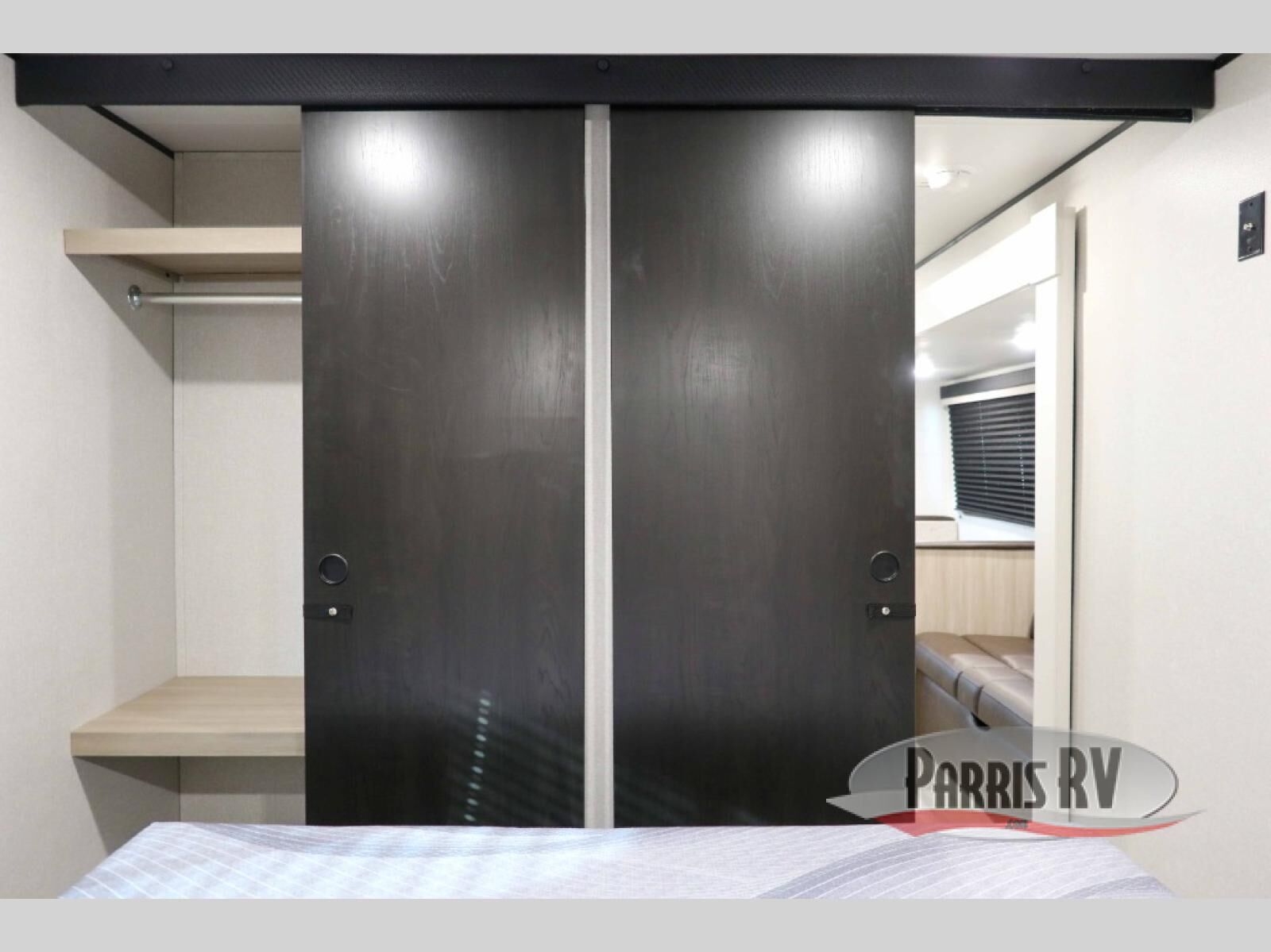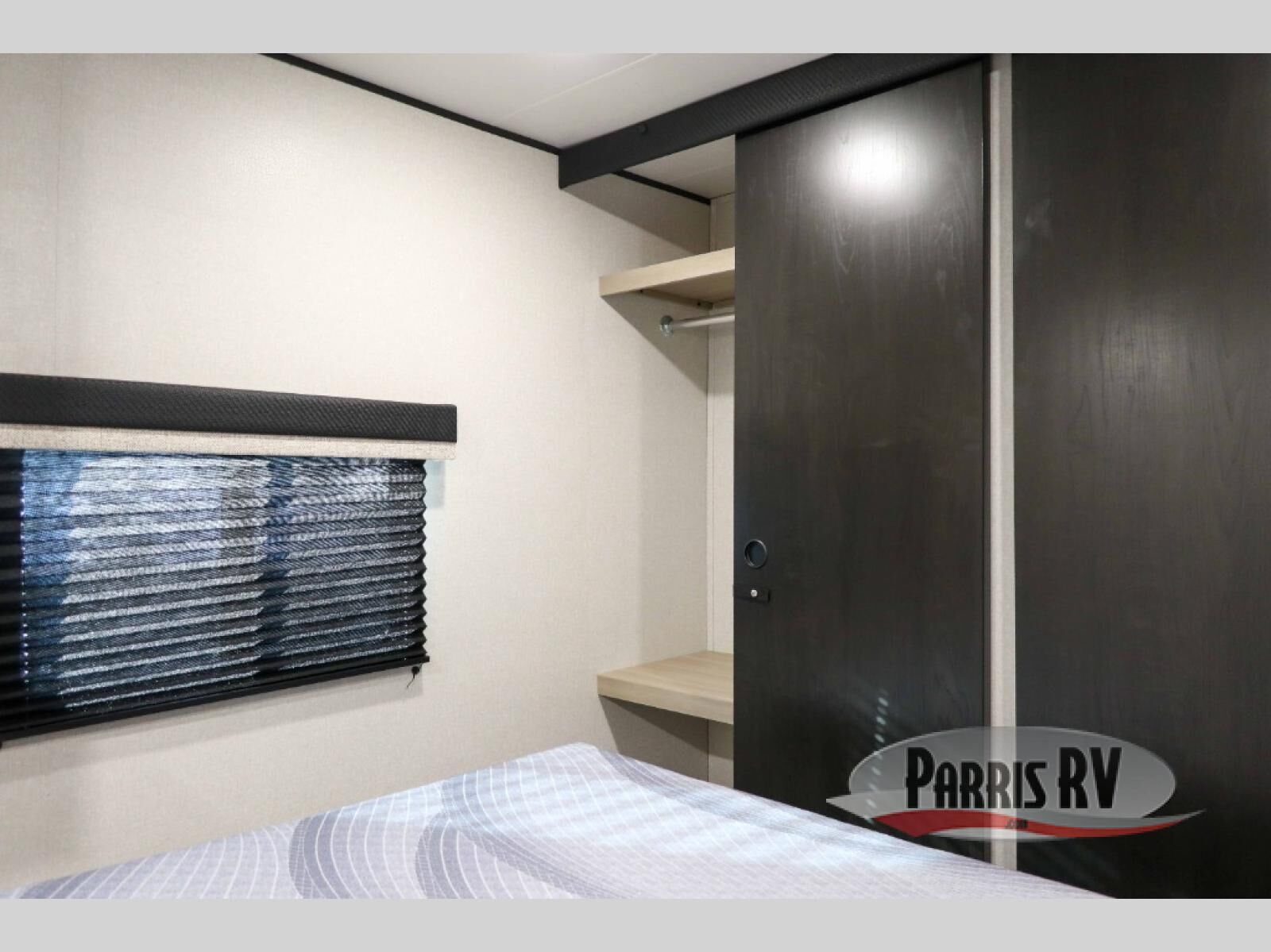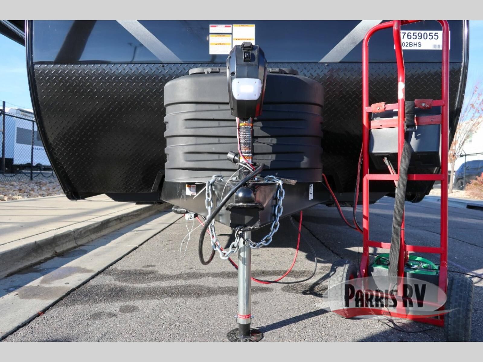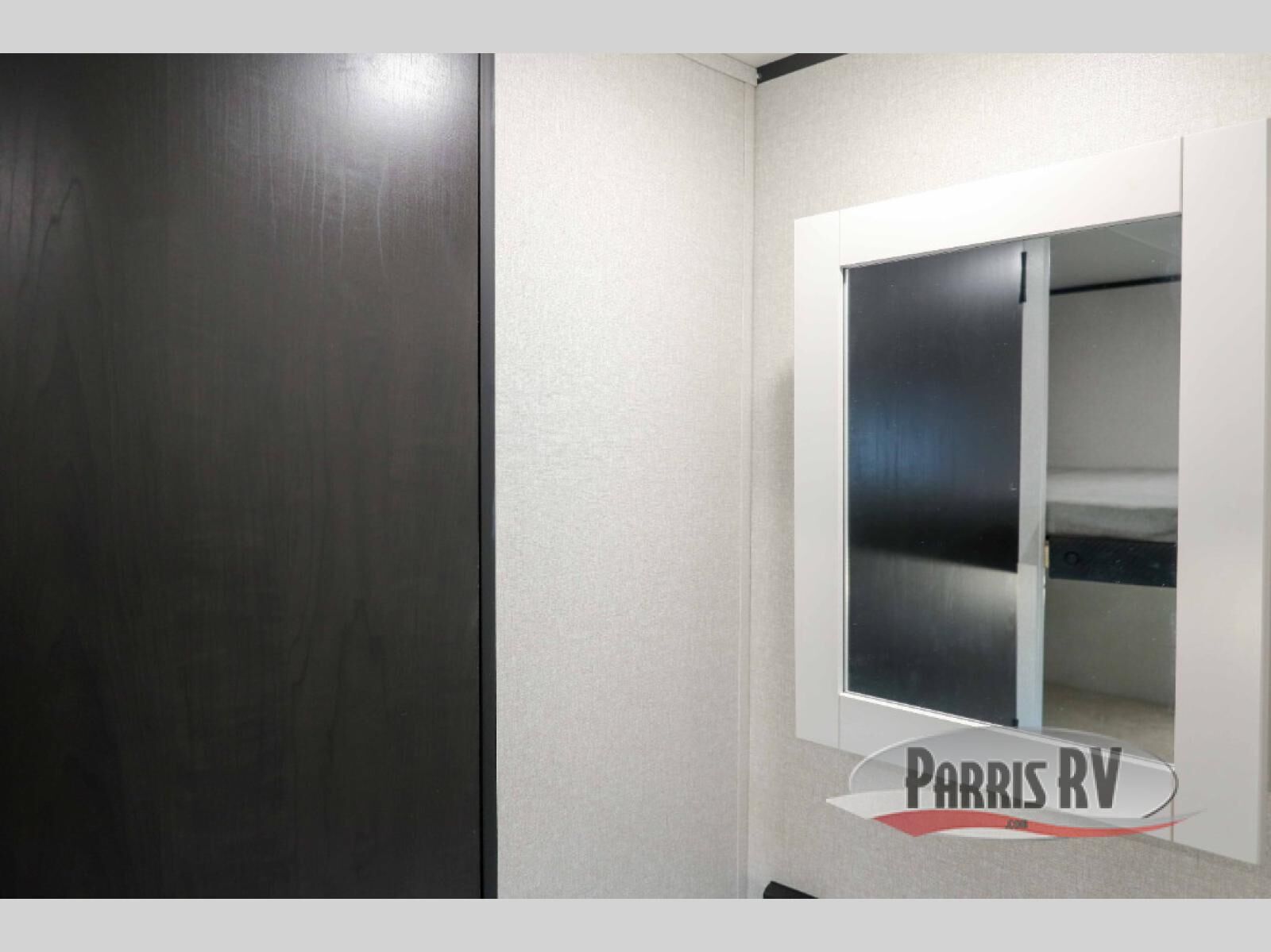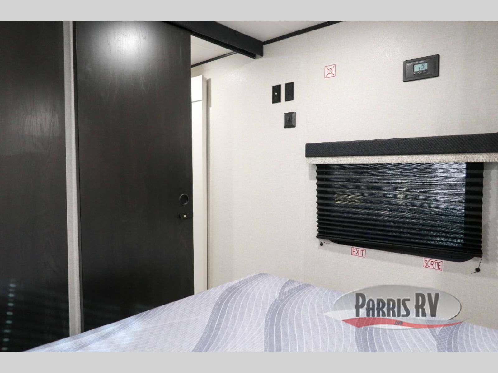The whole gang will love weekends in the woods with this travel trailer in tow! There is a large slide out for added space, and here you'll find the jack-knife sofa and booth dinette. There is also an entertainment center with a fireplace with a hidden pantry behind, along with storage shelves for snacks, board games and more! You can claim the front private bedroom to yourselves, while your guests or little ones take the double-size bunks. A full kitchen is complete with a three-burner cooktop and microwave oven to make meals each day, plus a 12V refrigerator and pantry for food storage. This unit also includes an outdoor kitchen with a refrigerator to keep cold drinks ready to enjoy!