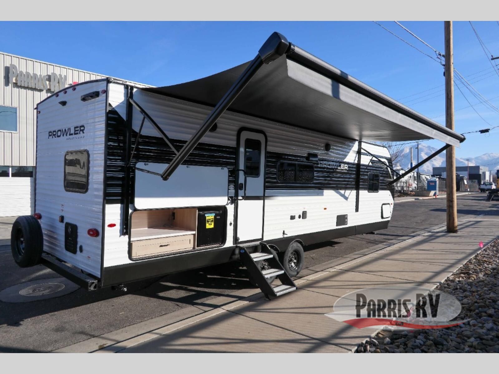 With any Prowler travel trailer, you will enjoy convenient amenities and at-home comforts wherever you decide to camp! Each one is built with a durable fully integrated A-frame, a TrussXL roof system, and galvanized wheel wells. And the self-adjusting brakes, easy-lube axles and nitrogen filled radial tires will provide smooth towing. Inside, you'll enjoy vinyl flooring throughout that will be easy to keep clean, durable, residential-inspired kitchen countertops, a residential-style high-rise kitchen faucet, and solid hardwood cabinet doors with hidden hinges and screwed stile construction. The mandatory Camping in Comfort Package includes a large folding entry door grab handle, MORryde Step Above entry steps, an on-demand tankless water heater, and stylish window shades. There are also available options that vary between single and double axle units that will allow you to customize your Prowler to fit your needs!