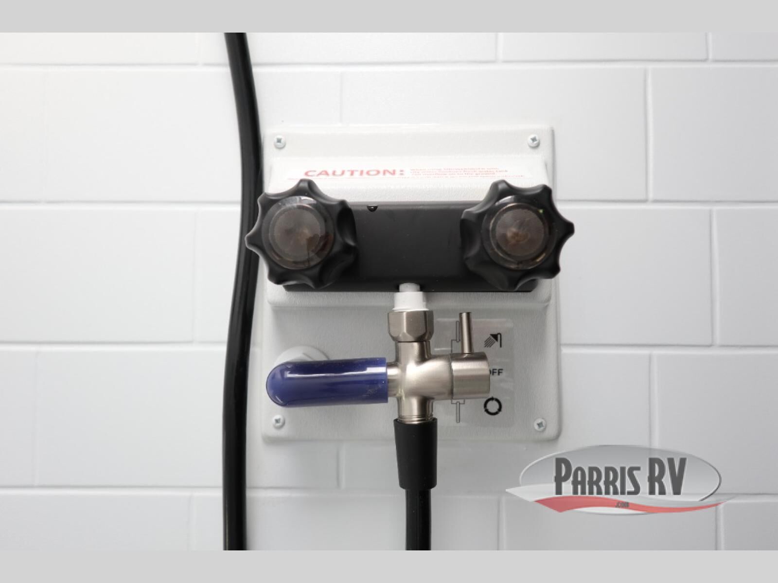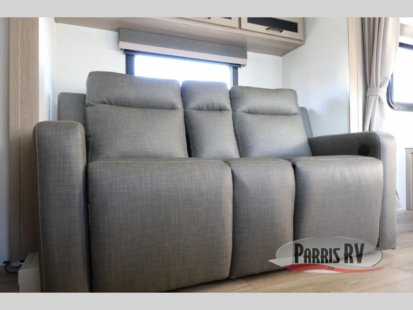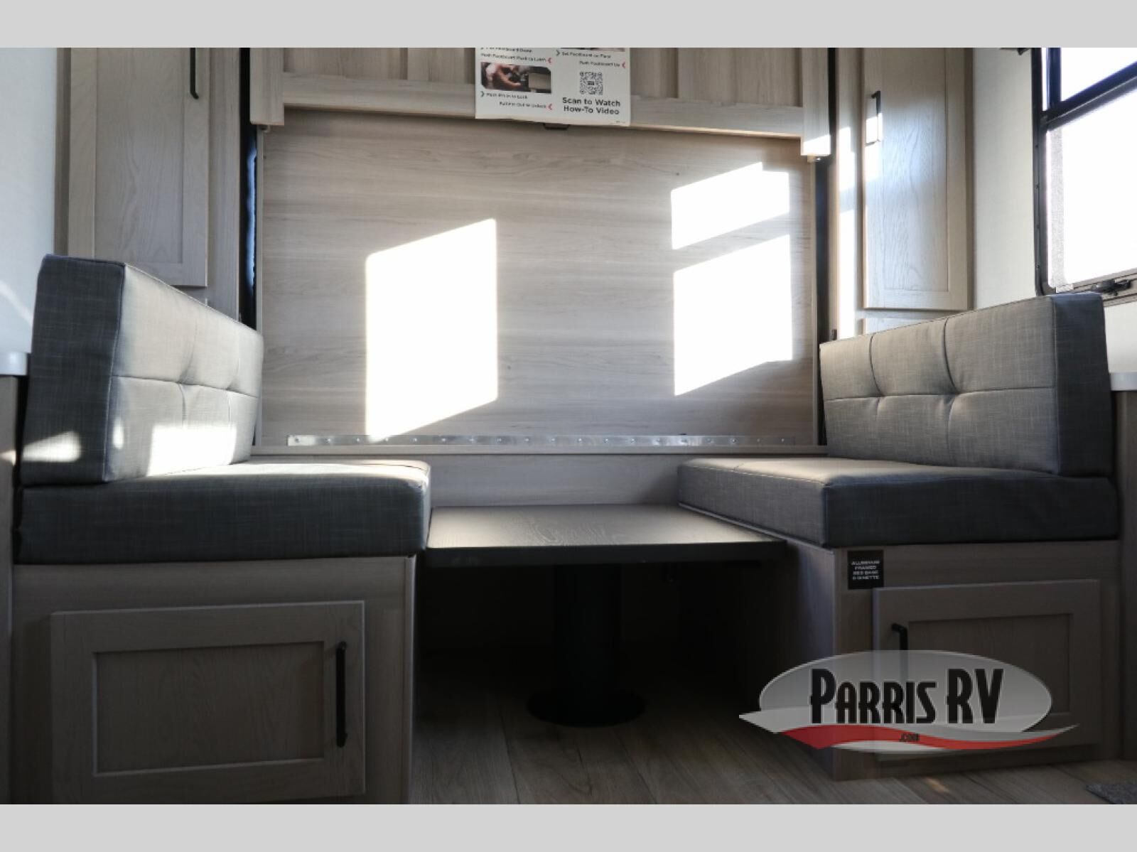 This versatile travel trailer is perfect for weekend camping trips to your favorite park! Once you arrive at your site, you can unload the pass-thru storage, then put out the 15' power awning and relax in your camp chairs. The cooktop and microwave inside will let you make lunch when you get hungry, and there is a theater seat slide out if you want a comfy place to relax. There is also a 30" x 80" booth dinette up front where you can dine together and play games in the evenings, and when you're ready for bed, the 60" x 74" Murphy bed can be folded down over the dinette. This unit includes plenty of storage spaces, including dual bedside wardrobes, a kitchen pantry, and a linen closet in the full rear bath!