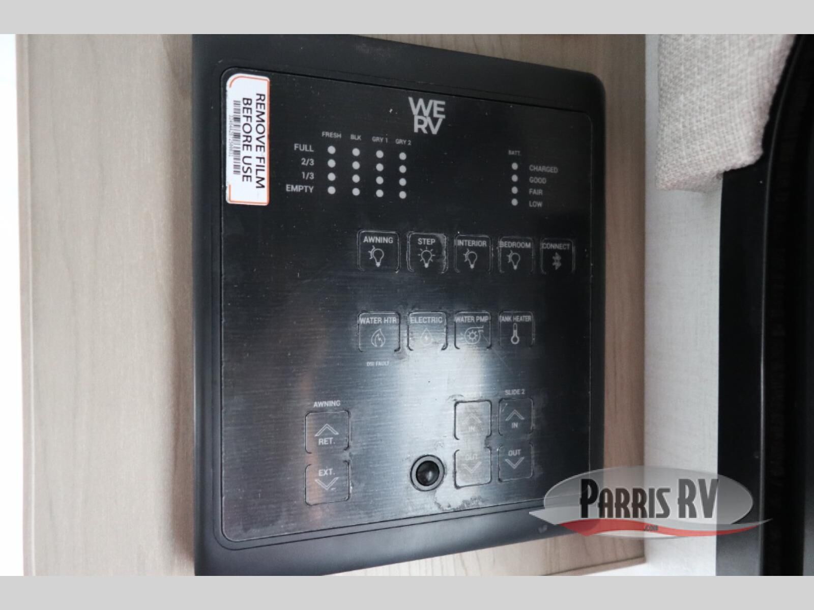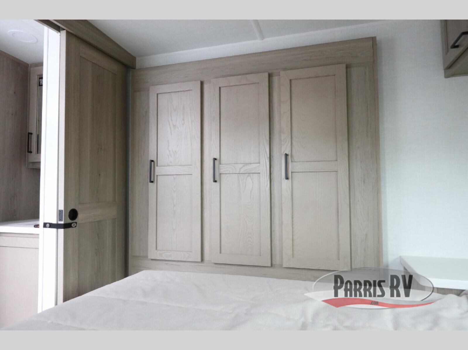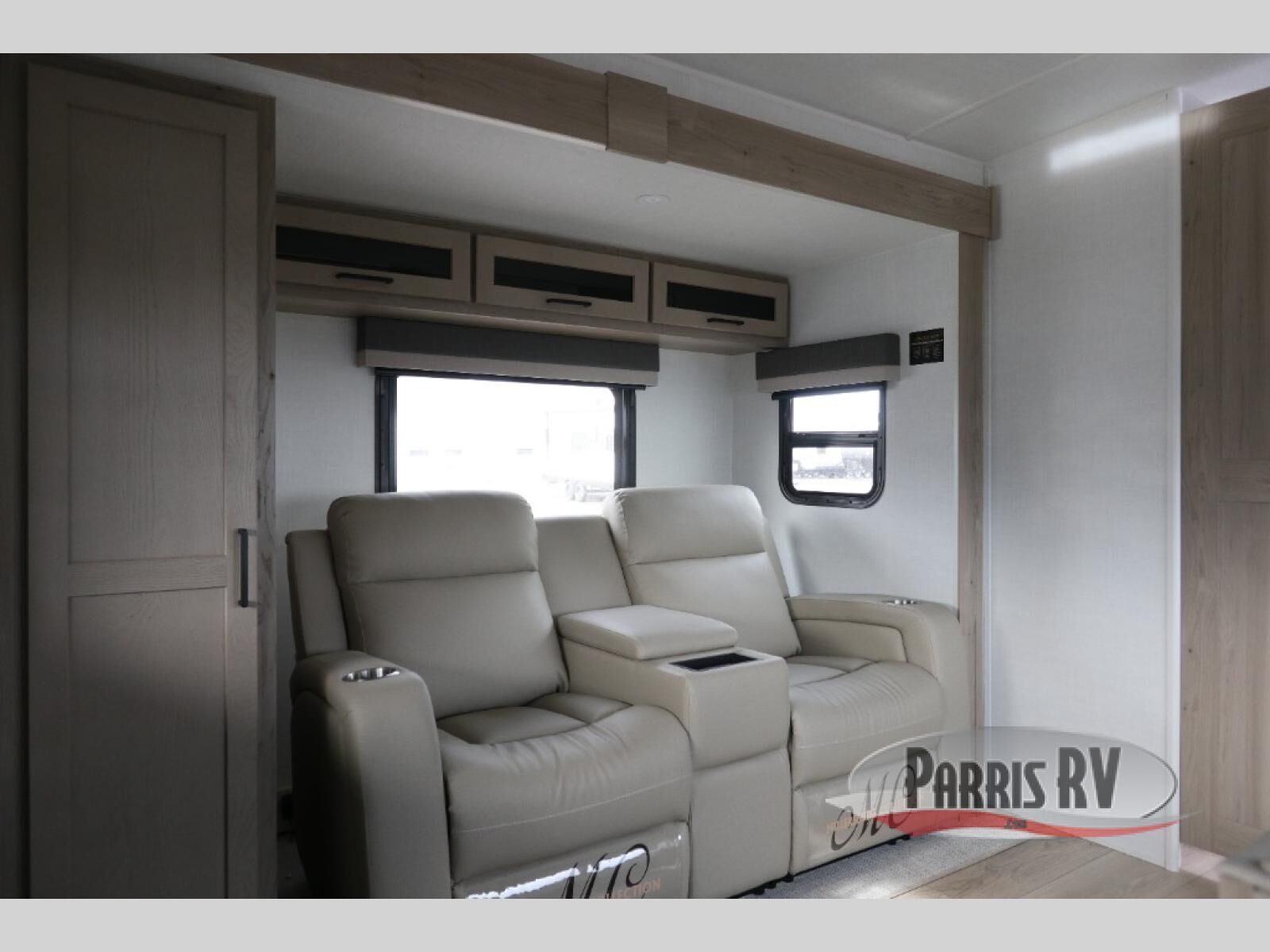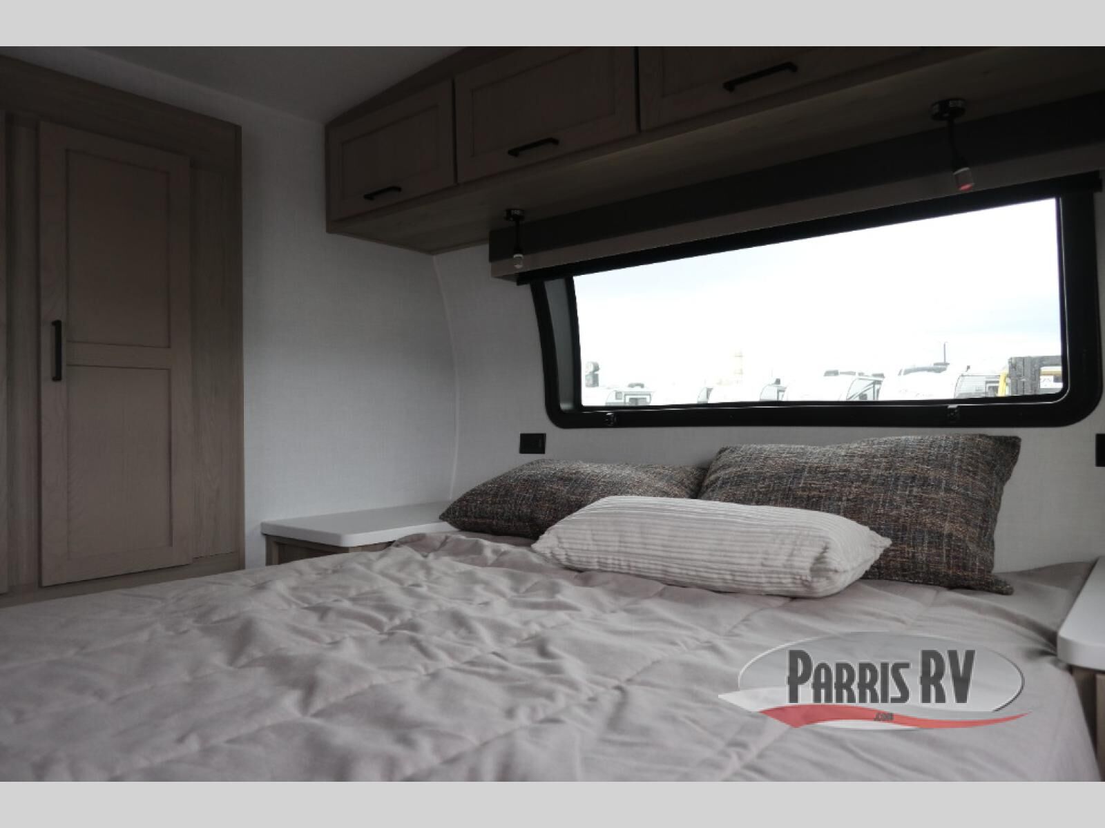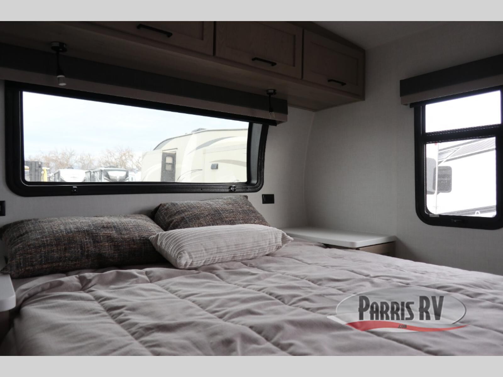 You and your spouse will have a great time camping in this travel trailer! You will have your own RV queen bed to sleep on in the front private bedroom, and an optional TV can be added if you enjoy the morning news in bed. Breakfast can be made on the three burner cooktop in the rear kitchen, or head outdoors to cook on the outside griddle. The 67" theater seating with cupholders will provide a place to relax and dine together, and the spacious walk-through bath will allow you to clean up before you head out for the day. This model includes plenty of storage space, including a pantry for your snacks, a wardrobe slide out in the bedroom, plus a drop-frame pass-through storage for larger camp gear!