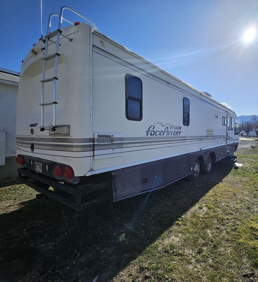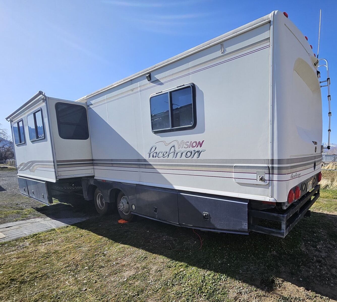 1997 Pace Arrow Vision 37 footer, dual axle, Ford 460 7.4 liter with just sixty thousand miles. Runs great.—no leaks, dry inside, you can drive it straight home. Dual air conditioners, dual heaters—all working smooth. Fair shape overall, honest wear for its age... missing the awning though, couple tiny fix-its, nothing major. Still solid, still roomy, still ready for the road. The slide out sure makes it a nice big space. Has a 50 inch TV in the bedroom. Onan generator like new. Tires are all in great condition. Has a Microwave convection oven. Standard oven, Washer drier etc, call...