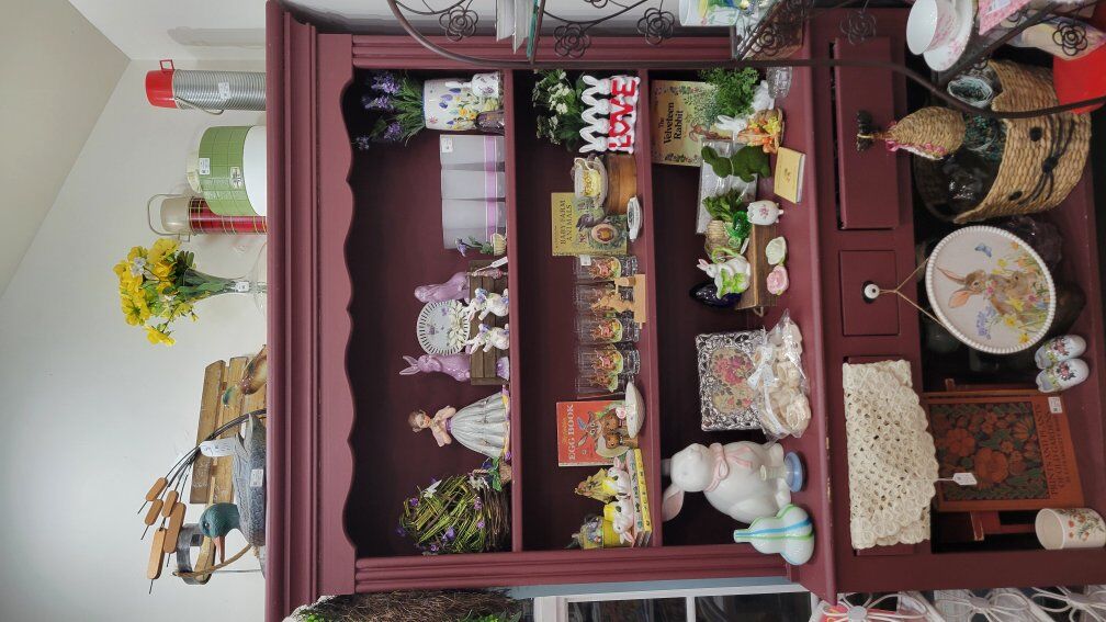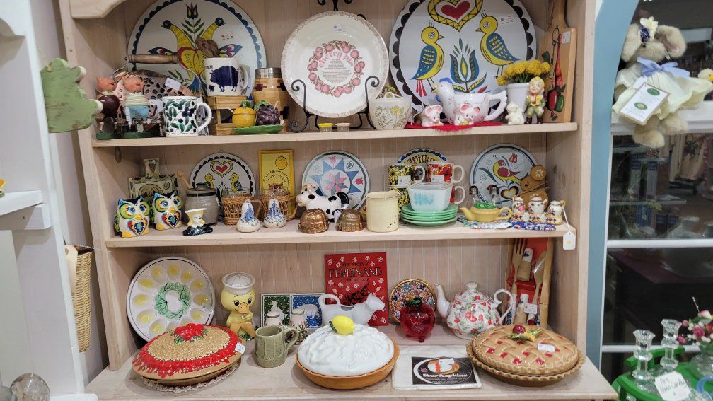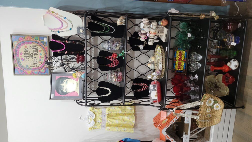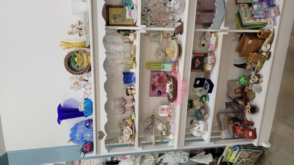 Think pink glass, charming figurines, vintage books, jewelry, cottagecore, woodland whimsy, and those special finds you don’t see every day.