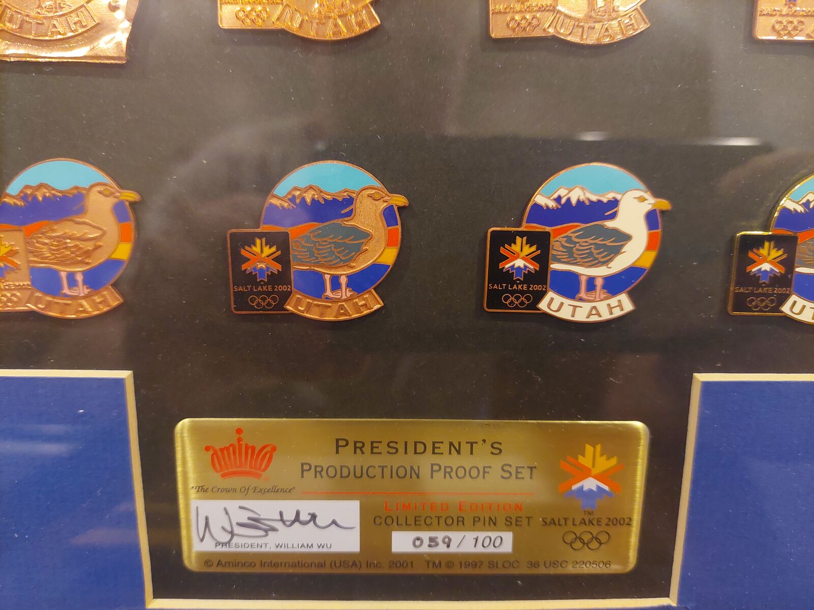 1–2. President’s Production Proof Pin Sets – Salt Lake City 2002 (2 Framed Displays)