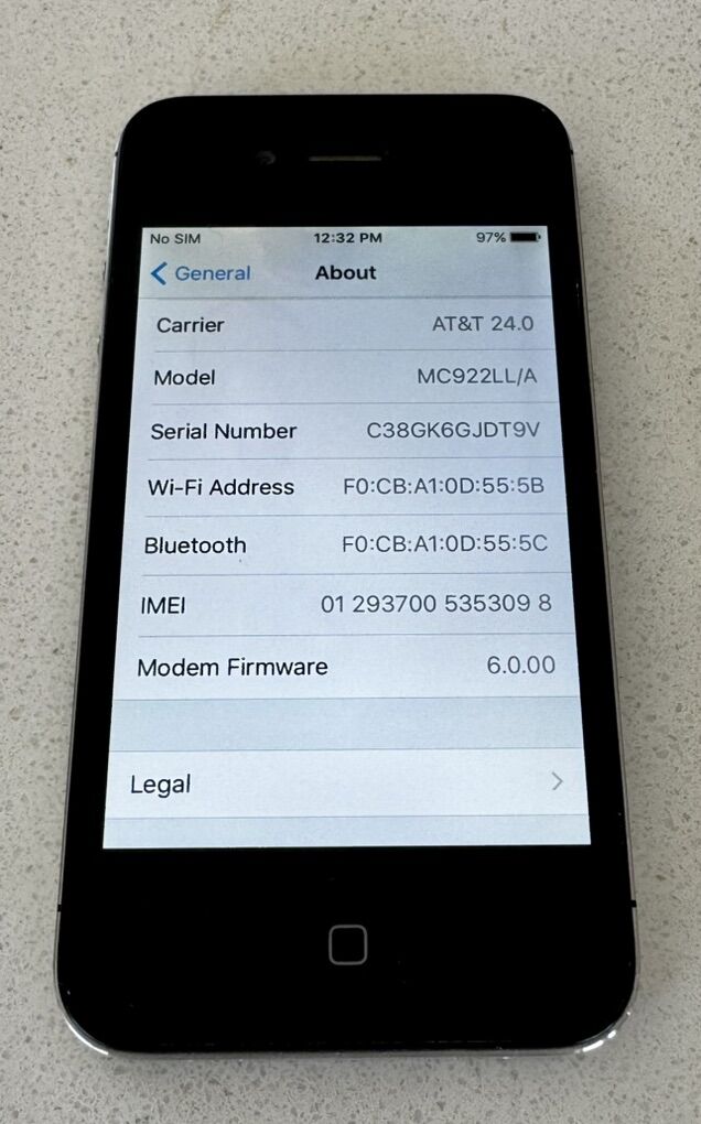 ApplePayExcellent condition. Like new. No chips. No scratches. Includes power cable. Requires AT&T Sim Card. New install of 9.3.6.