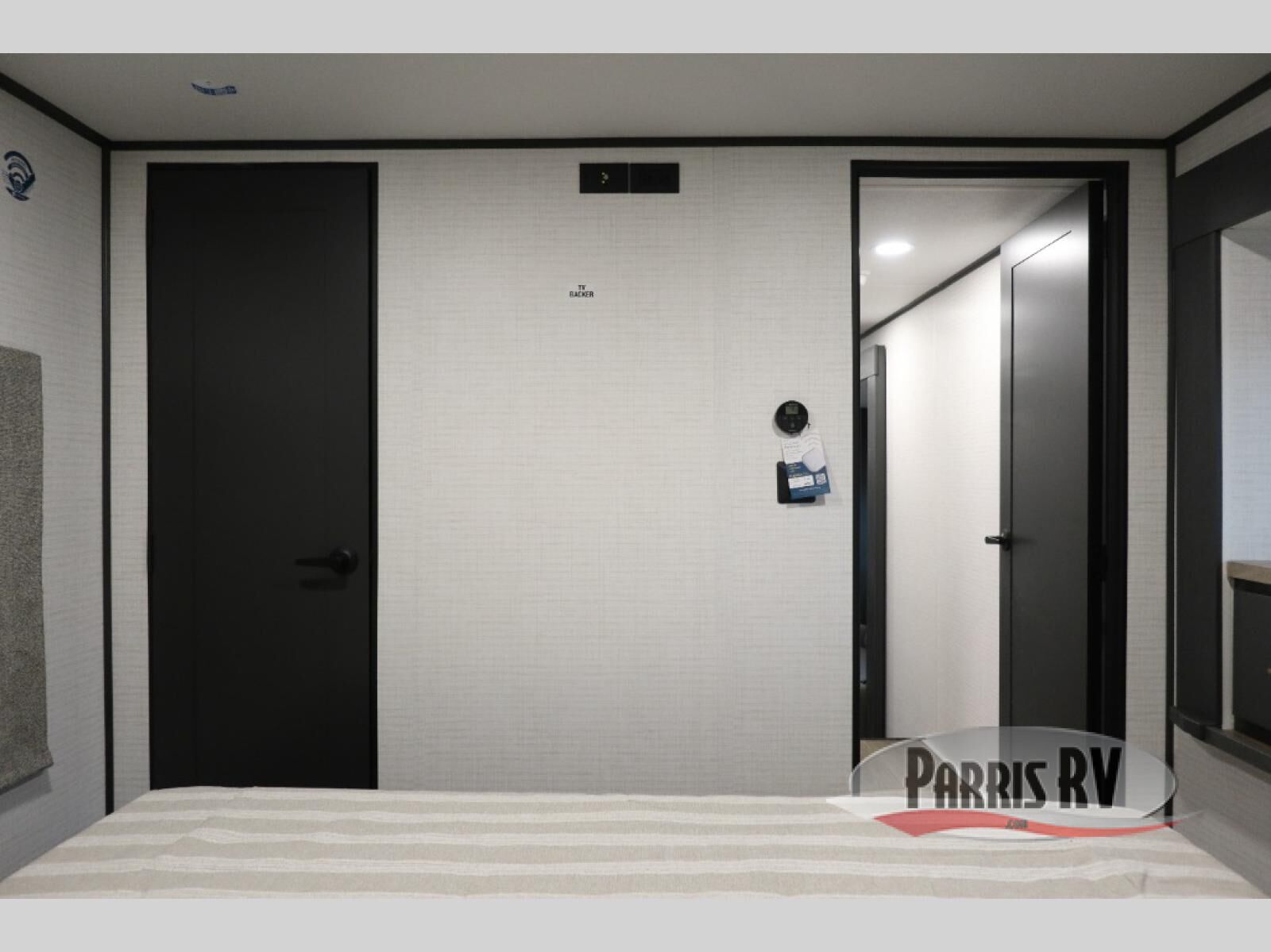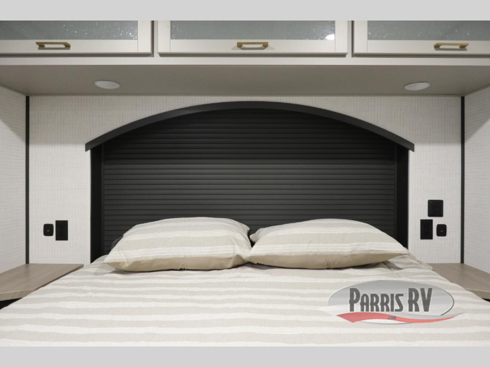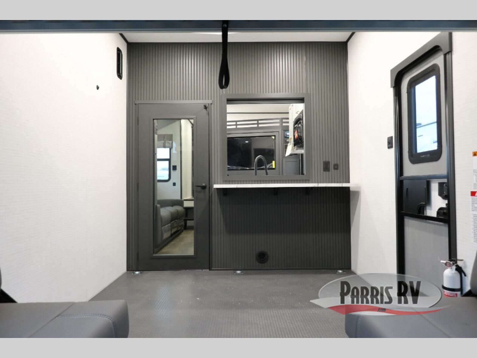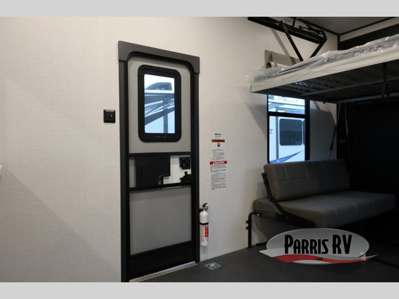 You'll love every minute spent in this double slide out, double entry fifth wheel! Your guests will have the 13' 6" separate garage all to themselves once the toys are unloaded, and here you'll find dual sofa sleepers with a Euro queen bed above. There is also a removable dinette table where you can enjoy a cold drink at when you have the 1,500 lb. capacity patio deck set up! Head to the combined kitchen and living area to relax on the sofa slide out while the cook prepares dinner. There is also a hidden pantry here you are sure to appreciate! The dual entry bath will create a front master bedroom, complete with a queen bed, dual nightstands and wardrobes, plus a wardrobe slide out for added storage and space!