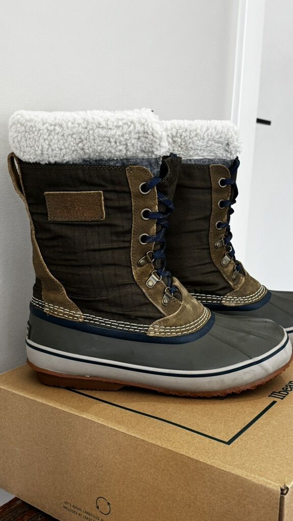 Waterproof rubber shell and seam-sealed construction. Molded rubber outsole with slip-resistant tread. Water-resistant, strong and durable nylon and leather upper. Removable recycled felt with faux-fleece liner.