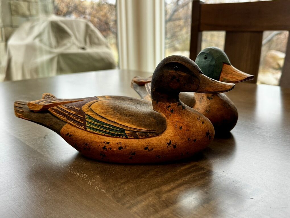 ApplePayTraditional hand-carved wooden Korean wedding ducks (wonangsetu) from Seoul. They have been wrapped and stored.