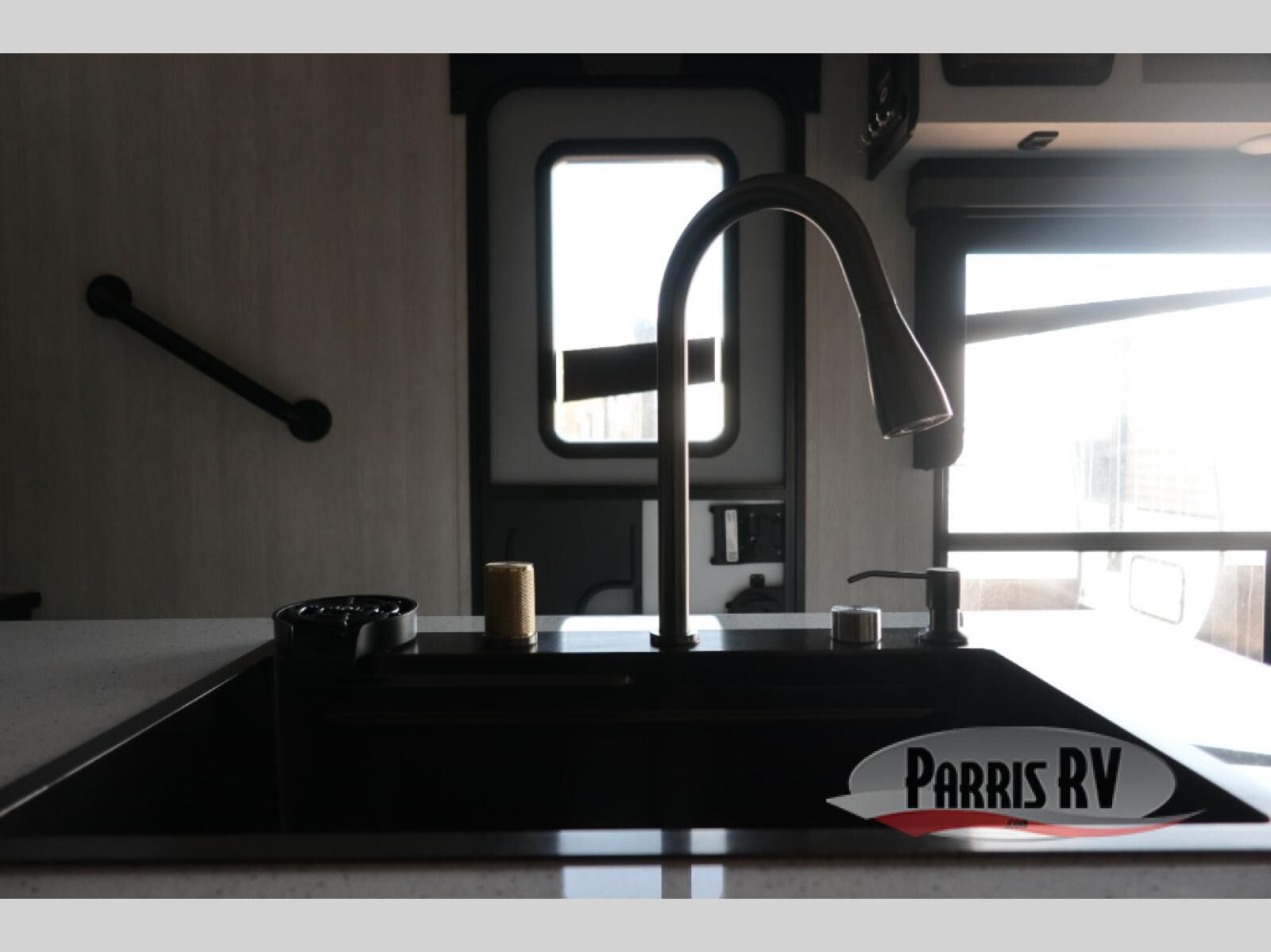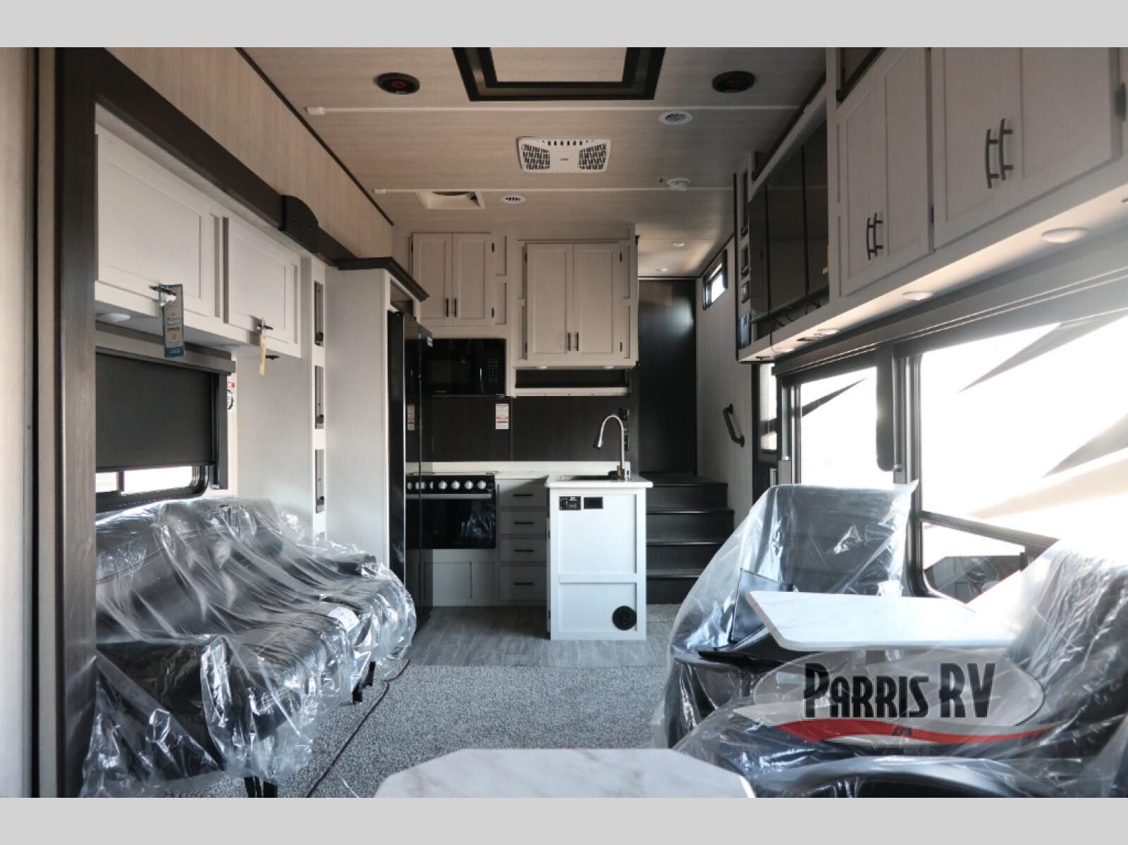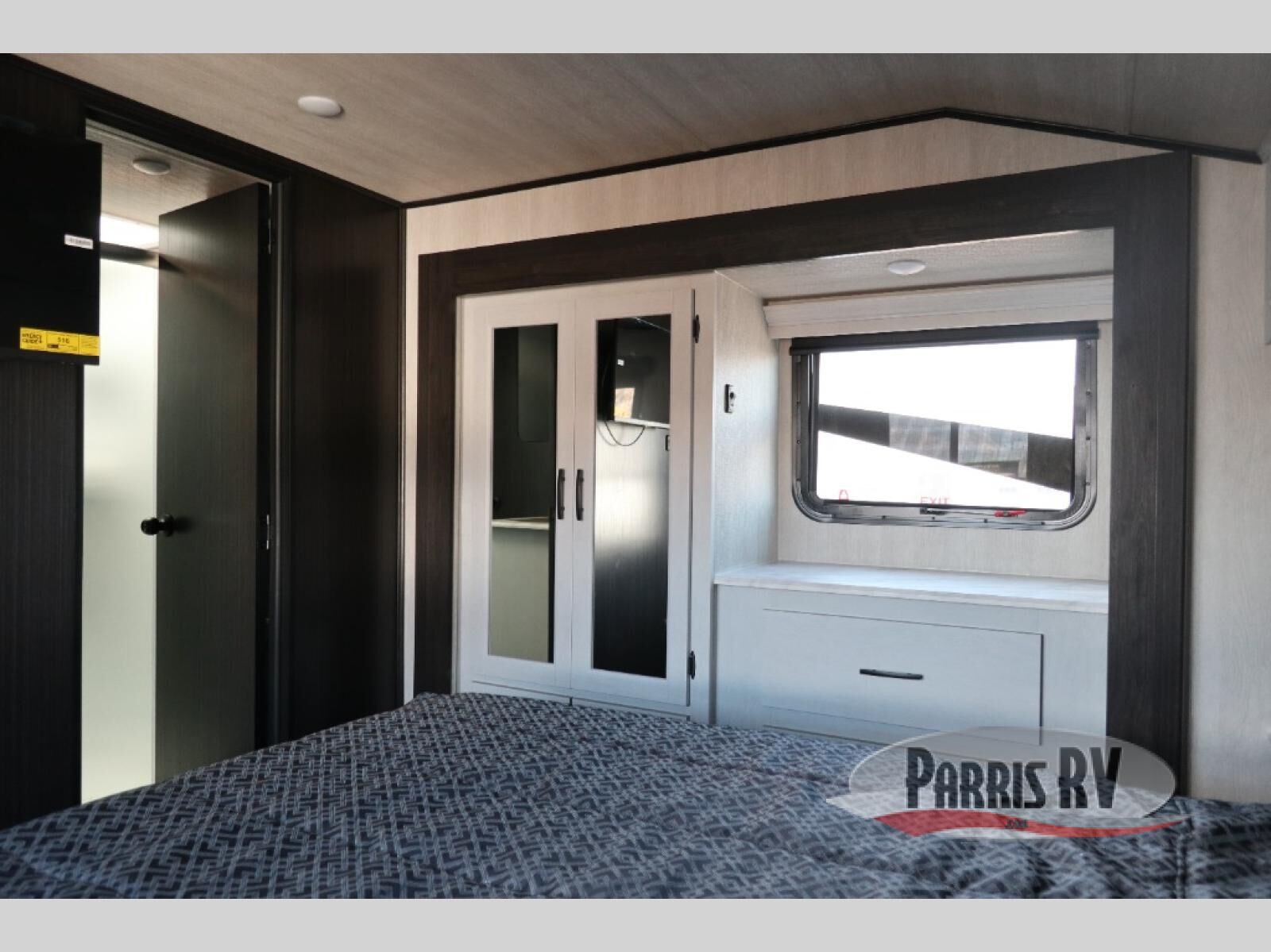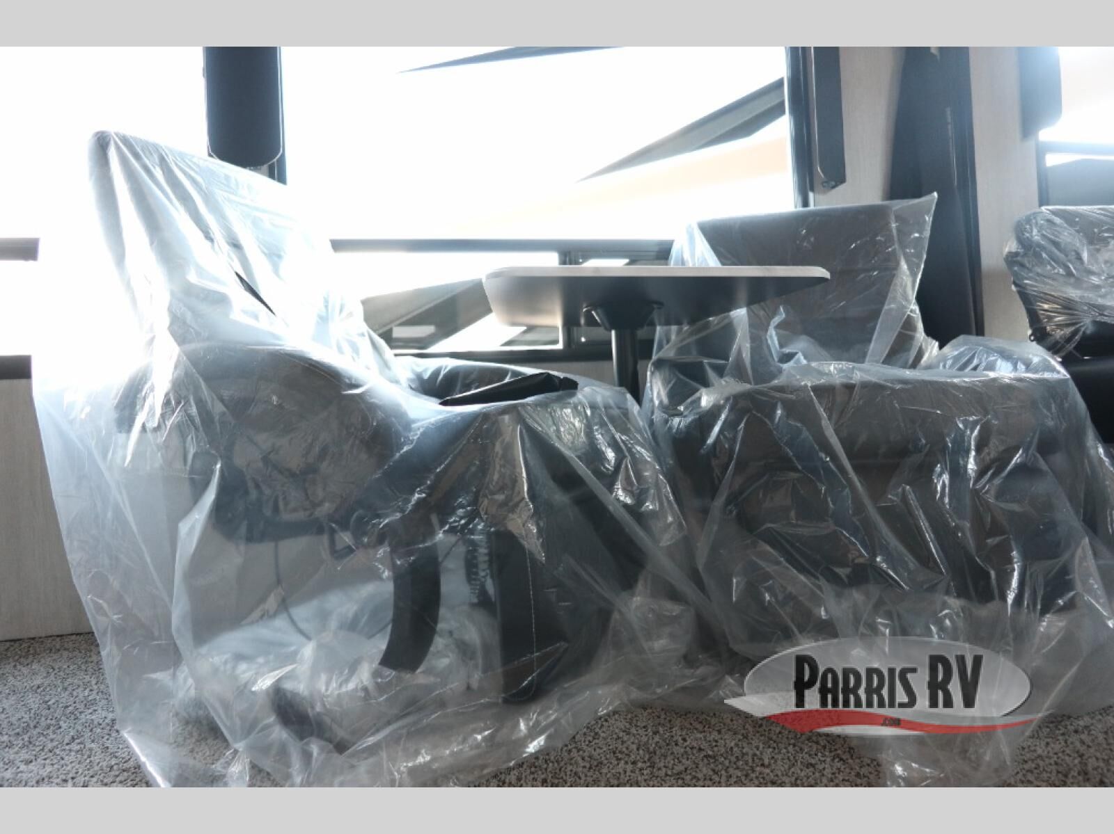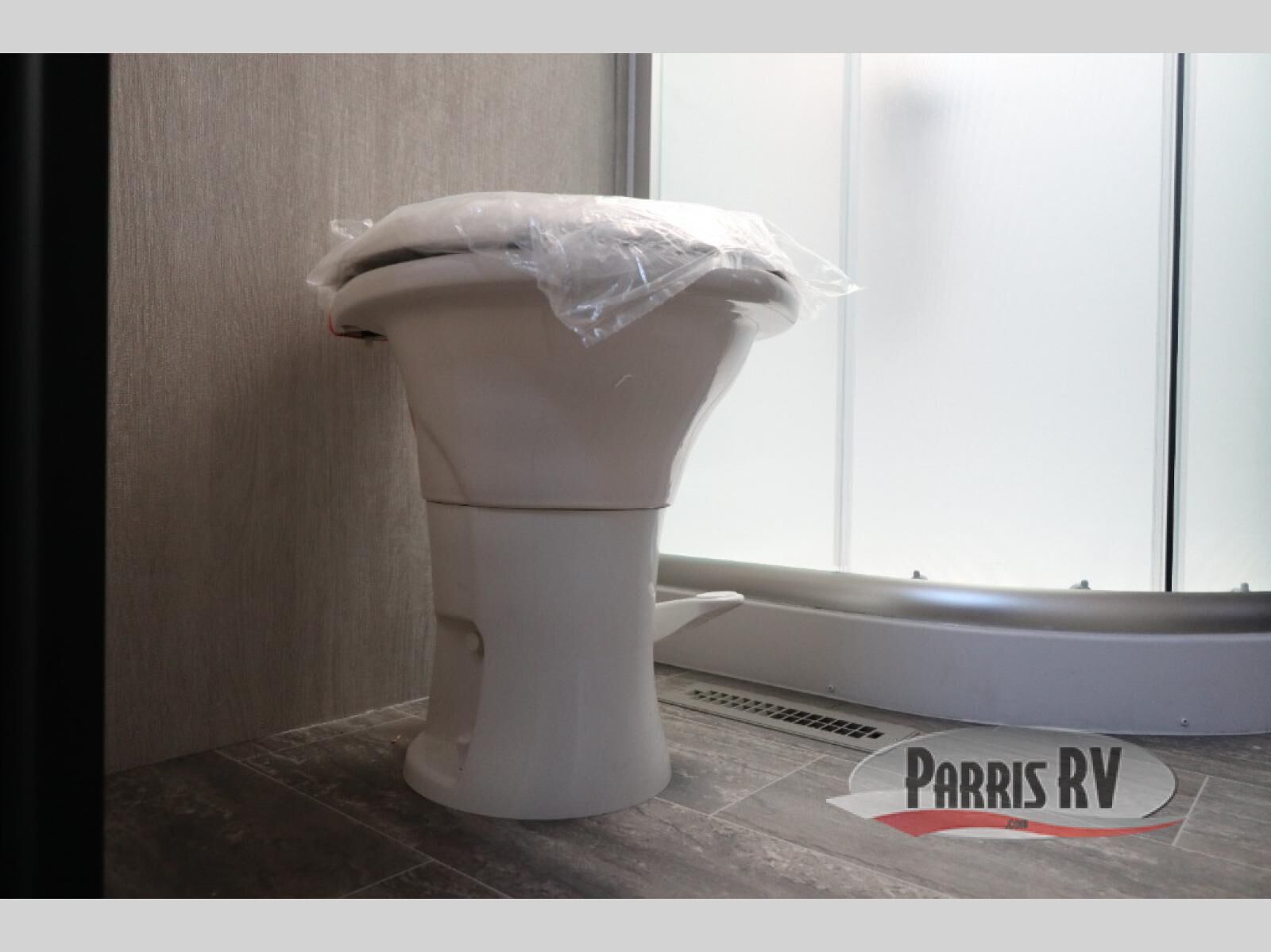 Wherever you decide to camp, this toy hauler is sure to bring fun. There is a front master bedroom with an RV king bed and a nightstand, plus a vanity/wardrobe slide that will provide more space. Your guests can sleep on the power queen bed after the toys are unloaded from the 16' 4" garage, and in the morning, they can relax on the power sofa bed under the top bed. The kitchen includes everything you need each day to prepare meals; a three burner cooktop, microwave oven, and an extra large double door refrigerator. You'll also appreciate the slam-door luggage compartments to store your larger camp gear, the 40 gallon fuel station to keep your toys ready to go, and the power awning with LED lights for an outdoor living space!