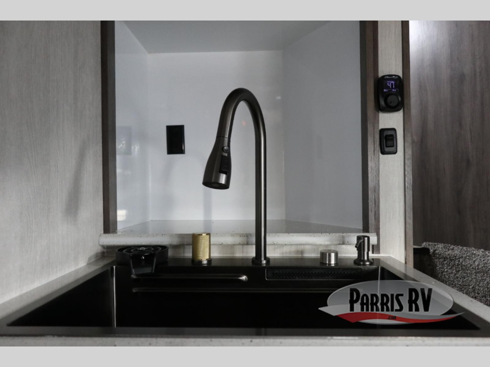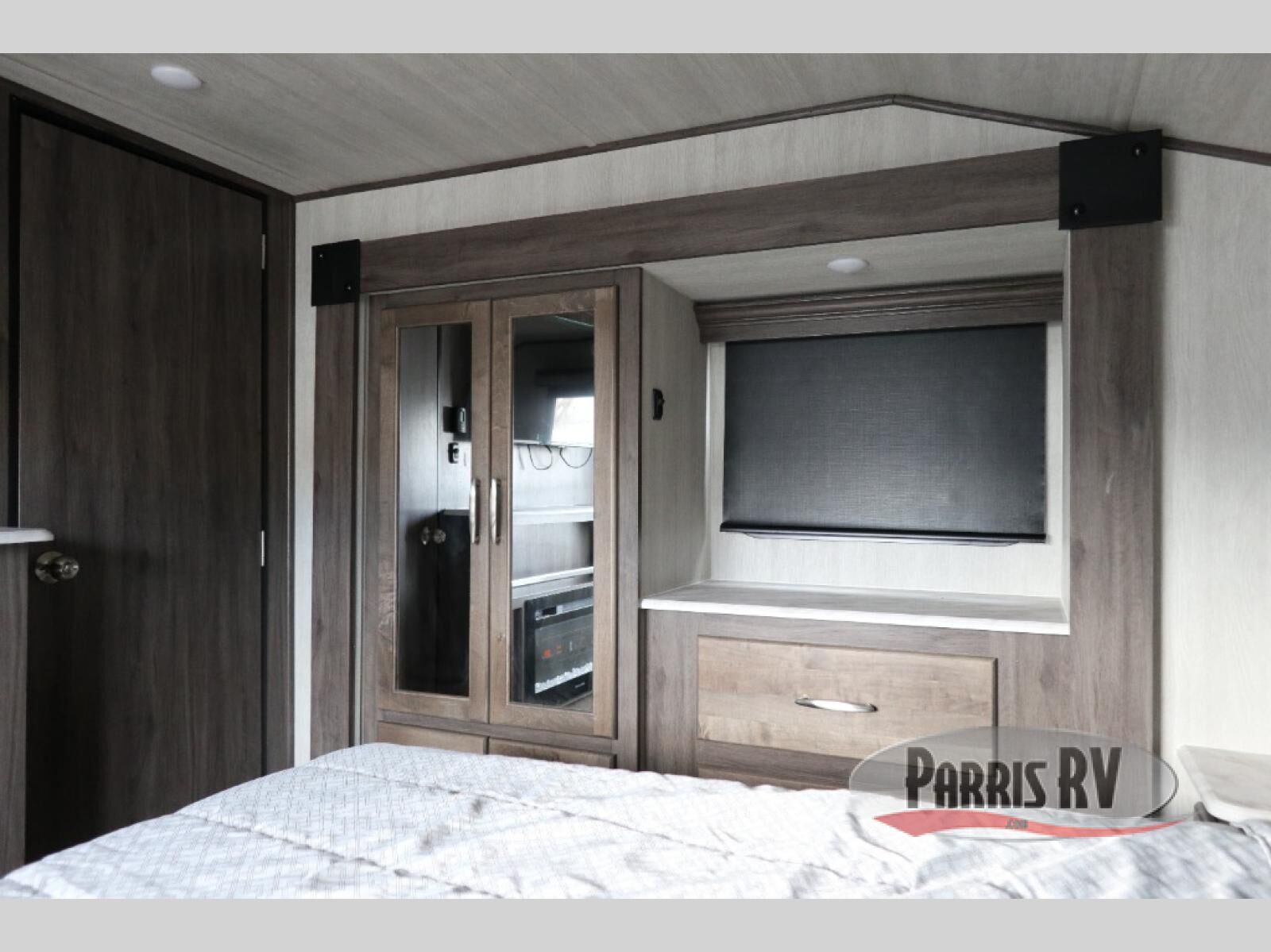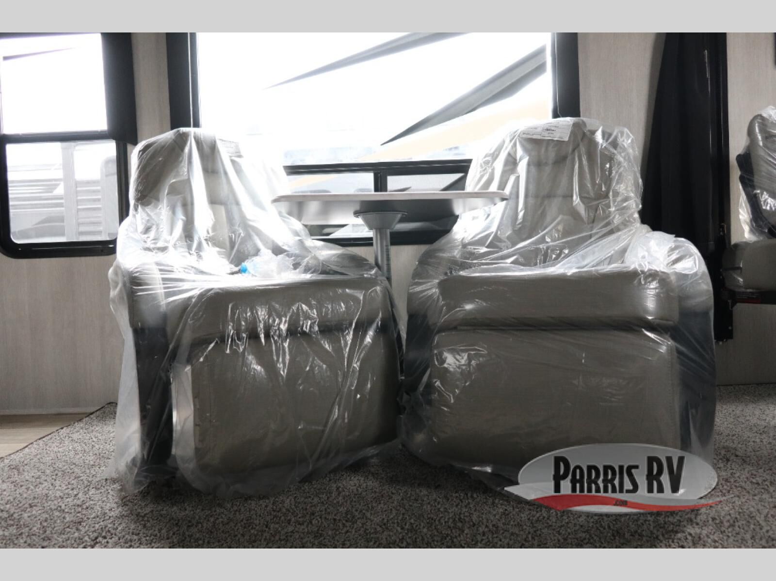This spacious toy hauler is ready for adventure when you are. You'll sleep soundly on the RV 'T' king memory foam bed in the front bedroom, and there is a slide out vanity/wardrobe to keep your things organized. A full kitchen includes a three burner cooktop, extra large residential microwave, and a 10 cu. ft. refrigerator for food storage. The power sofa bed and upper bunk provide guests a place to sleep, plus are dual Euro chairs with a table where you can enjoy your morning coffee at!