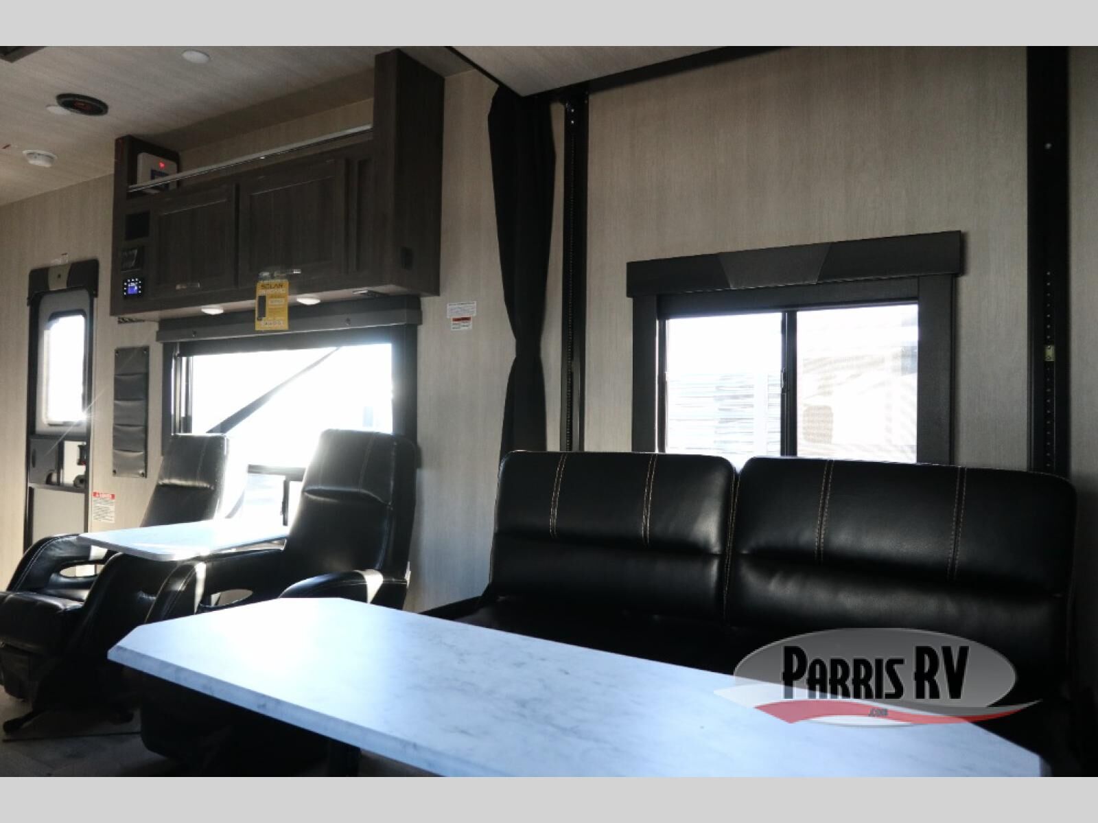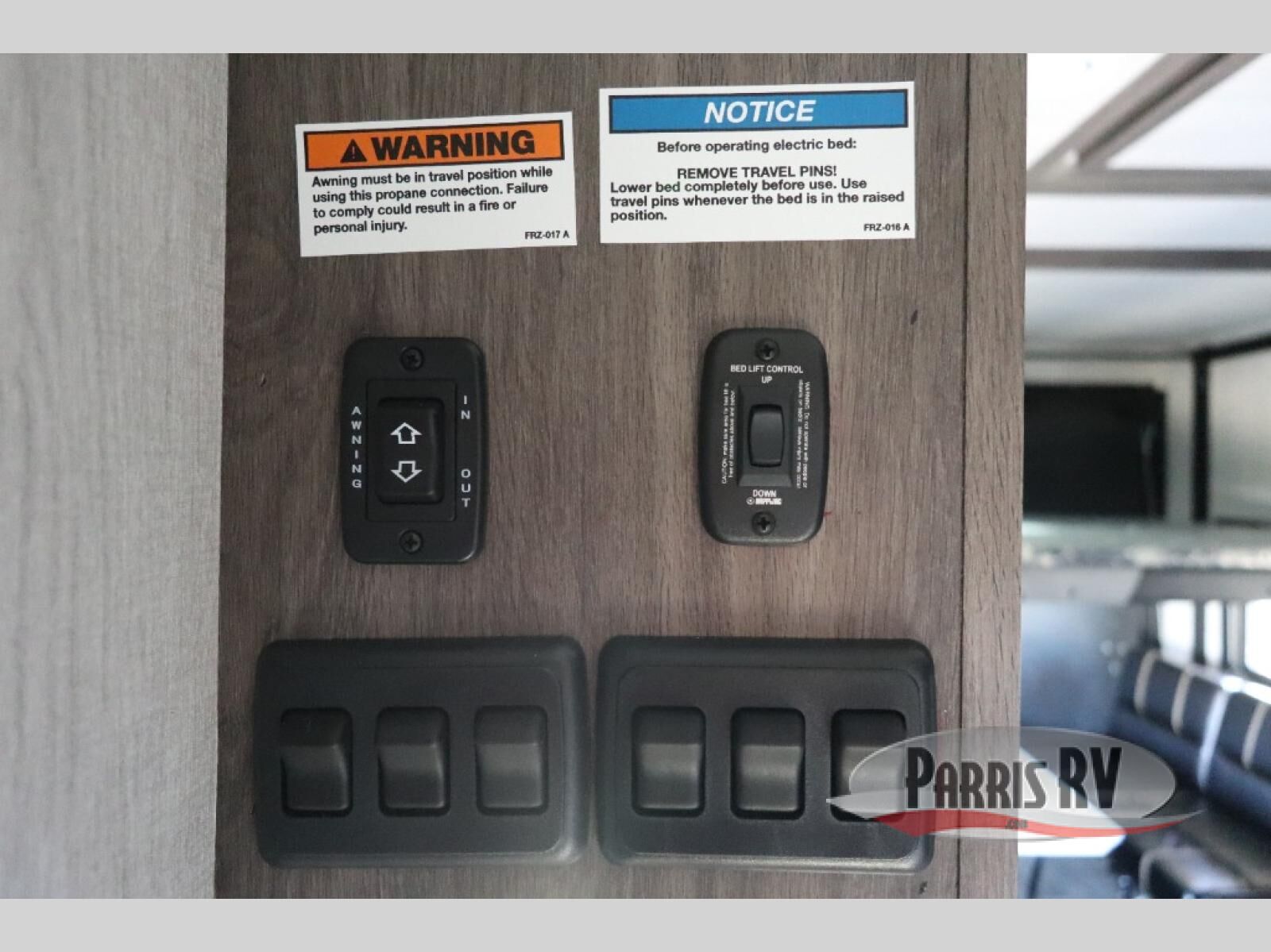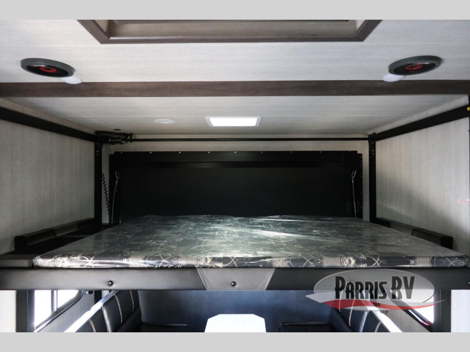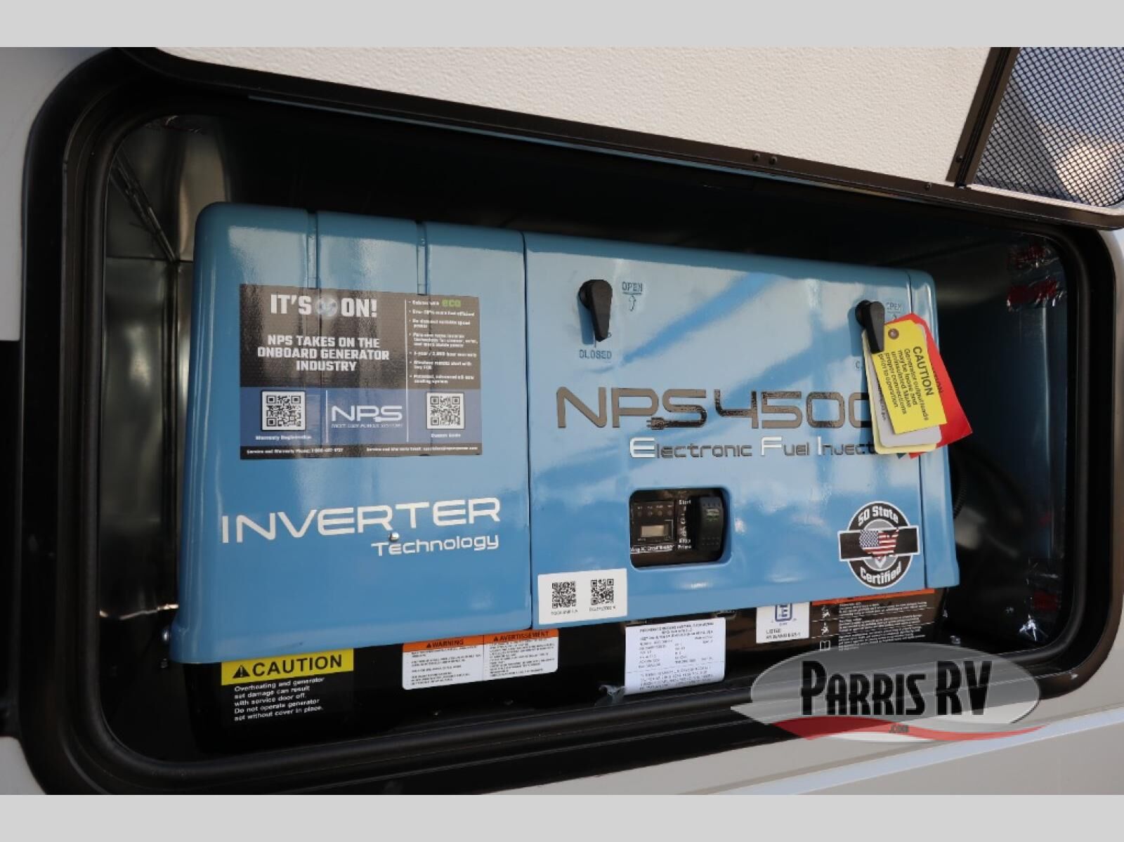 Head to your favorite trails and camp out with this toy hauler! In the rear, there are two swivel rockers to relax on, along with an opposing rear power dinette with a single bed for your guests. Keep your electronics charged with the 12V USB charger and stay connected while off grid with the 200W solar panel. Prepare your best home cooked meals with the three burner cooktop and 10 cu. ft. 12V refrigerator then lay down on the RV queen bed in the front private bedroom after dinner. You can also stay clean with the radius shower in the full bathroom!