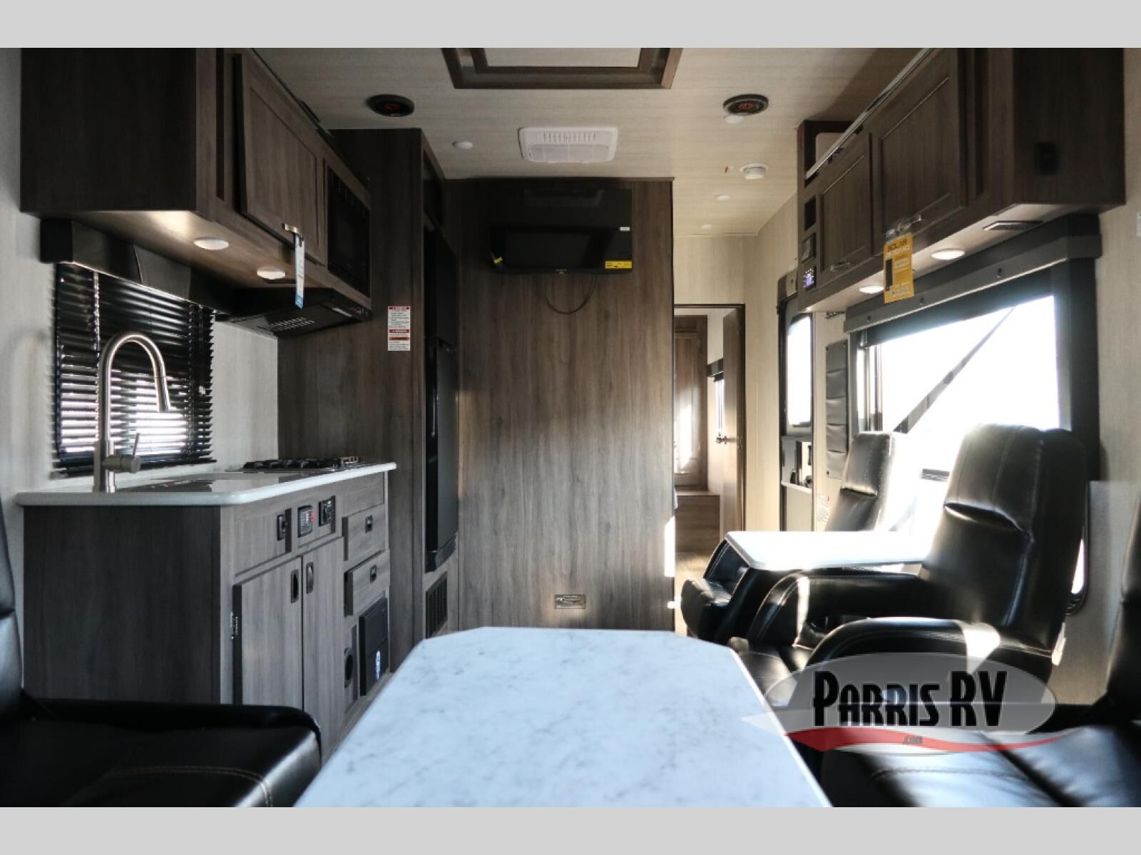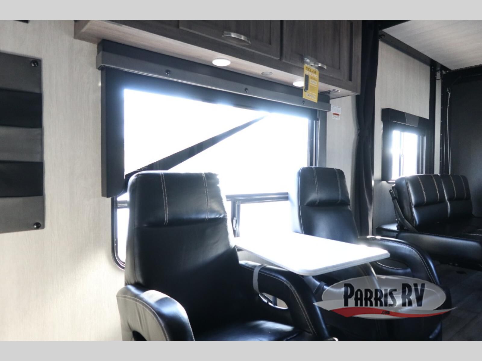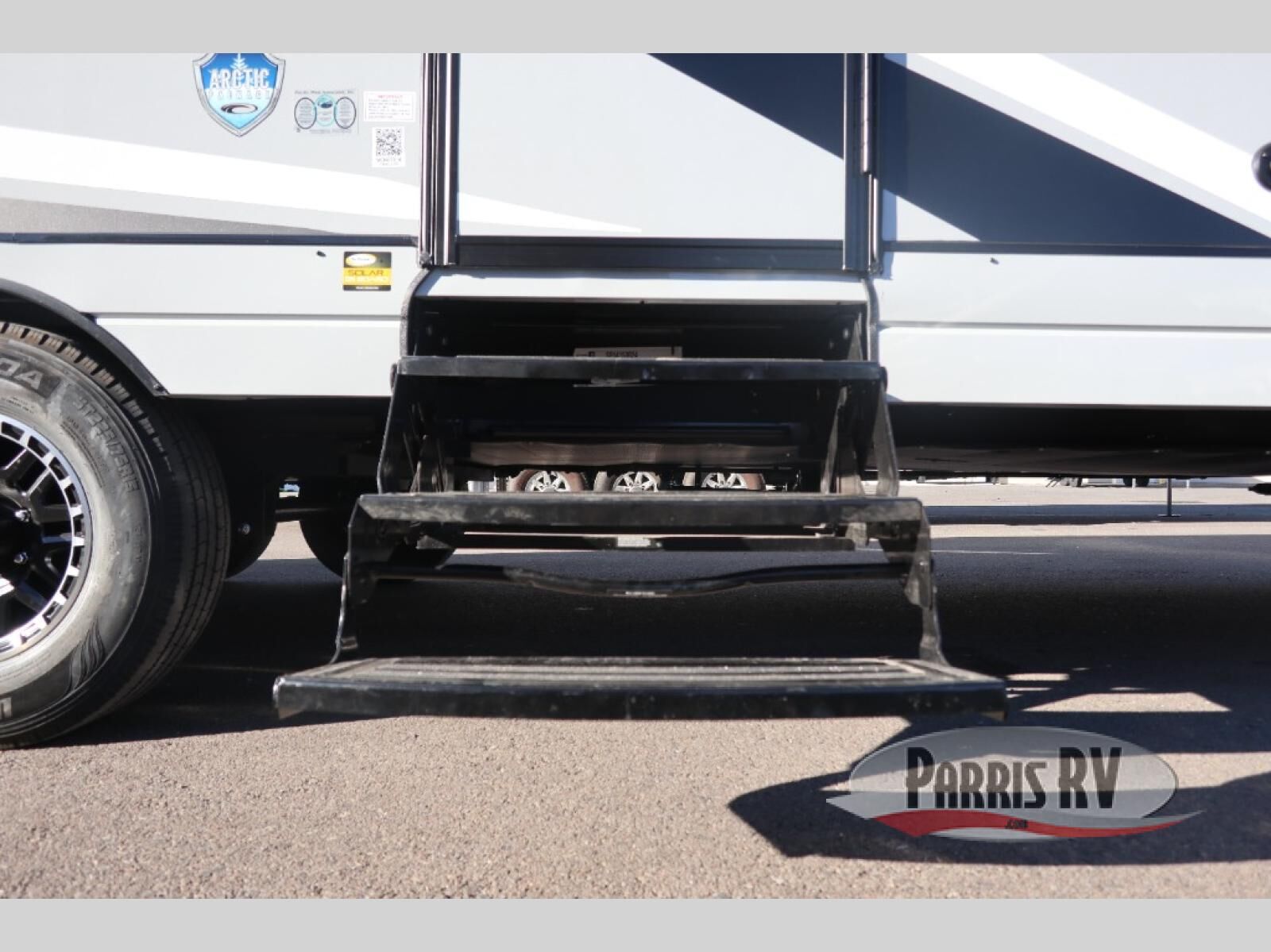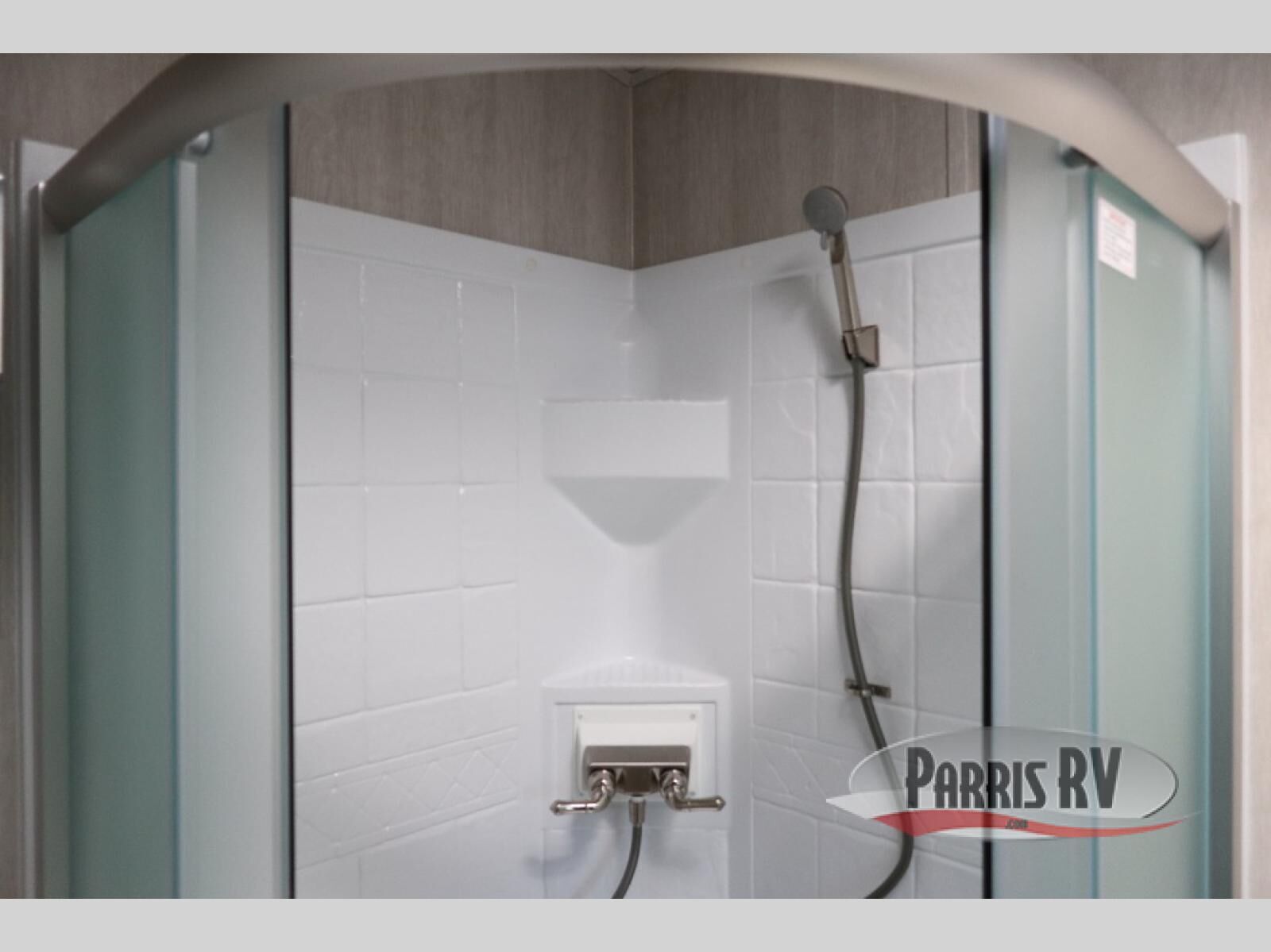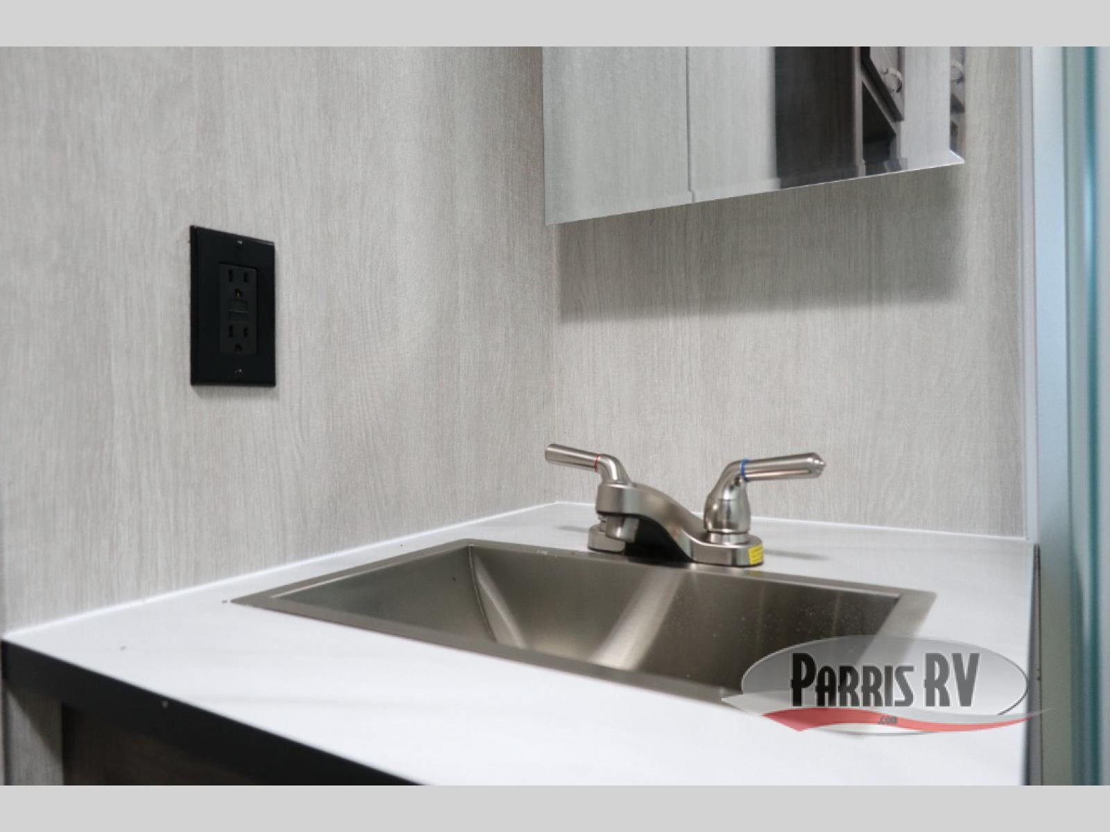Head to your favorite trails and camp out with this toy hauler! In the rear, there are two swivel rockers to relax on, along with an opposing rear power dinette with a single bed for your guests. Keep your electronics charged with the 12V USB charger and stay connected while off grid with the 200W solar panel. Prepare your best home cooked meals with the three burner cooktop and 10 cu. ft. 12V refrigerator then lay down on the RV queen bed in the front private bedroom after dinner. You can also stay clean with the radius shower in the full bathroom!