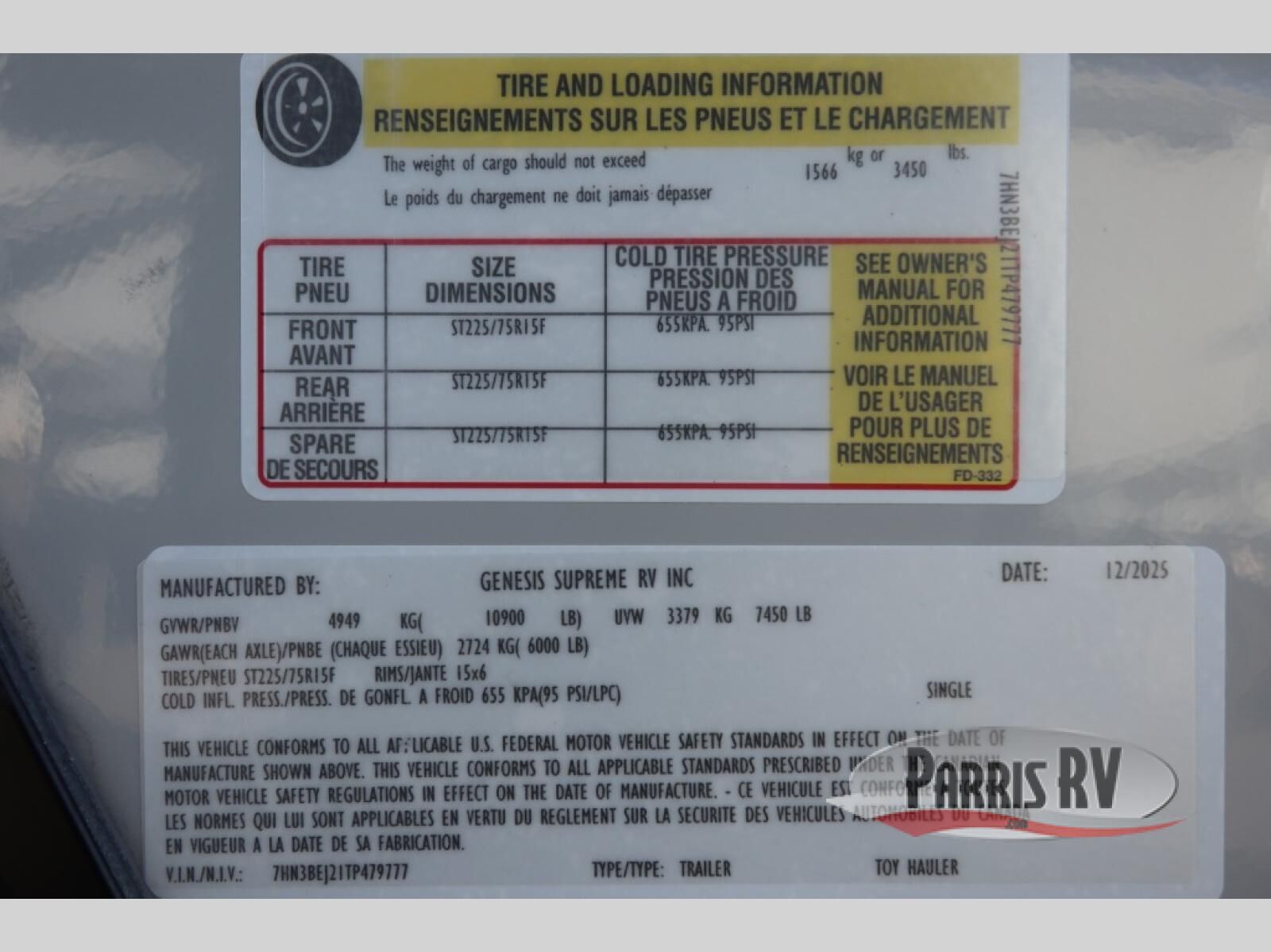 Genesis Supreme Vortex toy hauler V2515FSXL highlights: