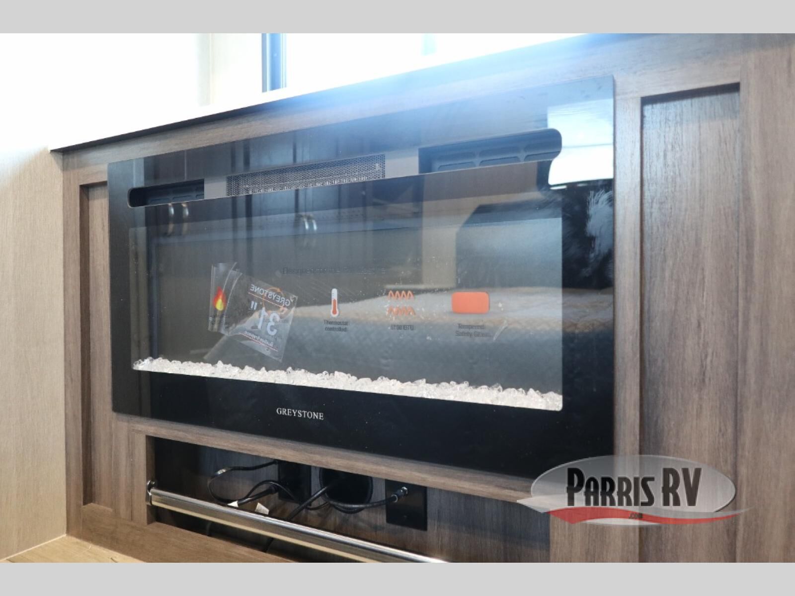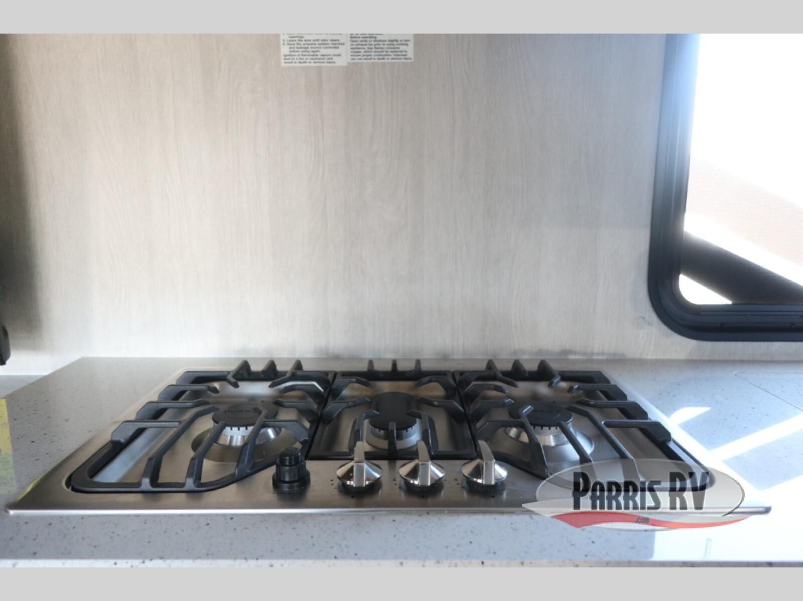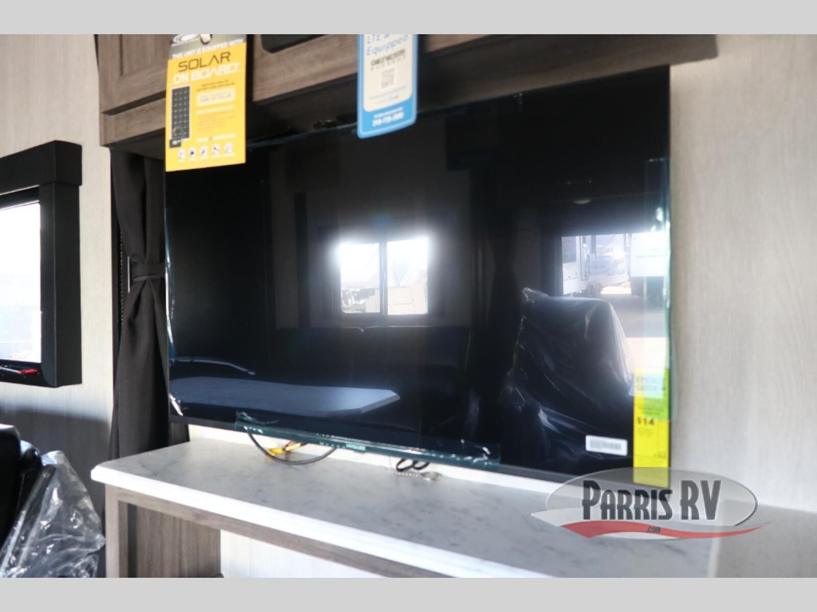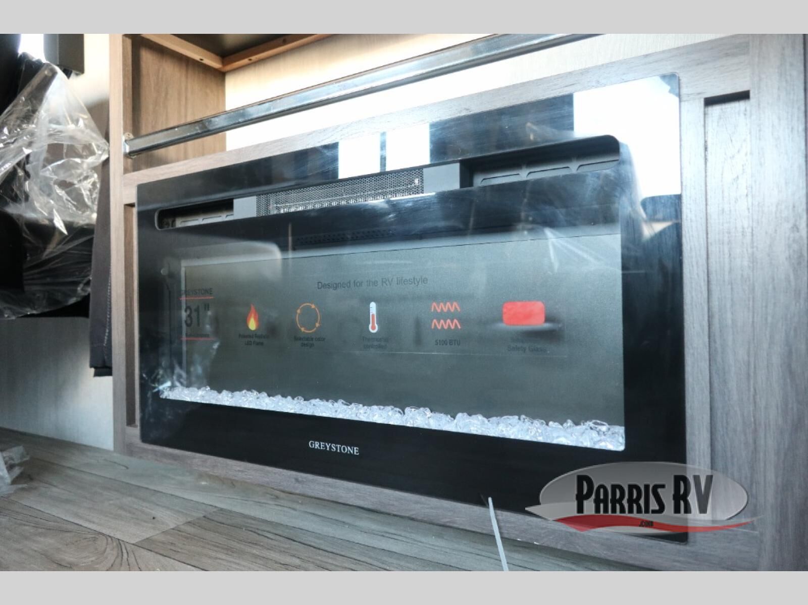 Head for the hills in this toy hauler that can sleep six each night. You'll enjoy the front master bedroom with a RV T-king bed and dual wardrobes, and your guests can sleep on the opposing rear power dinette with a single bed above. There is a full kitchen, complete with a three burner cooktop, a microwave oven, plus a 10 cu. ft. 12V refrigerator to store cold items. You'll also find a 40 gallon fuel station, new modern graphics, and a 102" wide body design to fit your favorite toys!