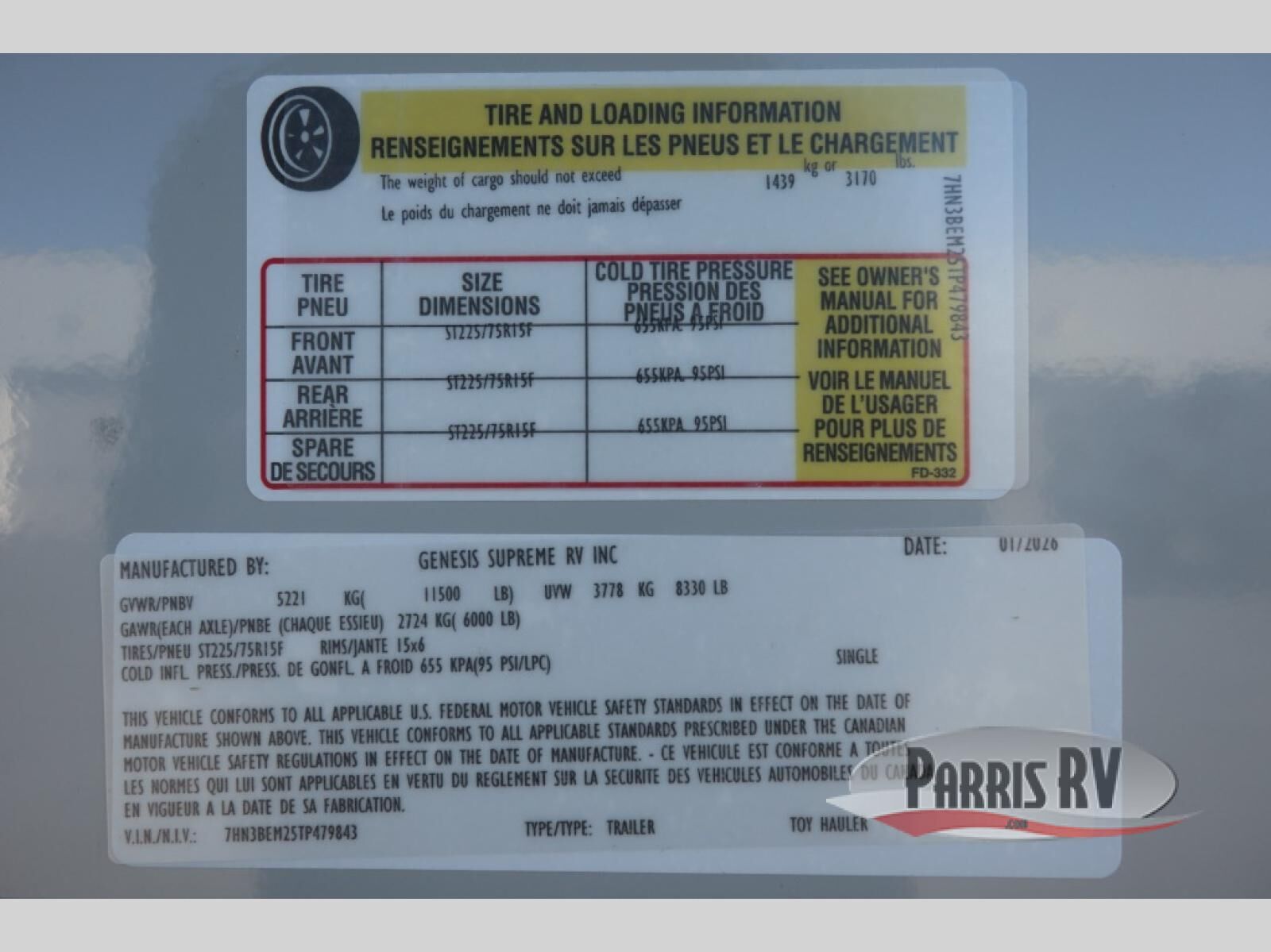 Genesis Supreme toy hauler V2915CRXL highlights: