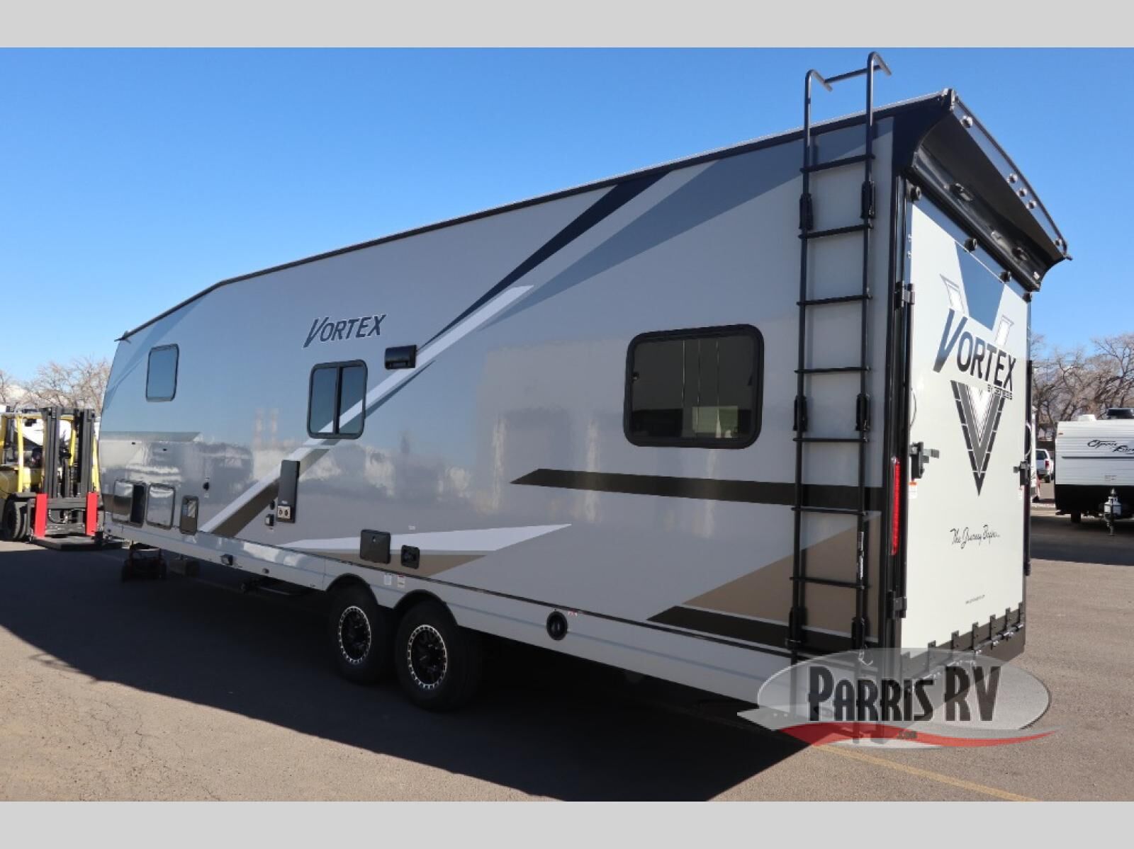 Get ready for adventure with the Vortex toy haulers by Genesis Supreme. The innovative floorplans provide you with everything you need for memorable trips. These models can withstand the extreme heat of the desert, while still keeping you comfortable inside. There are kitchen and bath amenities inside, along with ample storage space for your belongings. With a wide variety of floorplans to choose from, you're sure to find the Vortex that fits your needs best!