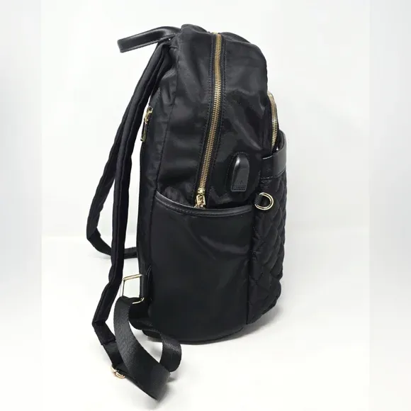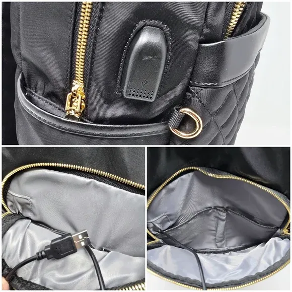 VenmoNordace Ellie Daily Backpack Quilted Black USB Charging Port Black/ Gold Tone Hardware