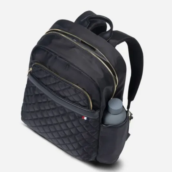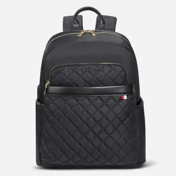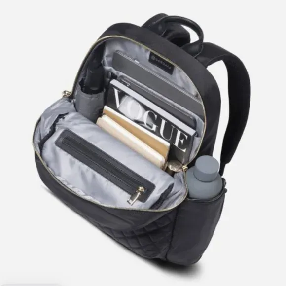 Nordace Ellie quilted daily backpack in black with gold-tone hardware. Like new condition.