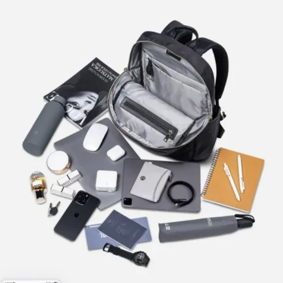 Key Features & Specifications: Organization: More than 10 specialized, independent compartments for devices and daily essentials Capacity: Suitable for daily use, fitting laptops/tablets, notebooks, and personal items Functionality: Includes a built-in USB charging port and water-resistant fabric Design: Known for being lightweight, stylish, and comfortable to carry, with a design suited for women, students, and professionals Color/Style: Available in black as well as other colors like blue, dark green, and red Versatility: Ideal for commuting, work, and travel The backpack is designed to be roomy enough for daily essentials without feeling too large