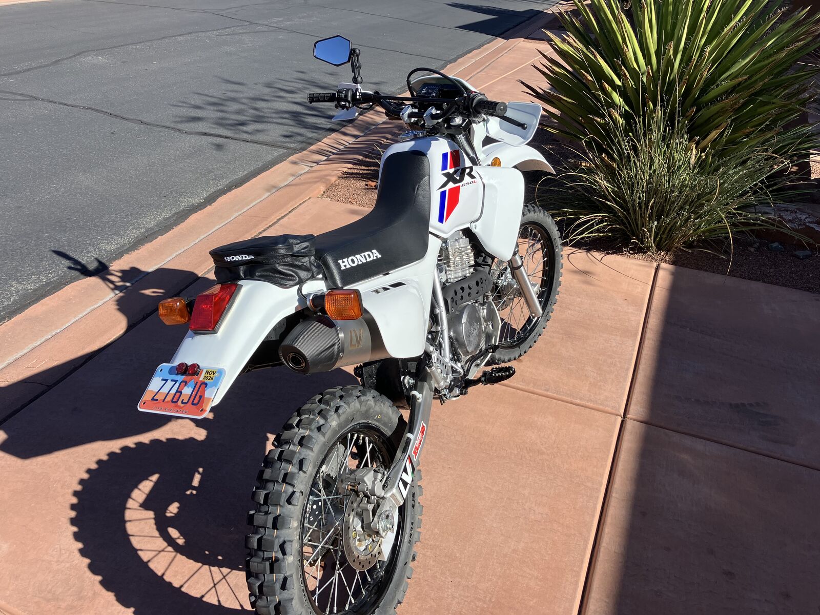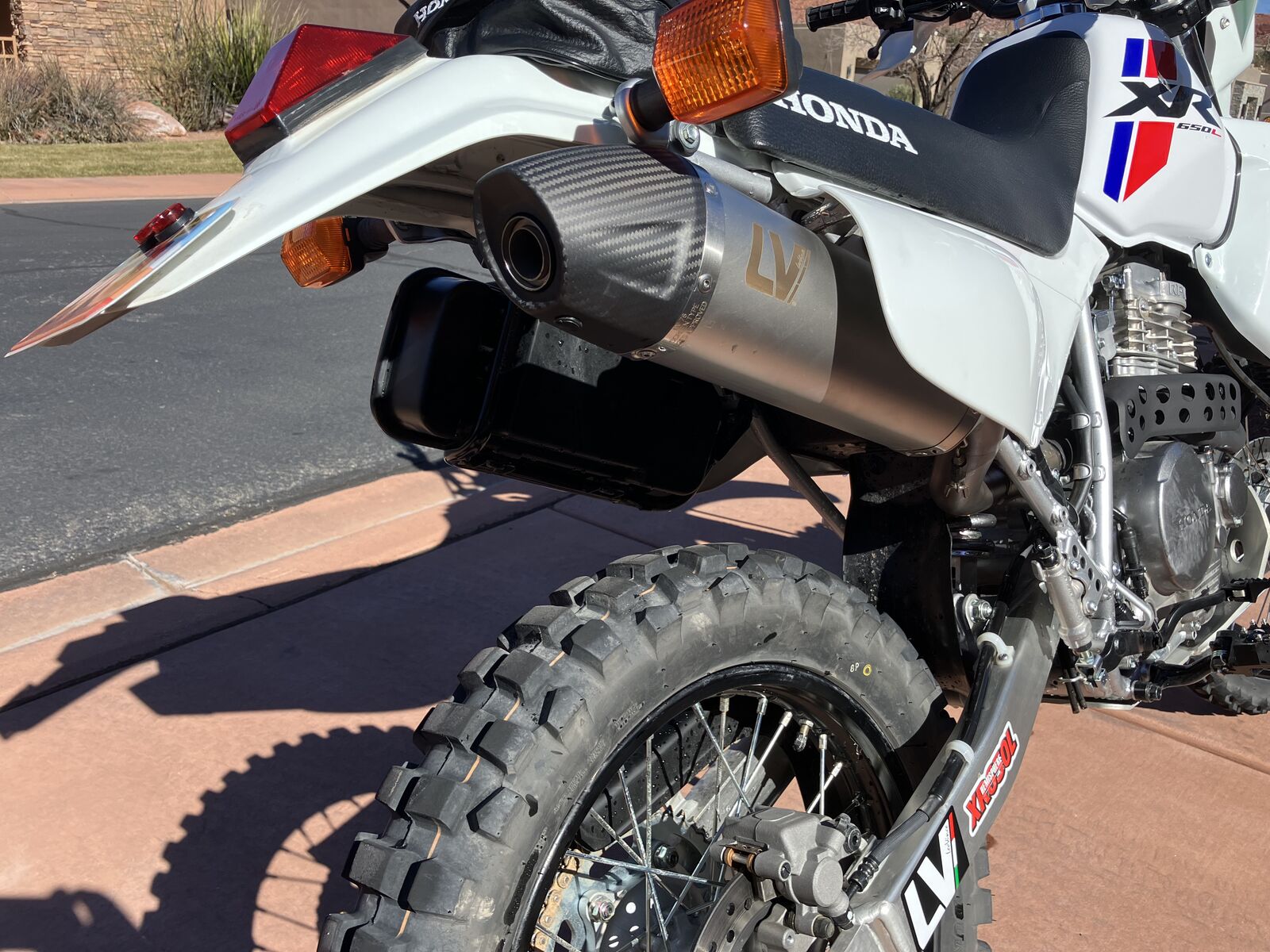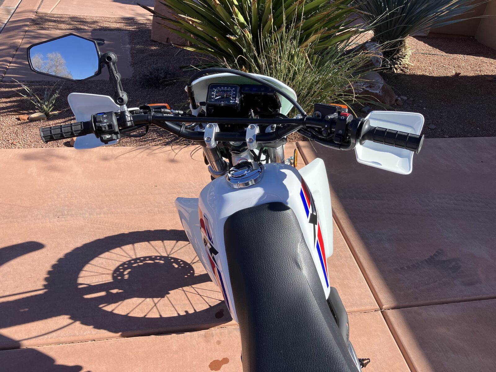 Many extras: No smog, New 606 Dunlop tires, aluminum skid plate, wide foot pegs, new 15 tooth primary gear, handlebar riser, LeoVince exhaust
