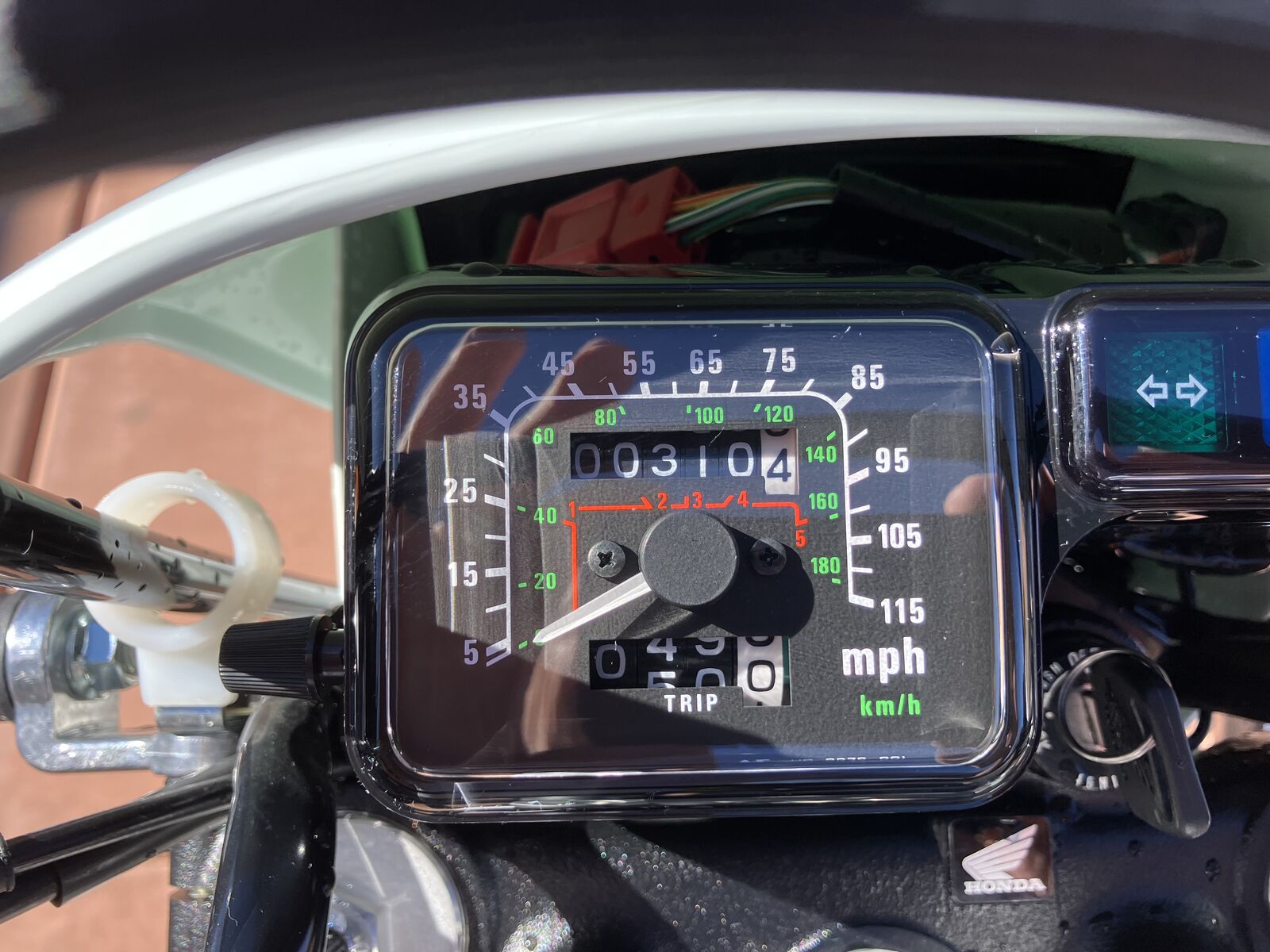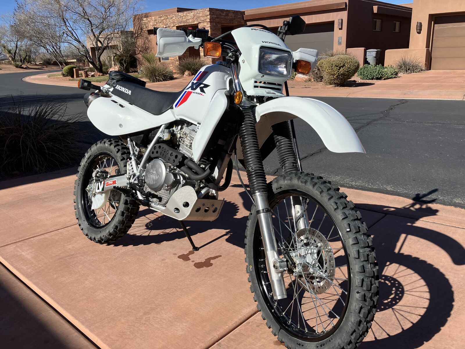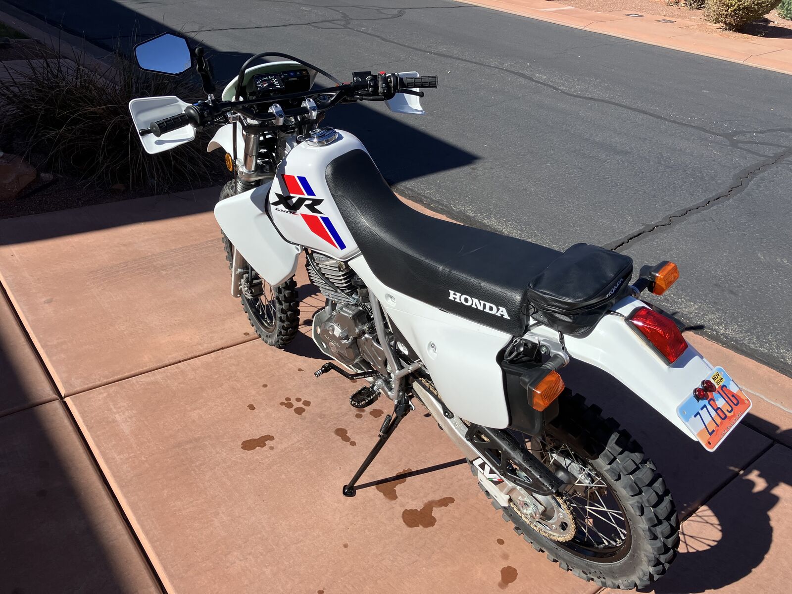 Many extras: No smog, New 606 Dunlop tires, aluminum skid plate, wide foot pegs, new 15 tooth primary gear, handlebar riser, LeoVince exhaust
