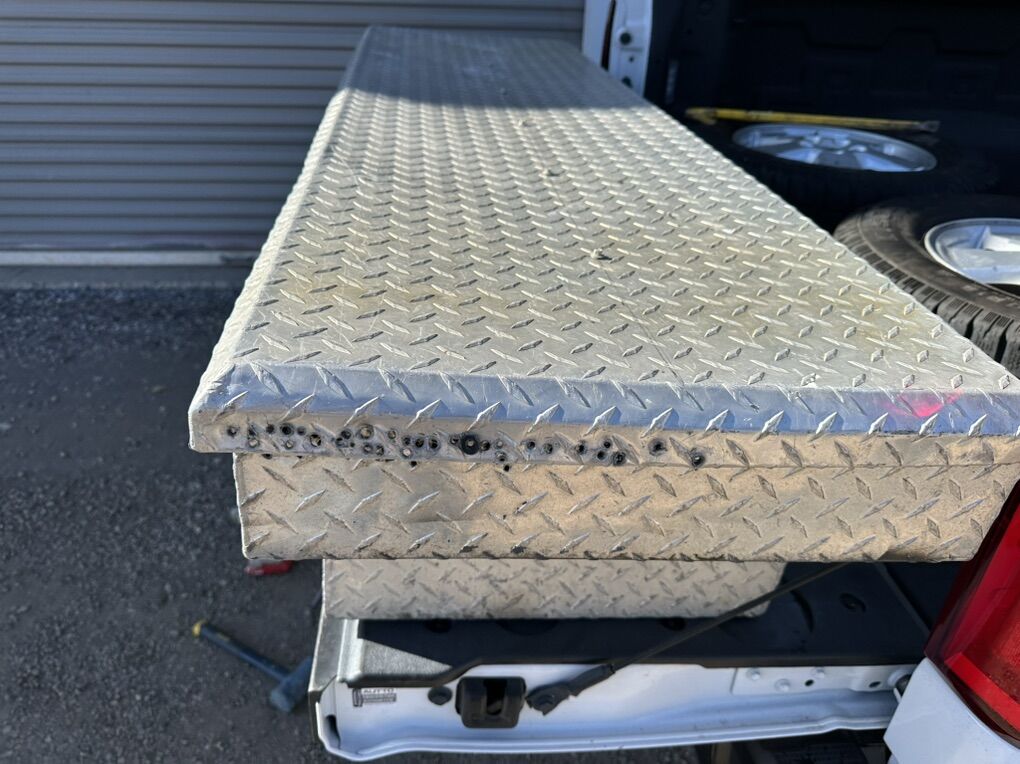 Used truck bed tool box. New lock with two keys. Has some holes in the top sides but doesn’t leak. $$125 or best offer. 56 inches wide at base 68.5 inches wide top 13 inches tall