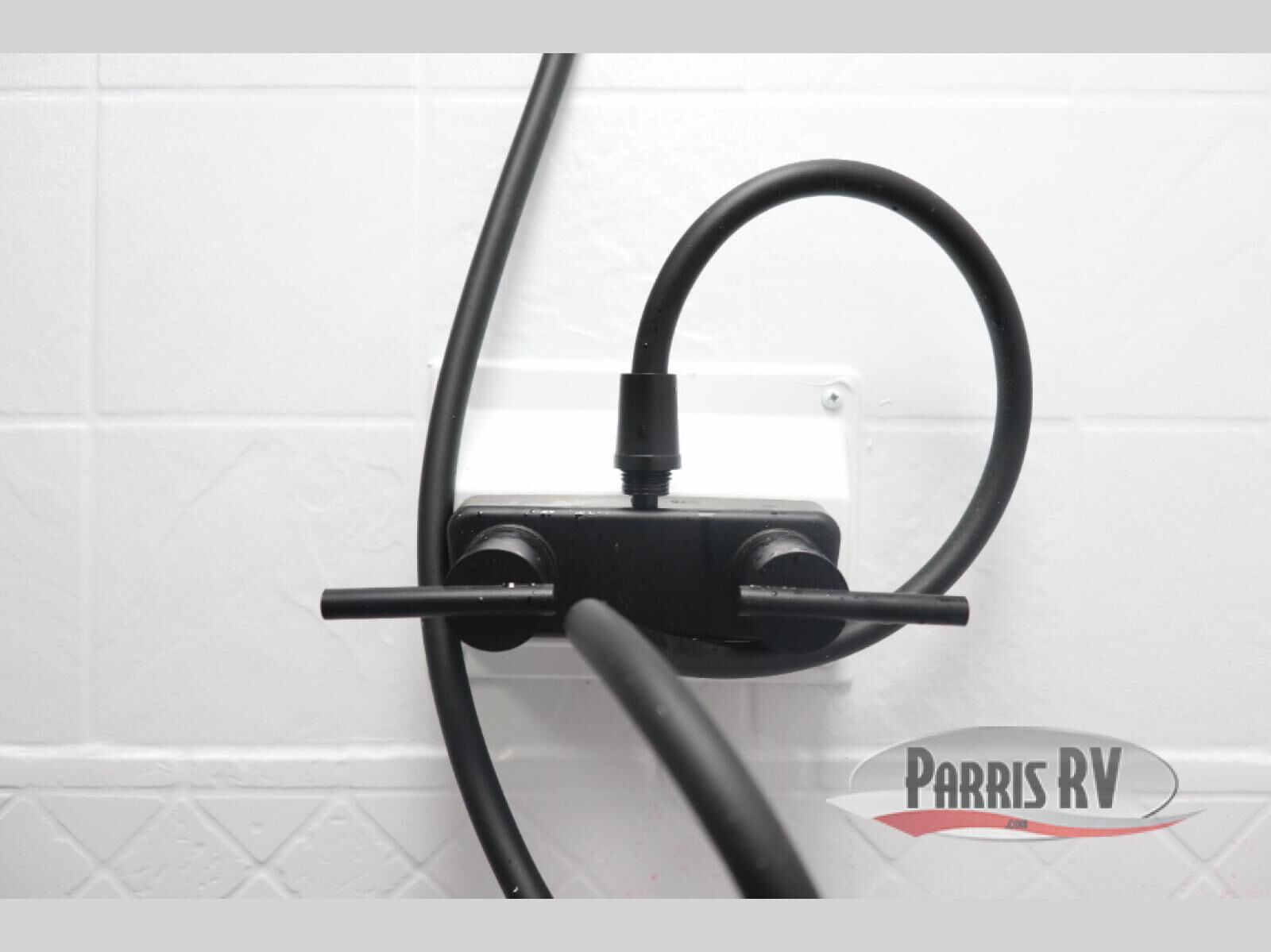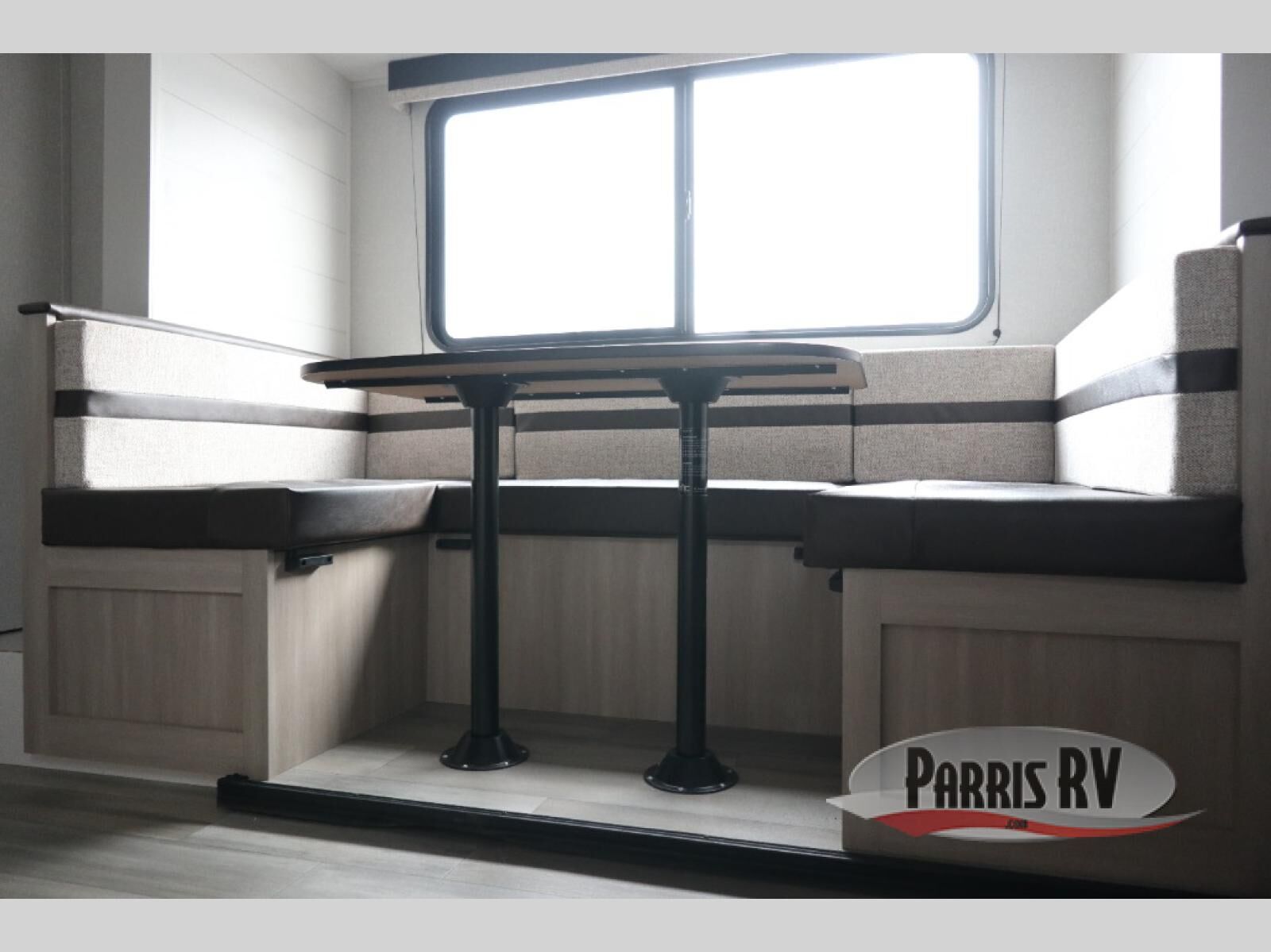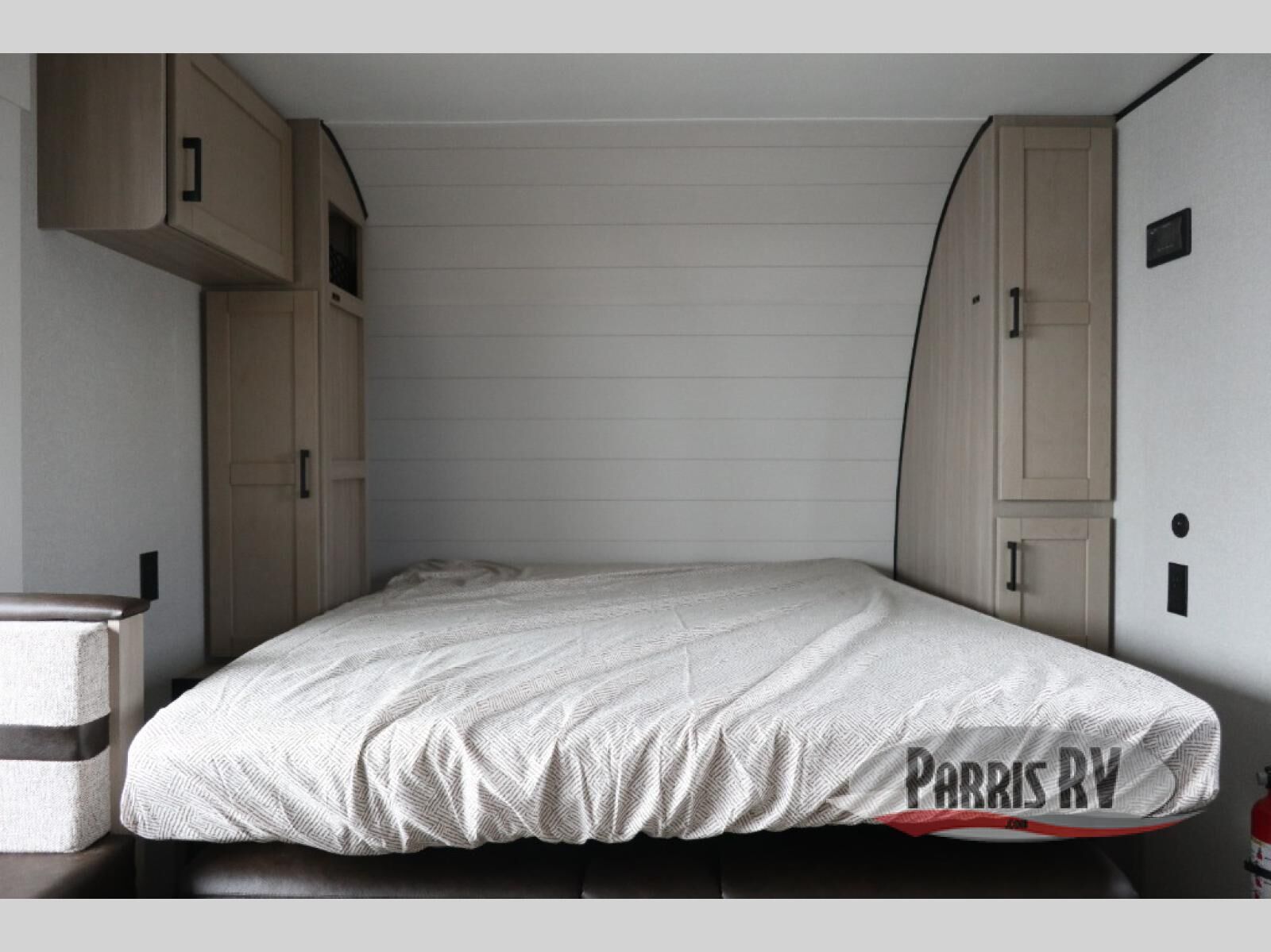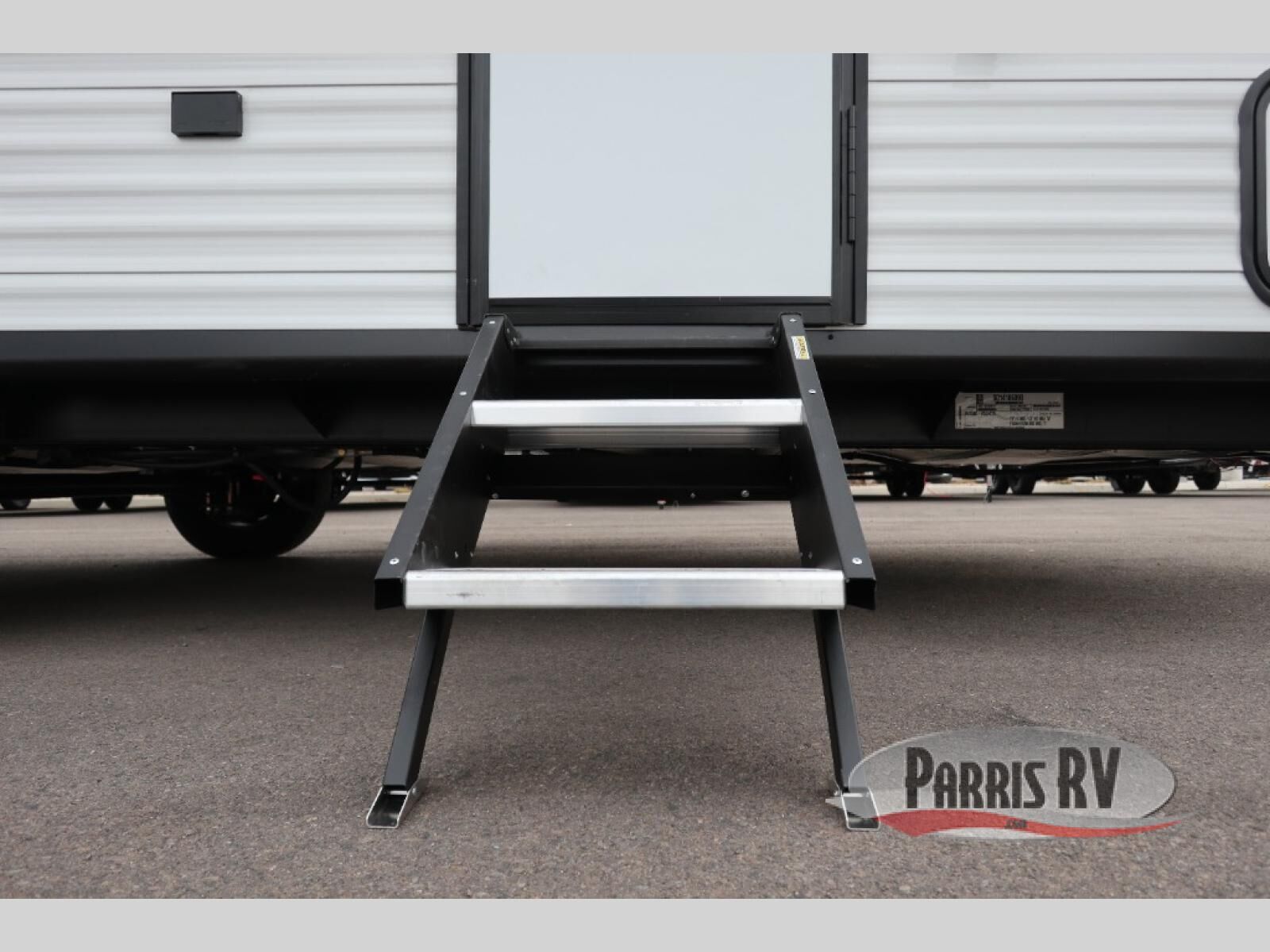 Camping trips are made easy in this travel trailer with double-size bunk beds for guests or little ones. There is a front Murphy bed that will provide you with more space during the day when you put it away to reveal the jack knife sofa. The rear corner full bath includes a foot-flush toilet, a 30" x 36" shower and a sink, so you won't have to leave the camper in the middle of the night. A two-burner cooktop and microwave oven will let you make meals each day, and you can dine around the U-shaped dinette, which is also within a slide out for more space!