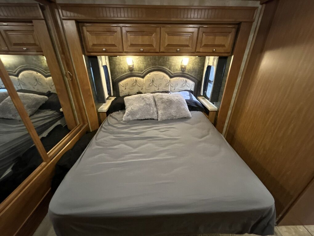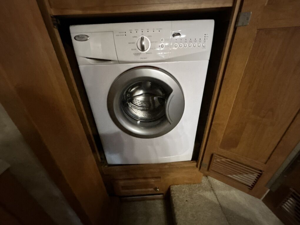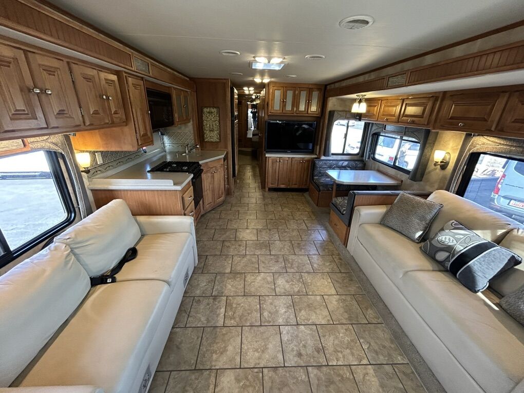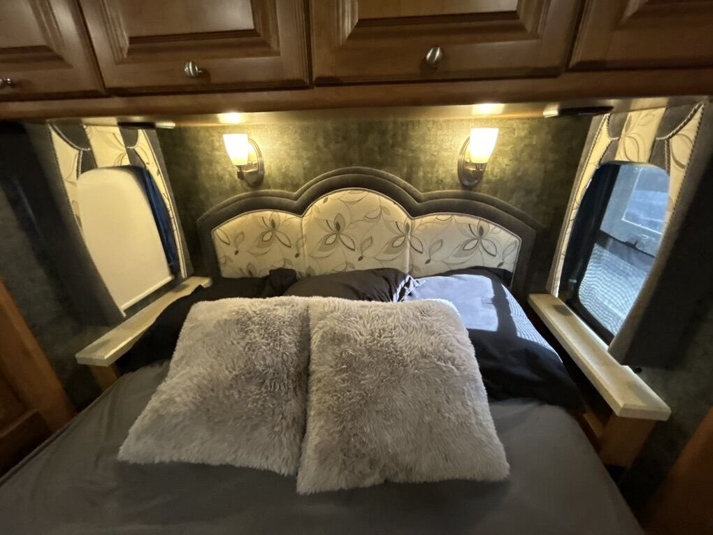 Beautiful full body paint in great shape with a middle bunk for the kiddos ONLY 50,393 miles One touch auto level Washer and dryer Onan onboard generator with 351hrs Slide toppers are in great shape Back up camera with side cameras Sleeps up to 10 comfortably