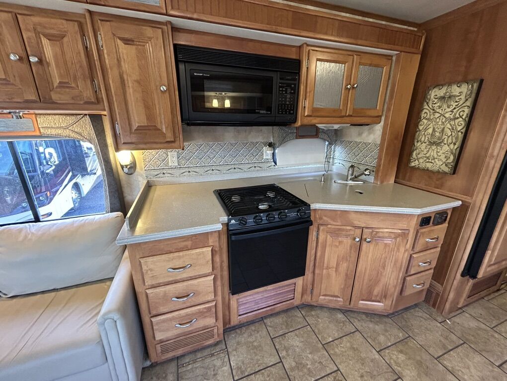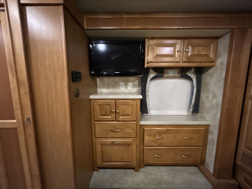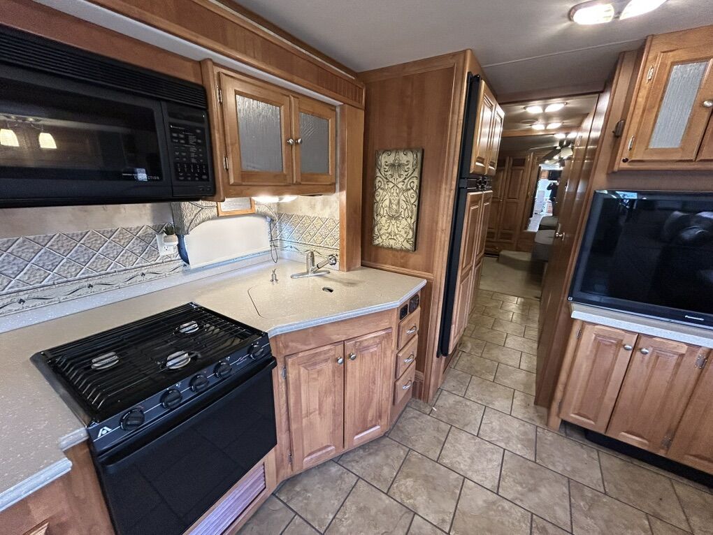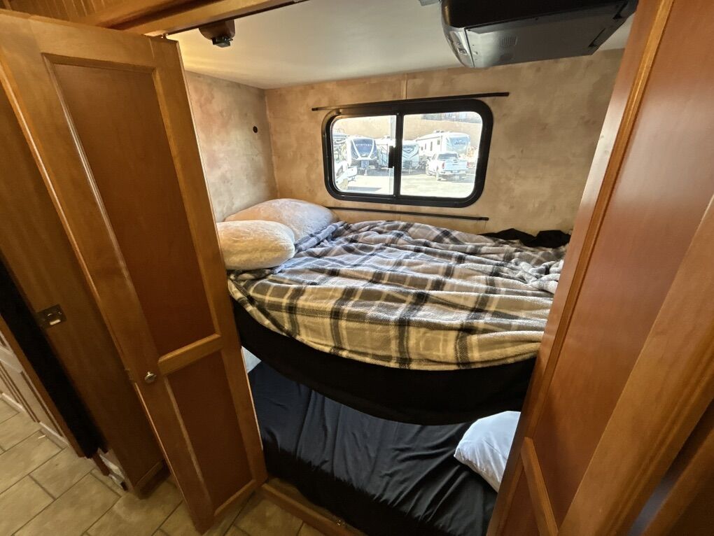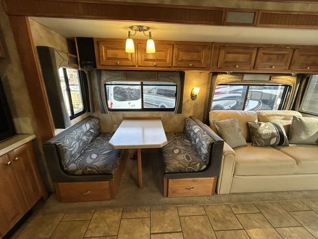 Beautiful full body paint in great shape with a middle bunk for the kiddos ONLY 50,393 miles One touch auto level Washer and dryer Onan onboard generator with 351hrs Slide toppers are in great shape Back up camera with side cameras Sleeps up to 10 comfortably
