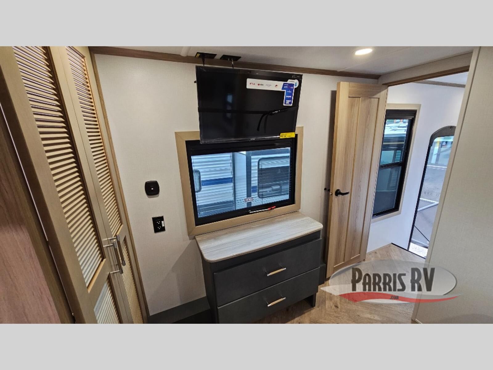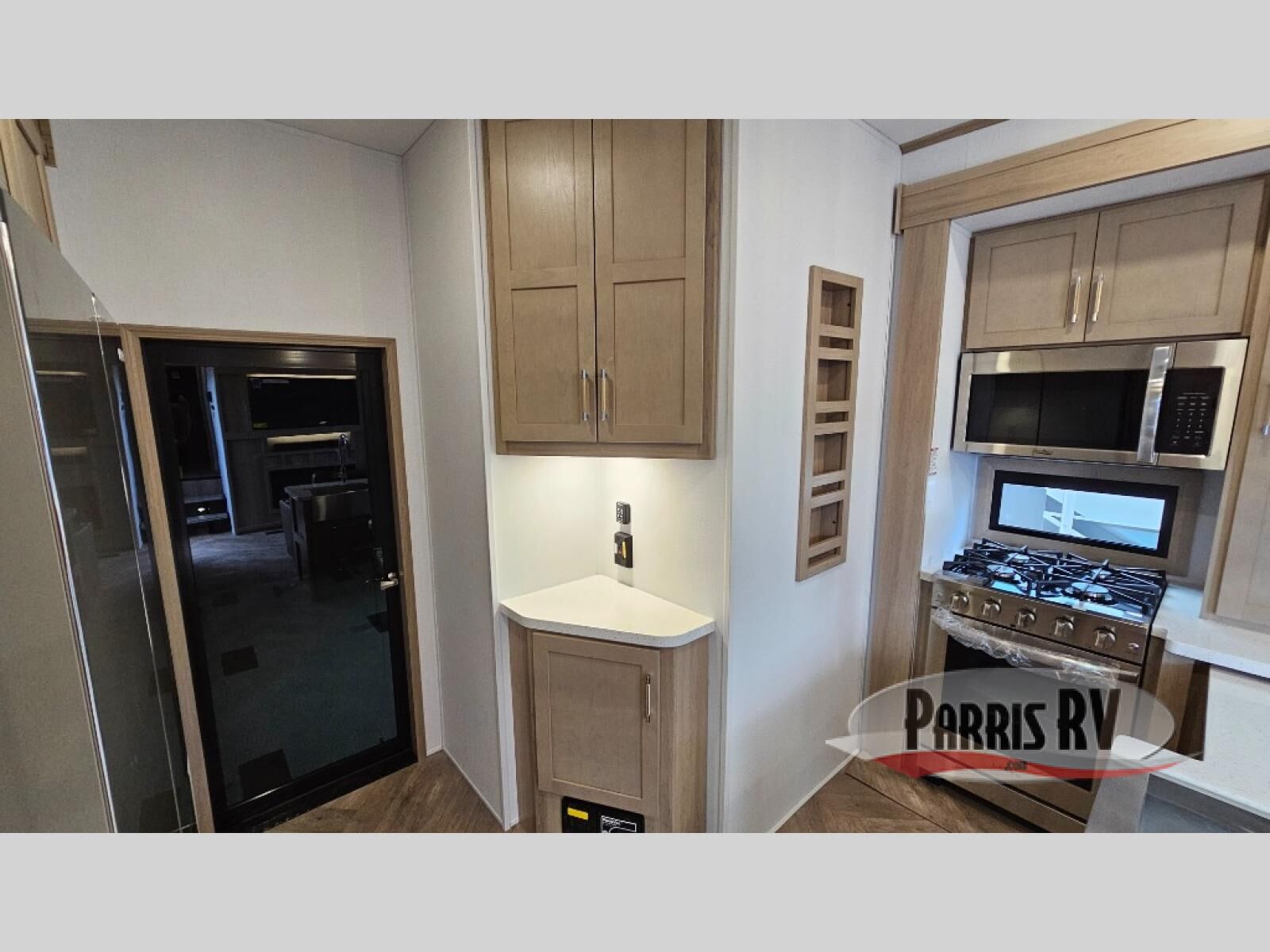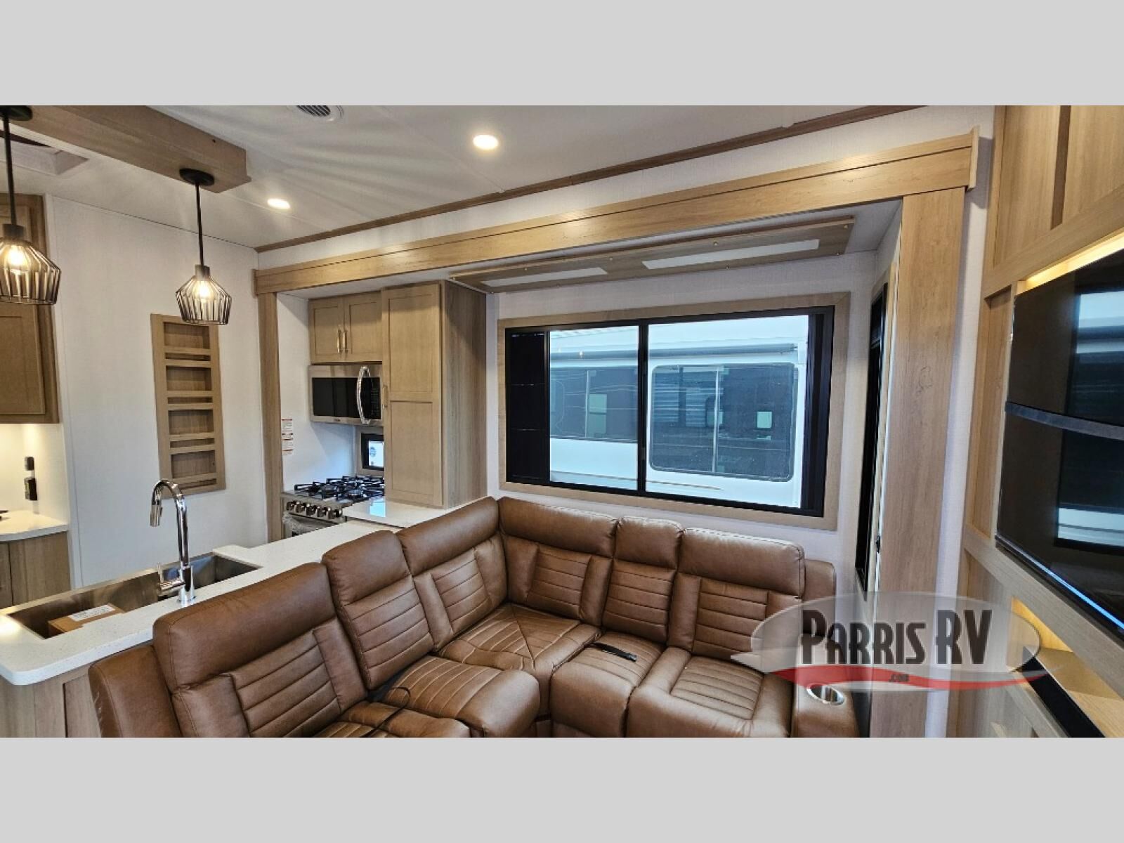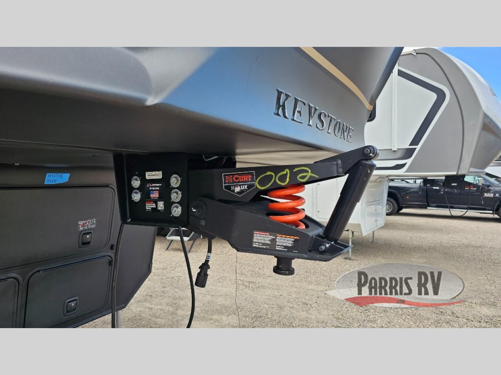 Experience a breath of fresh air with one of these Keystone RV Raptor fifth wheel toy haulers! Their rugged construction consists of a one-piece Alpha Super Flex TPO roof membrane, Dyna Span floor decking, and 5,000 lb. frame-welded tie- downs to keep your toys in place as you travel. Some unexpected conveniences you will appreciate include an Omni-Chill A/C system to keep you cool on those hot summer days, a Furrion backup camera, MaxTurnTM technology with a HeluxTM pin box, and a Generation 3 iN-Command smart automation system with Global Connect to make life easier. There is also designer style vinyl flooring throughout, along with hardwood ceiling treatment with LED accent lighting, beach wood and white cabinetry, and many more interior comforts!