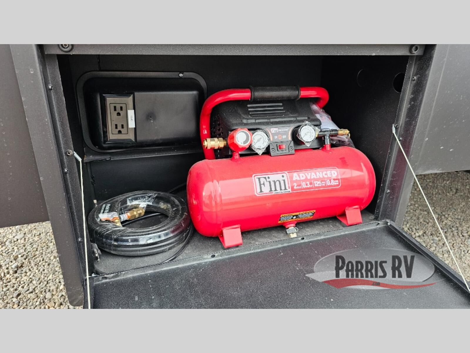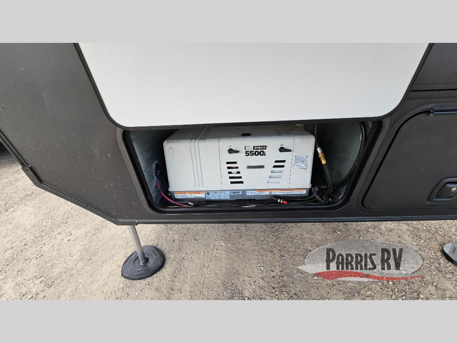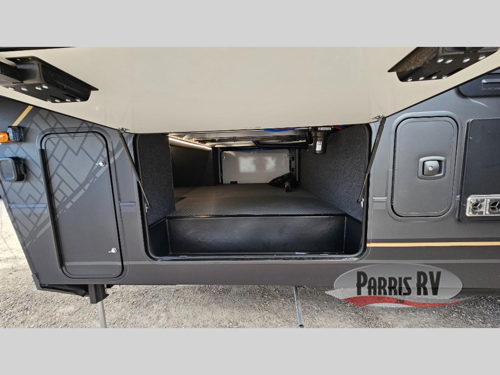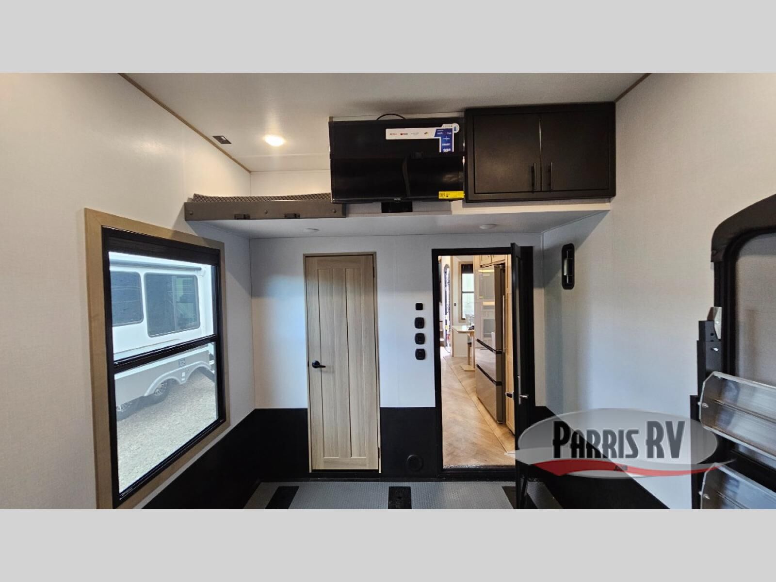 There's room for everyone in this toy hauler! The front private bedroom has a king bed slide for more interior space, a Smart LED TV, a front large wardrobe, plus washer and dryer prep. With two full bathrooms, it will be easy for everyone to get the mud rinsed out of their hair after a fun time on the trails. Start each morning off with a belly full of eggs cooked on the four burner Lusso range and cinnamon rolls baked in the 24" stainless steel oven. Grab a cold cup of orange juice from the 20 cu. ft. 12 volt refrigerator and enjoy it along with the eggs at the dinette table or in the 13' 6" garage on one of the dual opposing sofas with table in between. The L-shaped sofa is conveniently across from the entertainment center with a 50" Smart LED TV and fireplace. As you head into the 13' 6" garage area, you will notice a loft with twin bed, a queen bed above the opposing sofas, Raptor exclusive frame welded tie downs, a full bathroom, and one of the dual entry doors to the unit!