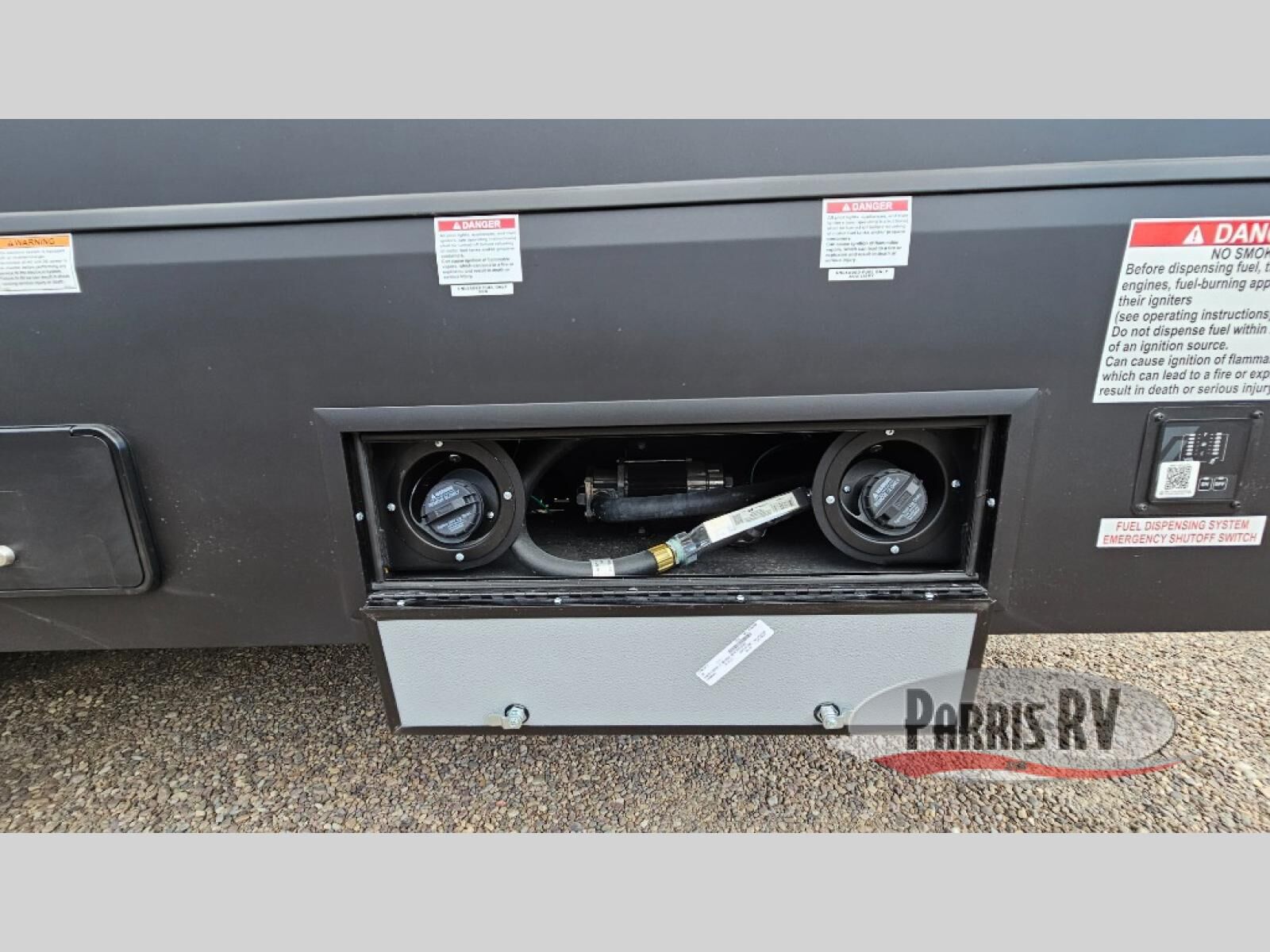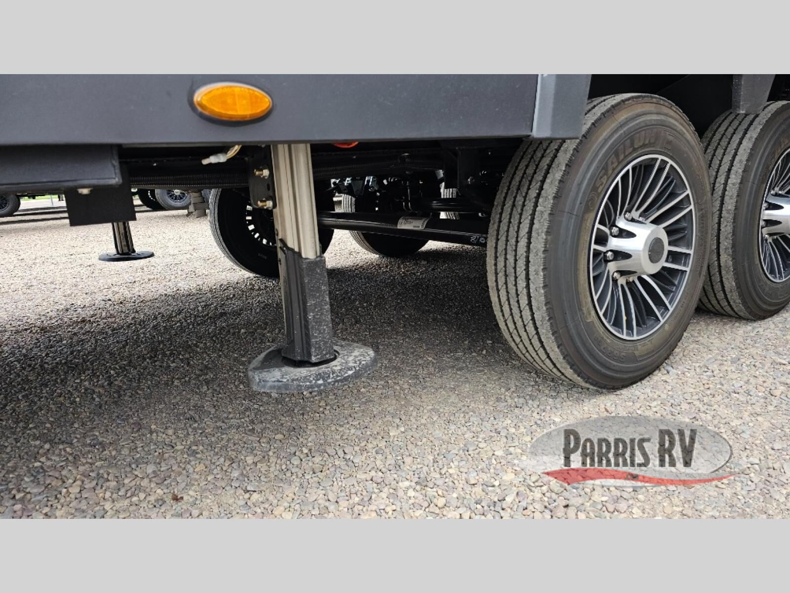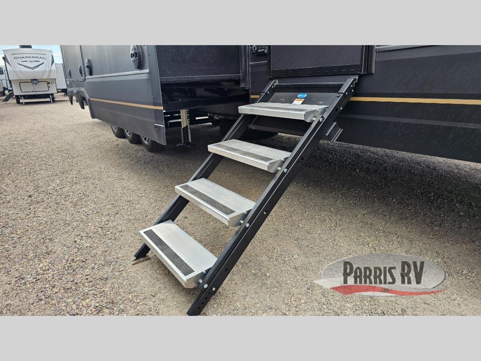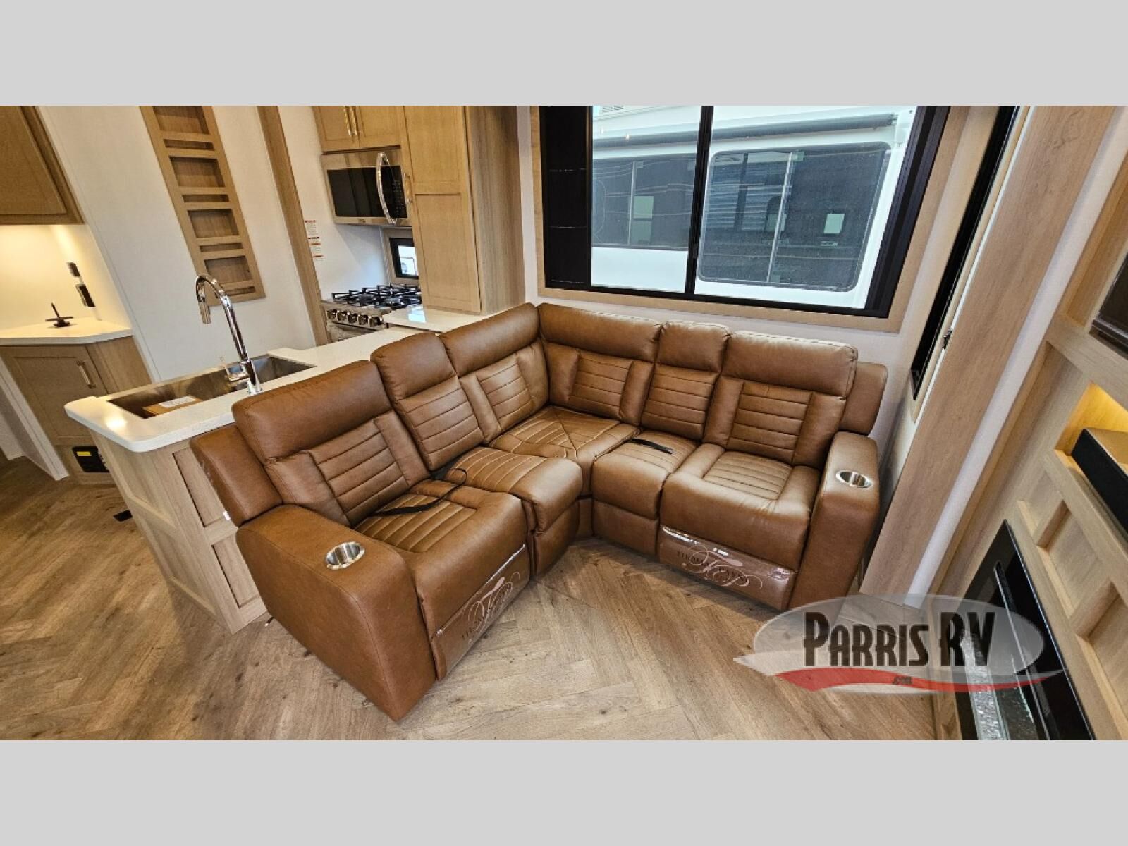 There's room for everyone in this toy hauler! The front private bedroom has a king bed slide for more interior space, a Smart LED TV, a front large wardrobe, plus washer and dryer prep. With two full bathrooms, it will be easy for everyone to get the mud rinsed out of their hair after a fun time on the trails. Start each morning off with a belly full of eggs cooked on the four burner Lusso range and cinnamon rolls baked in the 24" stainless steel oven. Grab a cold cup of orange juice from the 20 cu. ft. 12 volt refrigerator and enjoy it along with the eggs at the dinette table or in the 13' 6" garage on one of the dual opposing sofas with table in between. The L-shaped sofa is conveniently across from the entertainment center with a 50" Smart LED TV and fireplace. As you head into the 13' 6" garage area, you will notice a loft with twin bed, a queen bed above the opposing sofas, Raptor exclusive frame welded tie downs, a full bathroom, and one of the dual entry doors to the unit!