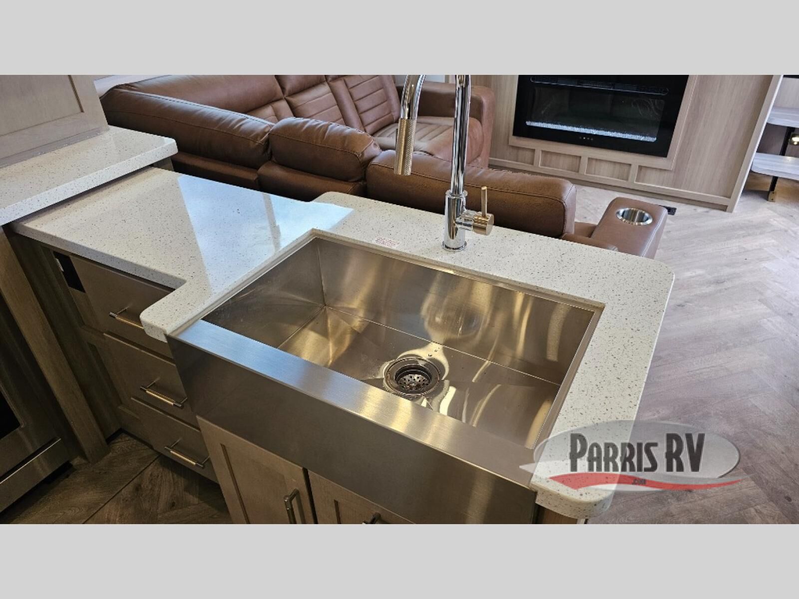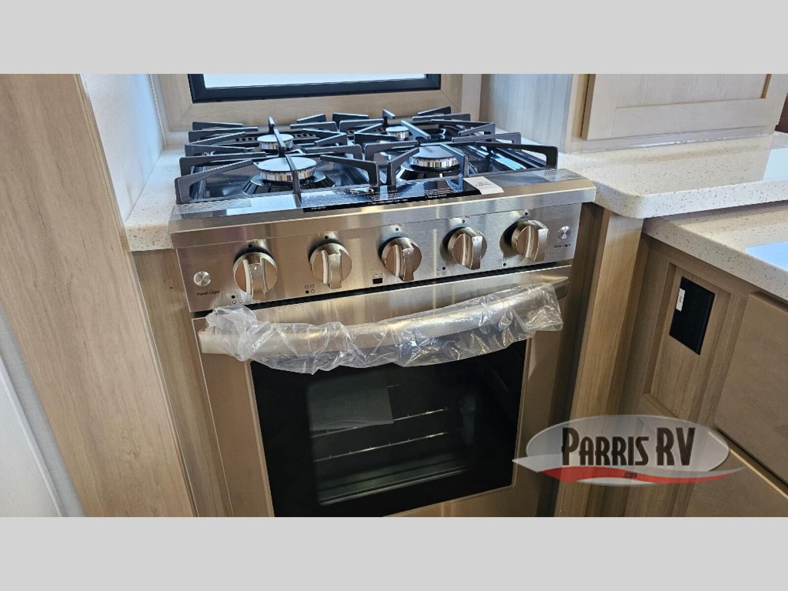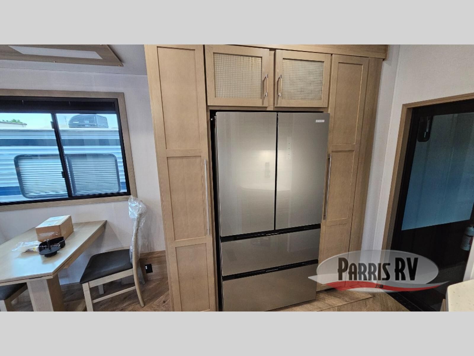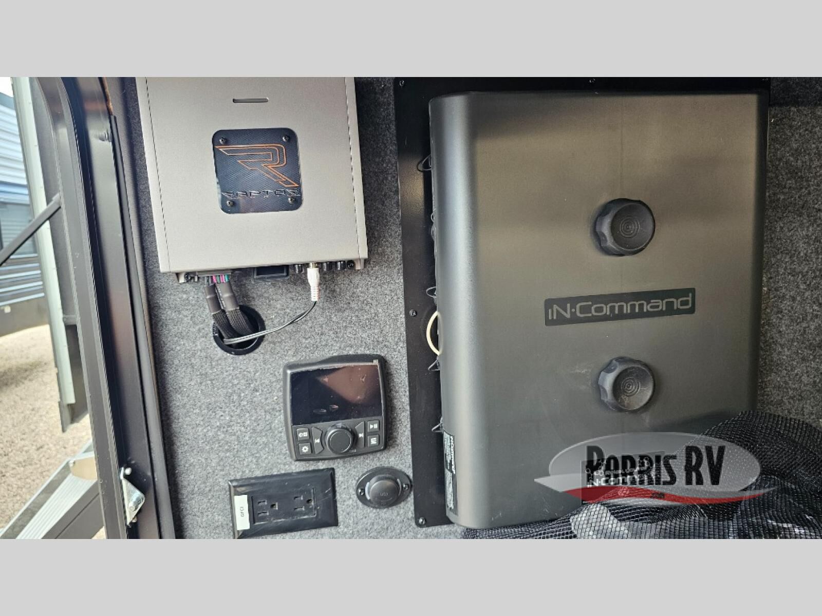 There's room for everyone in this toy hauler! The front private bedroom has a king bed slide for more interior space, a Smart LED TV, a front large wardrobe, plus washer and dryer prep. With two full bathrooms, it will be easy for everyone to get the mud rinsed out of their hair after a fun time on the trails. Start each morning off with a belly full of eggs cooked on the four burner Lusso range and cinnamon rolls baked in the 24" stainless steel oven. Grab a cold cup of orange juice from the 20 cu. ft. 12 volt refrigerator and enjoy it along with the eggs at the dinette table or in the 13' 6" garage on one of the dual opposing sofas with table in between. The L-shaped sofa is conveniently across from the entertainment center with a 50" Smart LED TV and fireplace. As you head into the 13' 6" garage area, you will notice a loft with twin bed, a queen bed above the opposing sofas, Raptor exclusive frame welded tie downs, a full bathroom, and one of the dual entry doors to the unit!