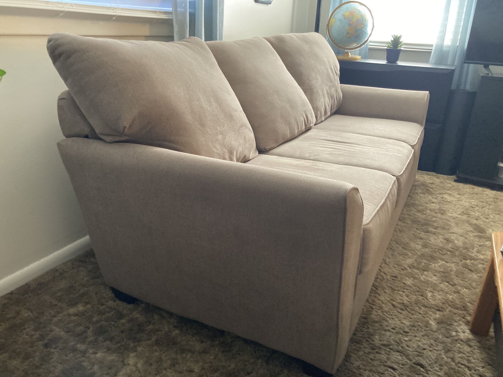Couch is in great condition. No smoking or pets. Deck size: 66" X 22". Overall demensions: 80" Long X 37" Depth.