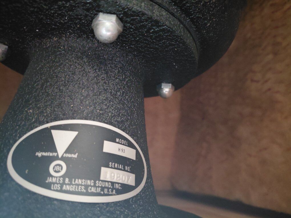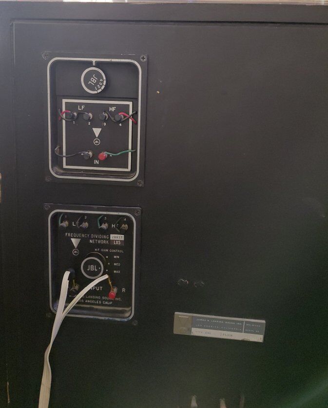 Low : JBL LE15A woofers (newly restored surround foam) Mid : JBL 375 Drivers / JBL H93 Horns High : JBL 077 Crystal Slot Tweeters