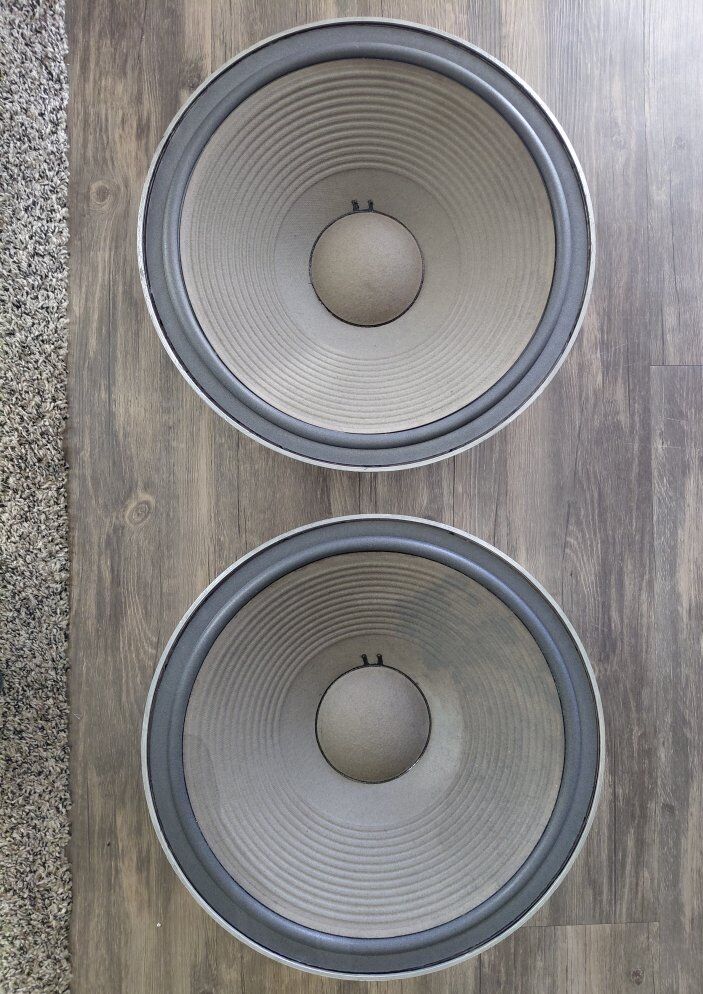 I took pictures of some of the drivers while I had them out of the cabinets for refoam and terminal cleaning. The crossover networks are all original (rivets never drilled out) . The 375 horns still have original, untouched JBL red wax over bolts. Please take a look and ask questions.